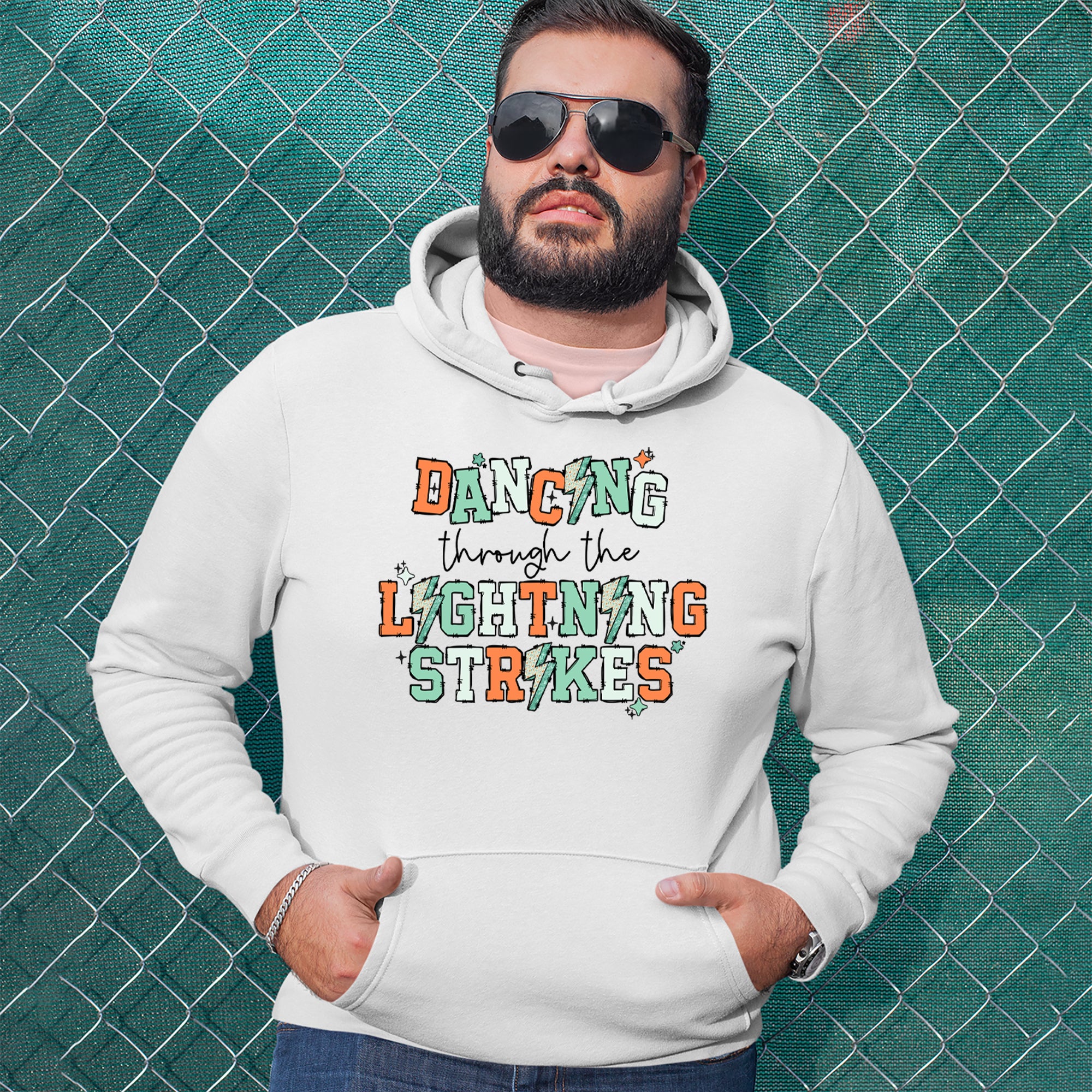 When the beat hits like a bolt from the sky - "Dancing Lightning Strikes" brings disco thunder with vintage fonts and glitter-charged lightning bolts. It’s part rock show, part dance floor magic. Perfect for festival fits, glam nights out, or anyone who moves like they’ve got electricity in their veins. This design is a retro storm of color, rhythm, and rebel energy.