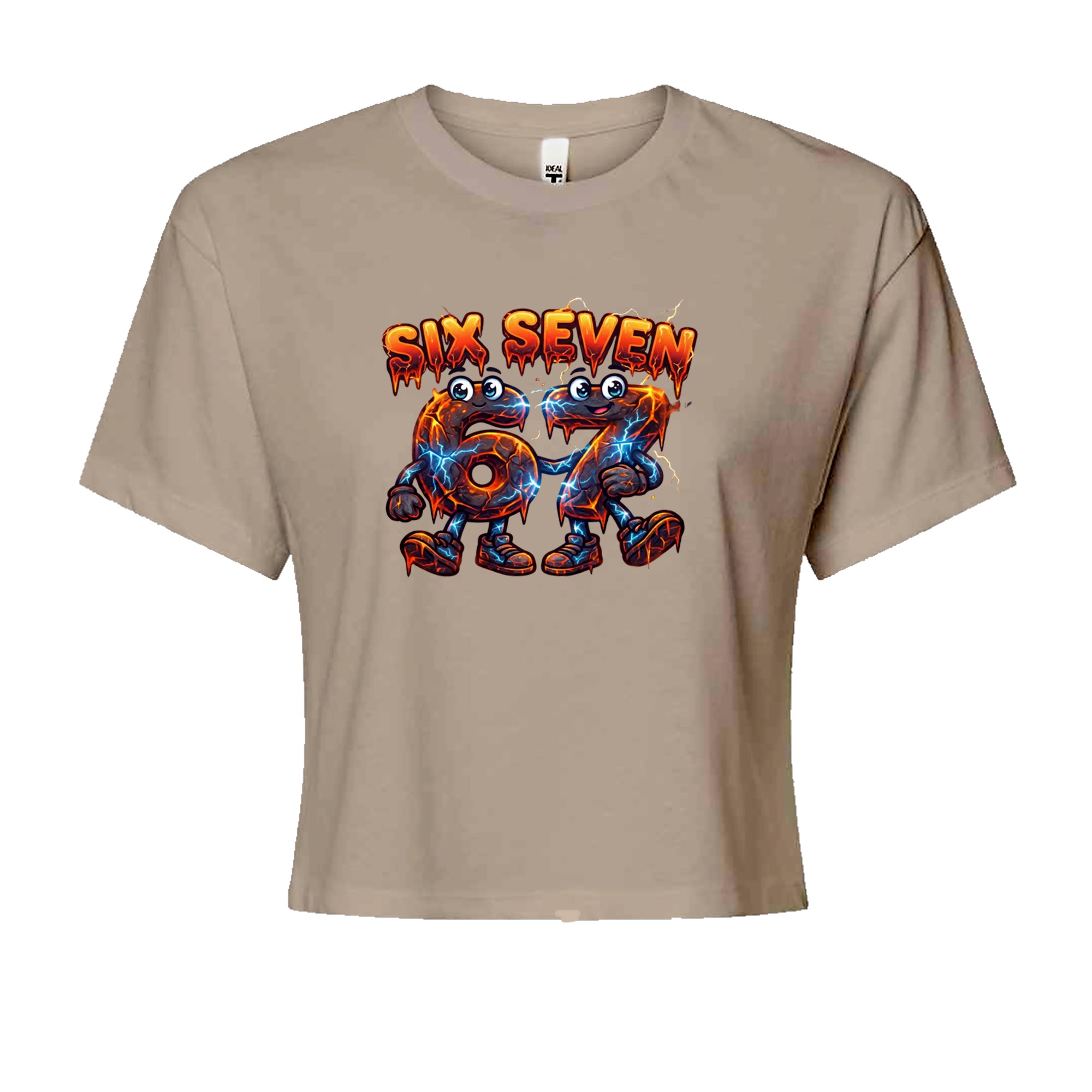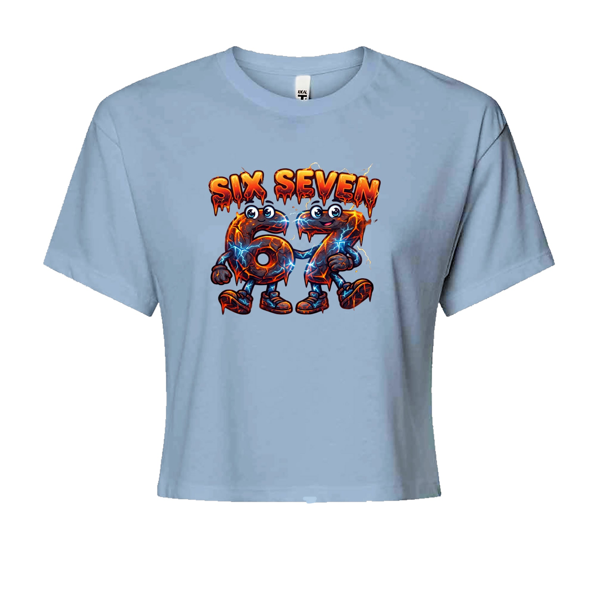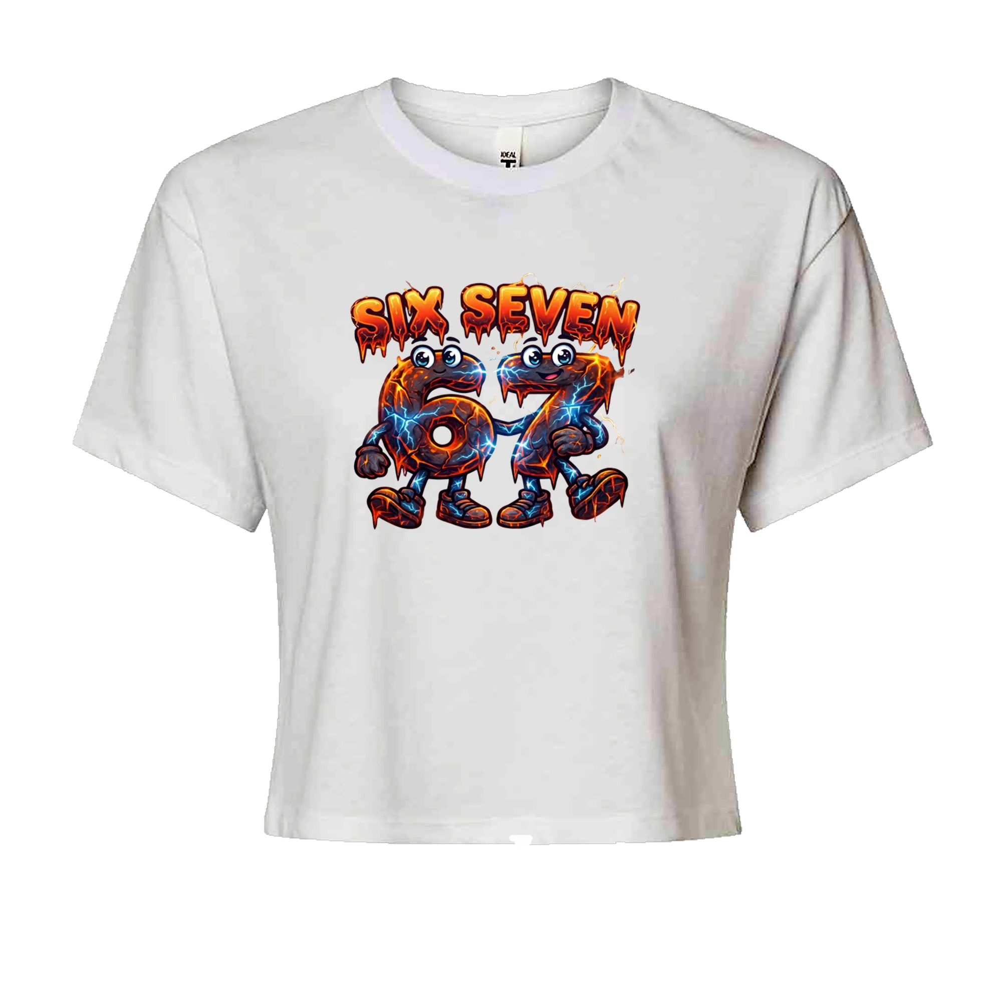 Molten six and seven characters glow with lava cracks and blue lightning, turning the viral Six Seven 67 meme into a powerful fiery aesthetic for meme obsessed kids and teens. Perfect for videoedits, hoops clips, and everyday fits where you want your favorite number brainrot sound on full display in a bold electric cartoon style.