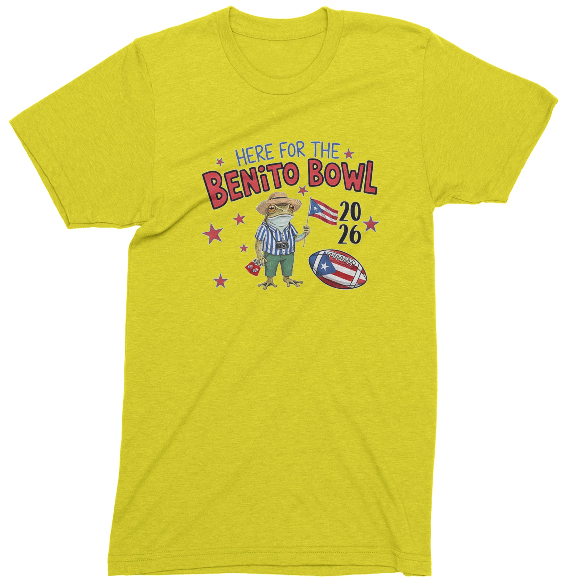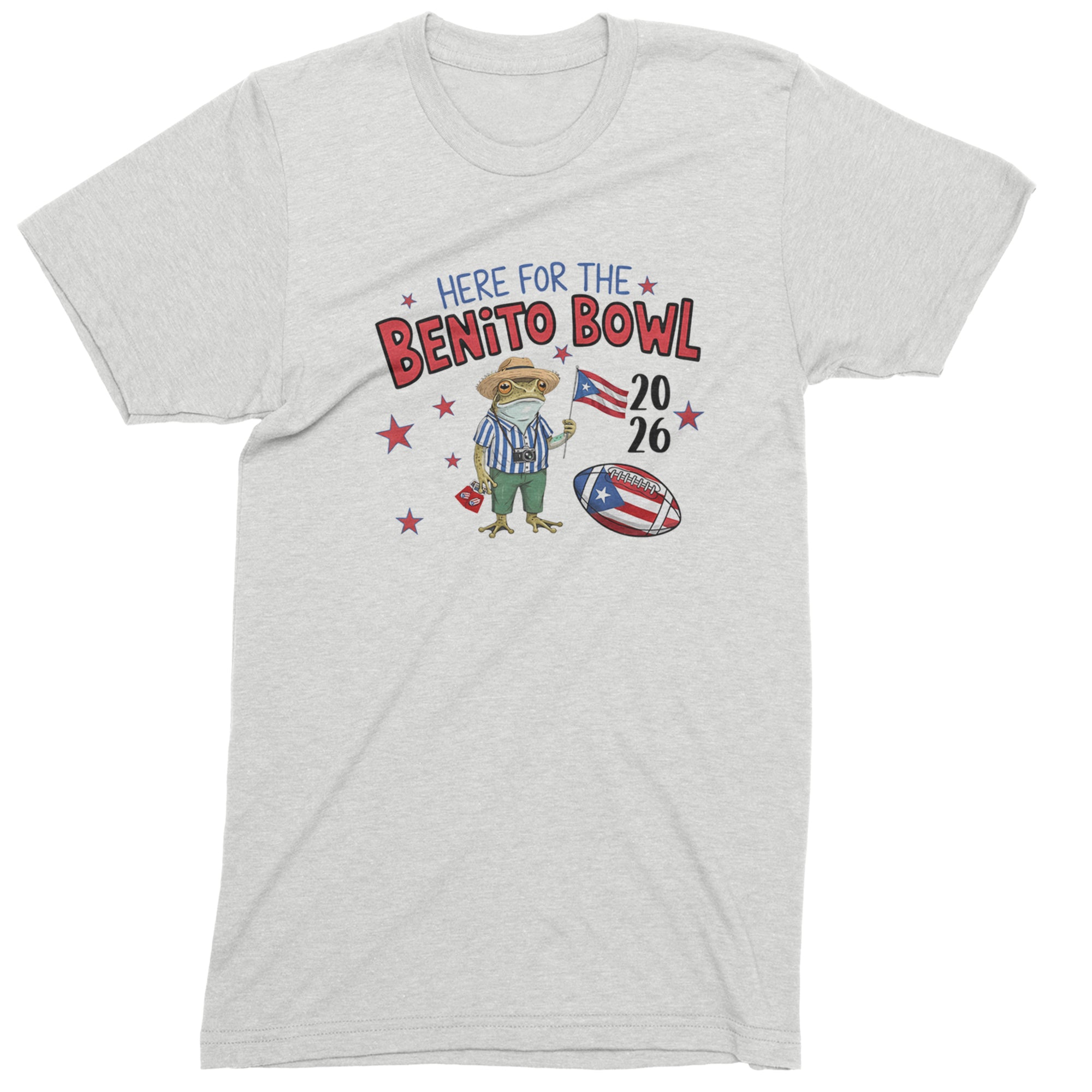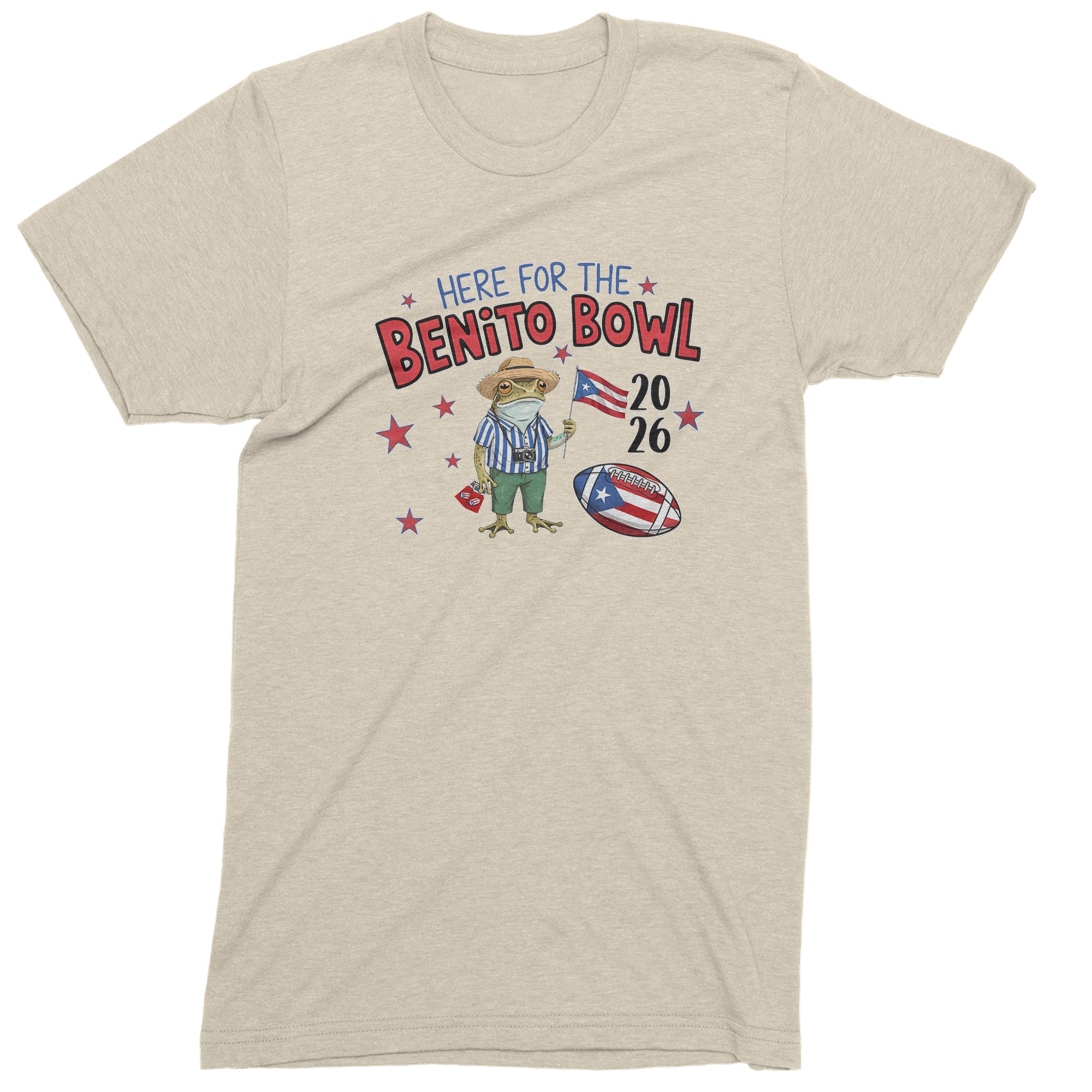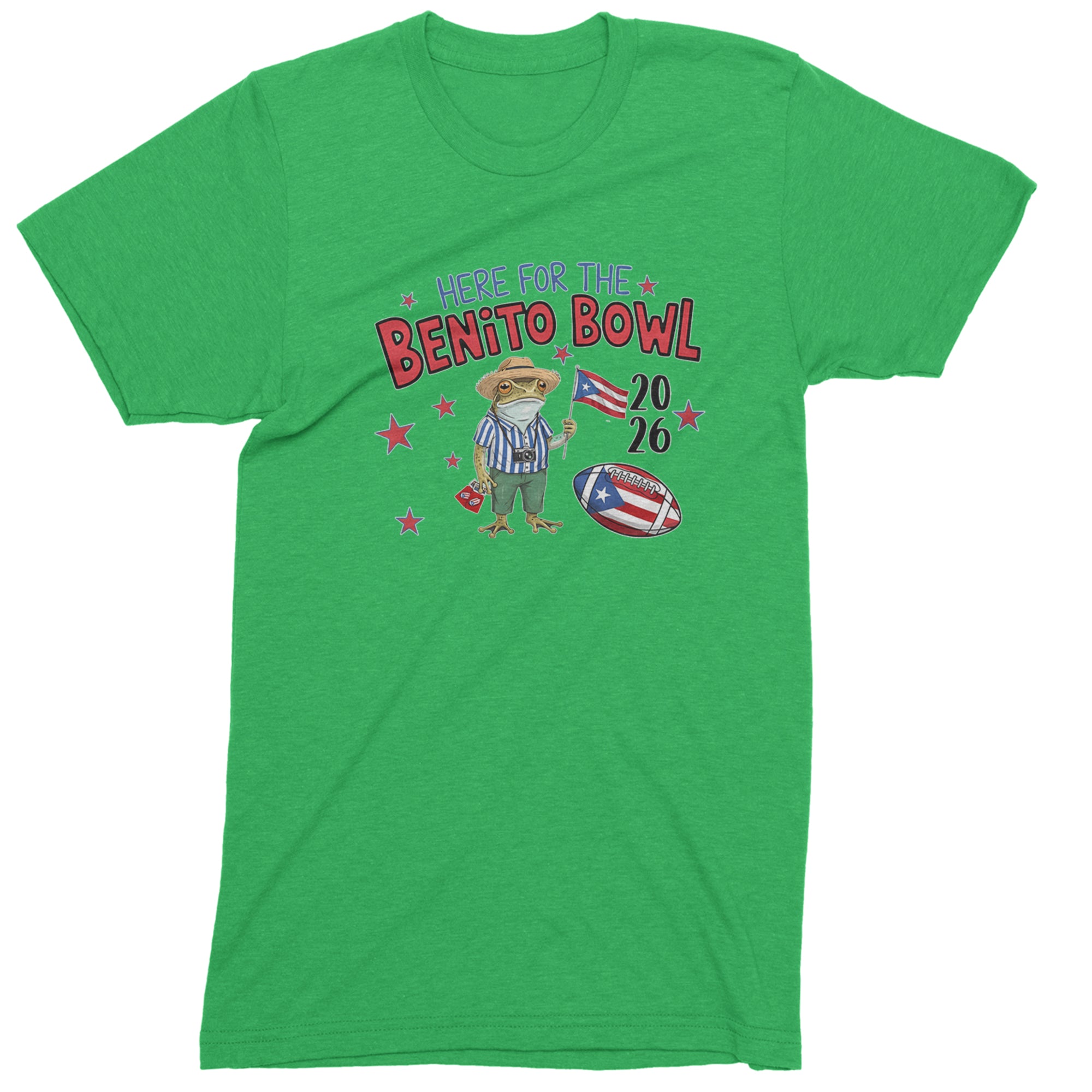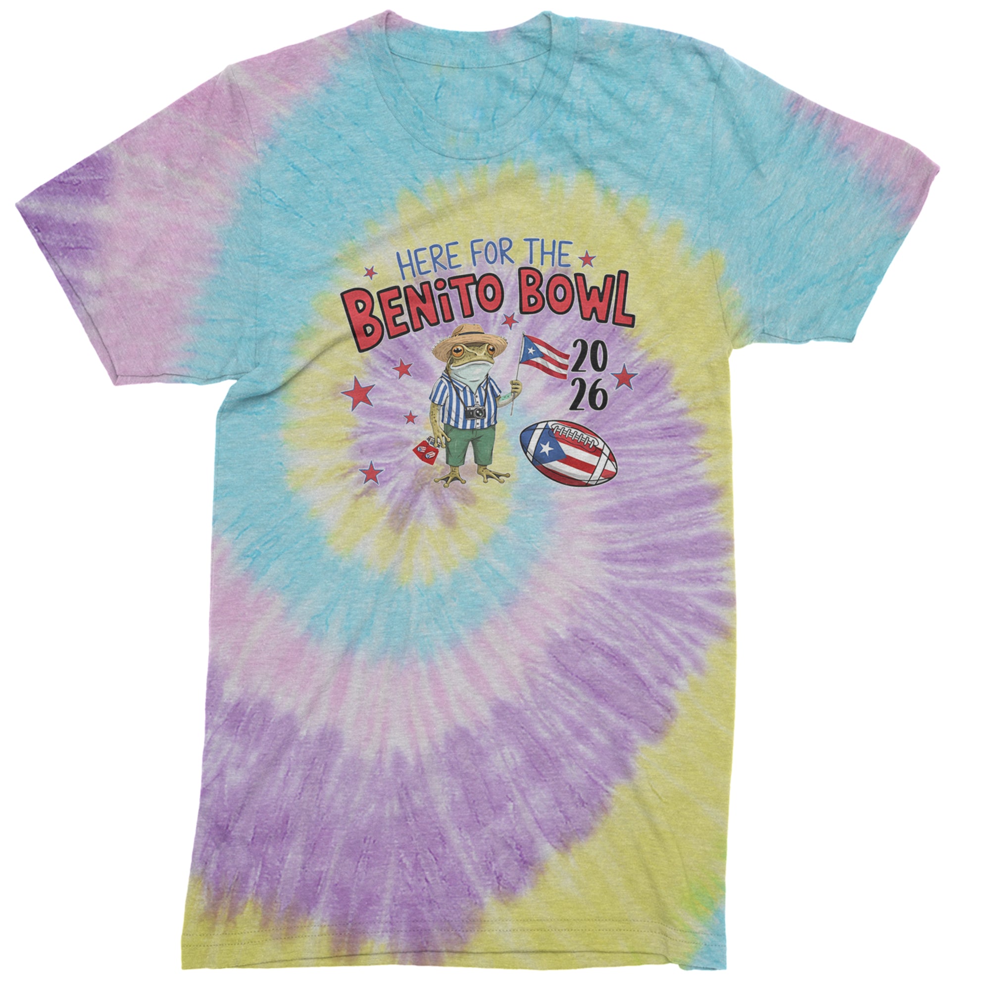 Get game-day ready island-style with this hilarious Benito Bowl 2026 design featuring a Puerto Rican coquí dressed like the ultimate tourist. It's a funny cultural crossover that brings the laughs and the pride.. Whether you're in it for the football, the fiesta, or the frogs, this design is a must-have for fans of Puerto Rican humor, parody merch, and viral event tees..