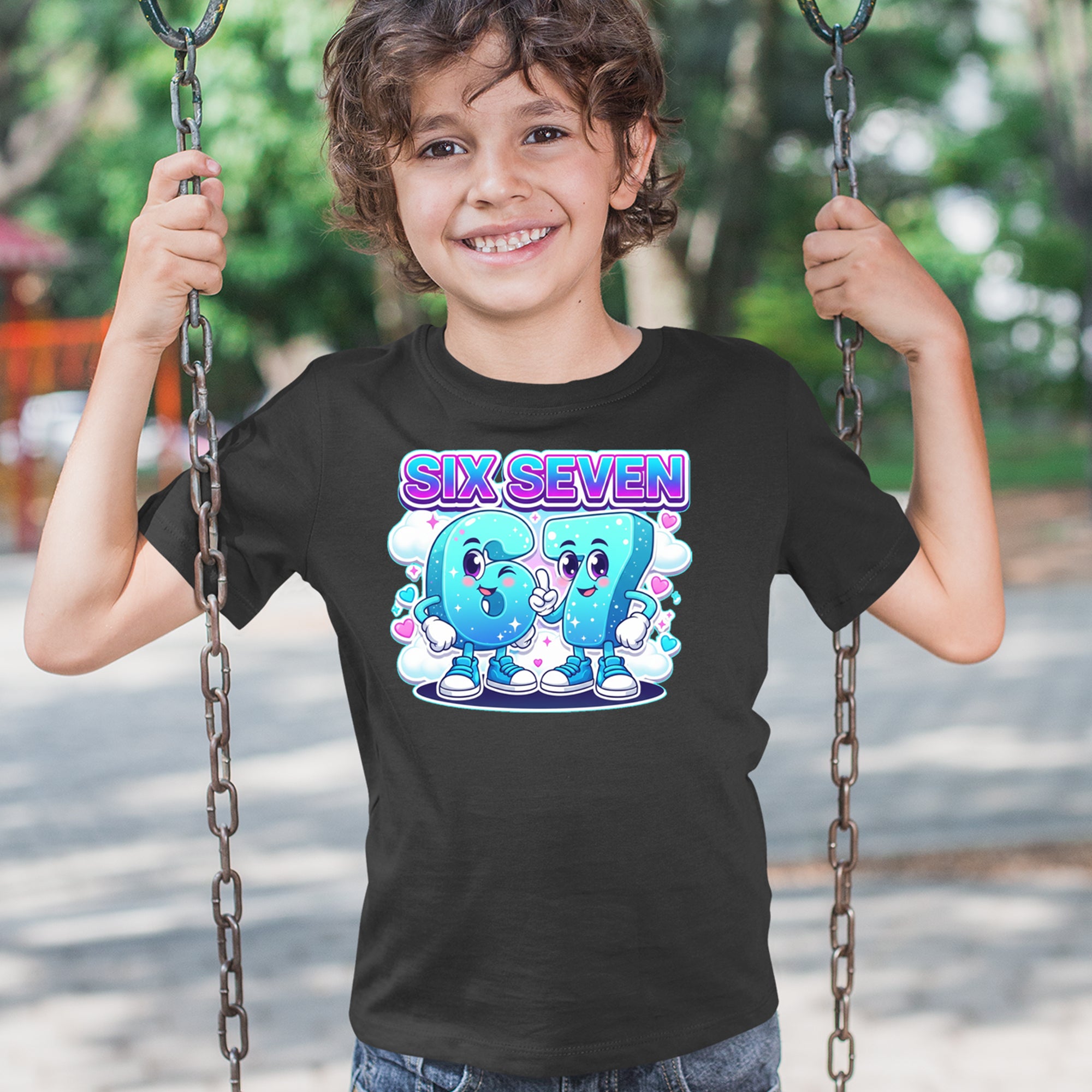 Adorable six and seven characters bring the viral 67 meme to life, surrounded by clouds, hearts, and sparkles for a soft pastel kawaii vibe kids and Gen Alpha fans love. Perfect for meme lovers, TikTok scrollers, and number brainrot fans who keep saying six seven for no reason; great for everyday outfits, edits, and funny pop culture fits.