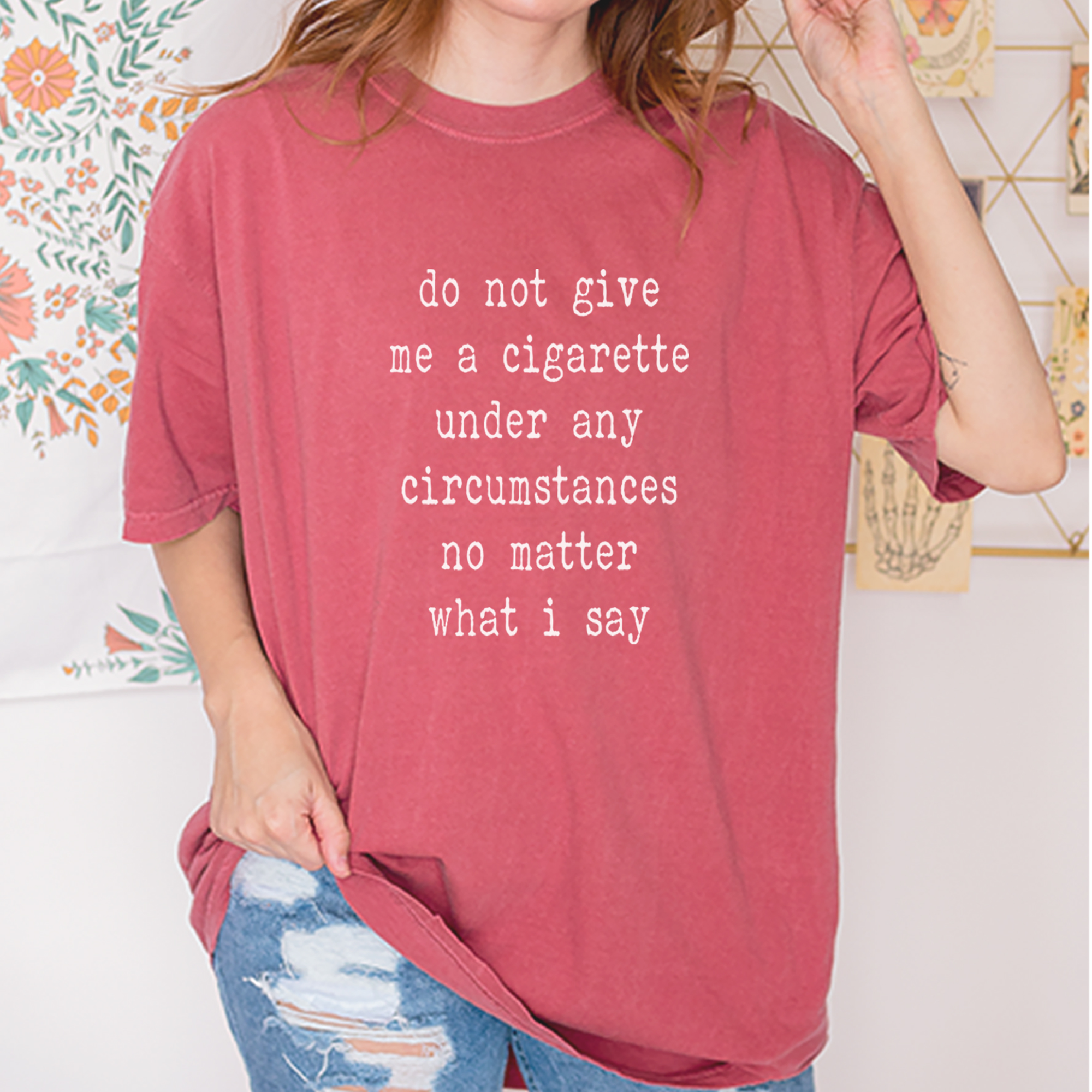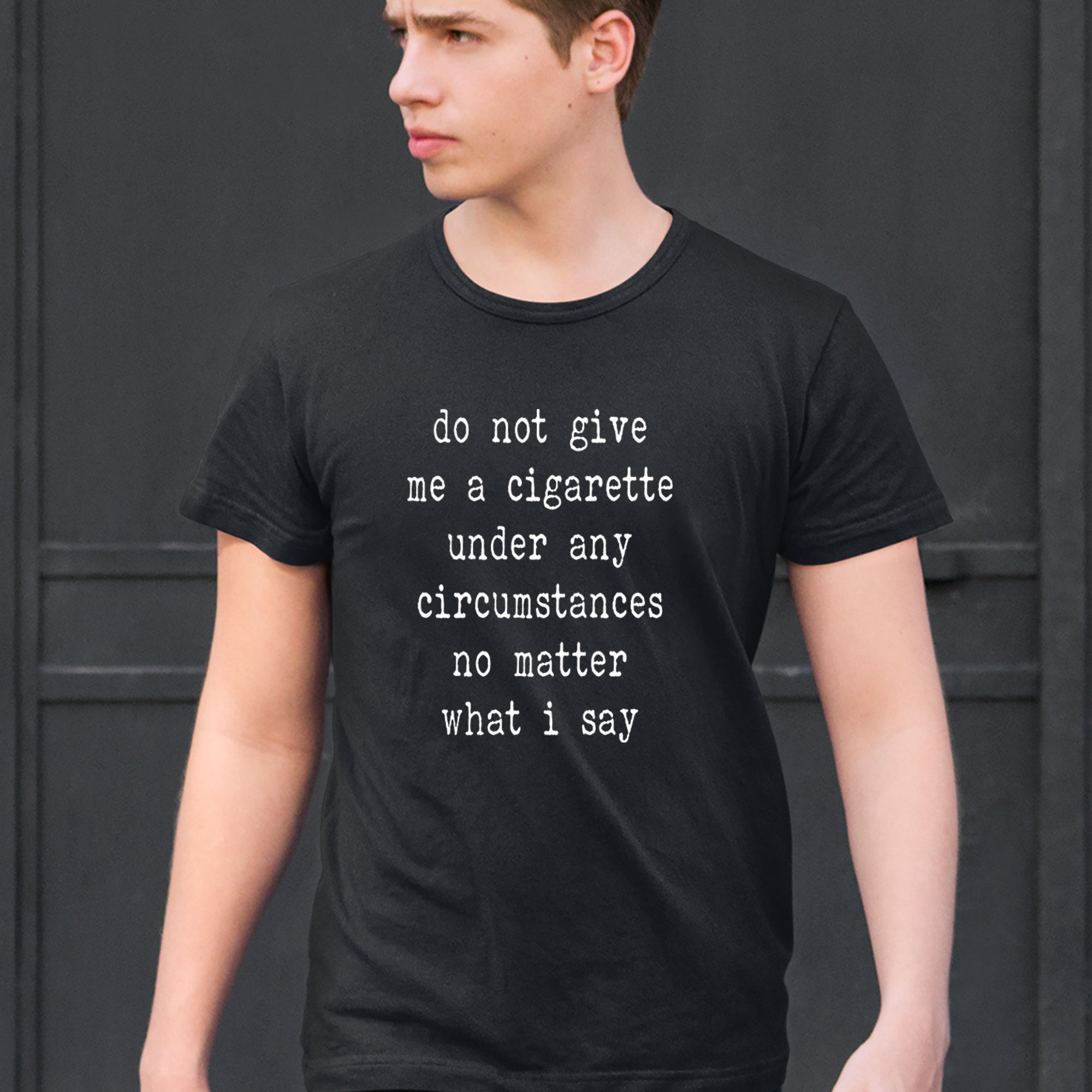 Do Not Give Me A Cigarette Under Any Circumstances No Matter What I Say. A sarcastic phrase that gets laughs at parties, work, or social gatherings.. Perfect gift for friends who quit smoking, ex-smokers, or anyone who appreciates dark humor and witty quote designs..