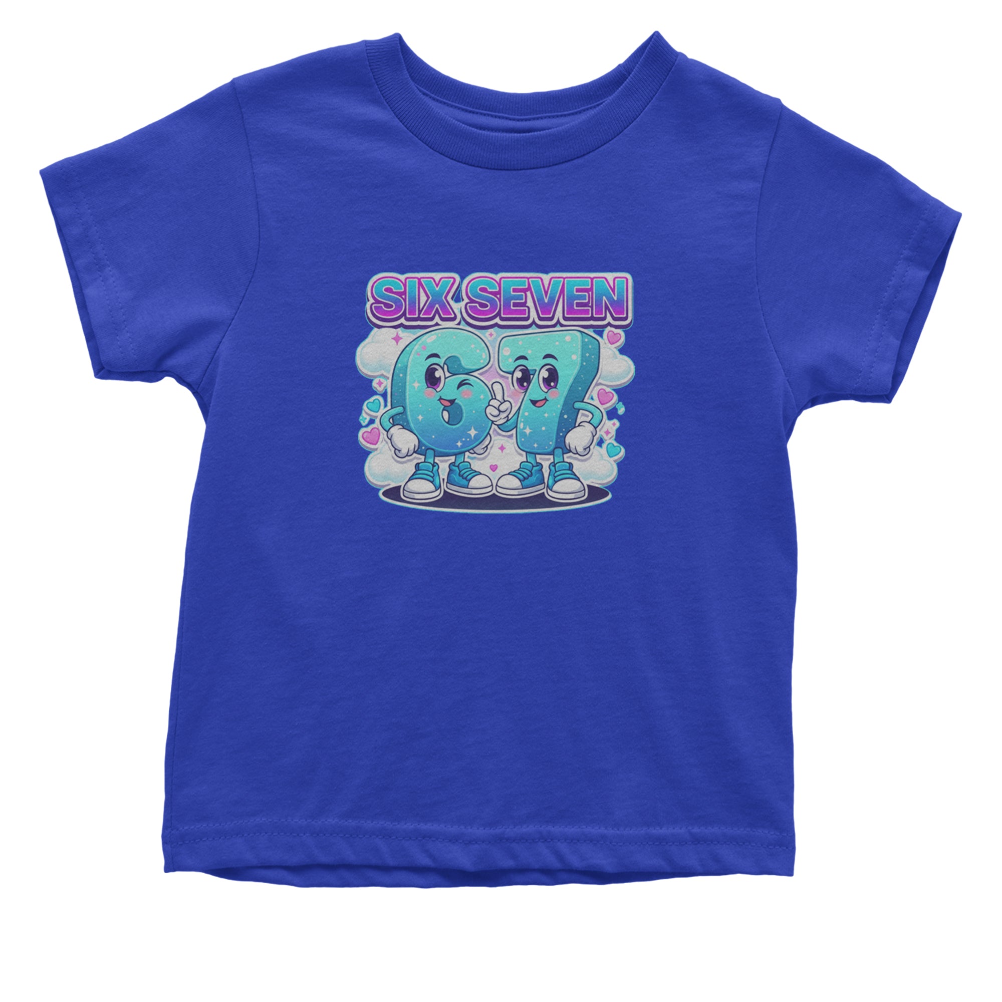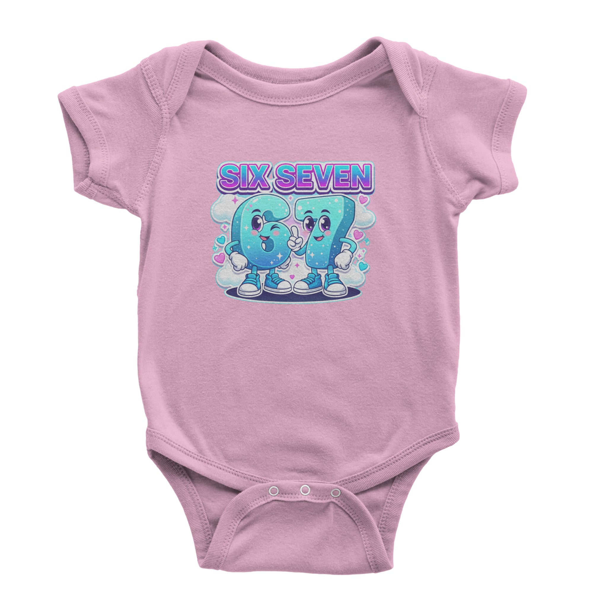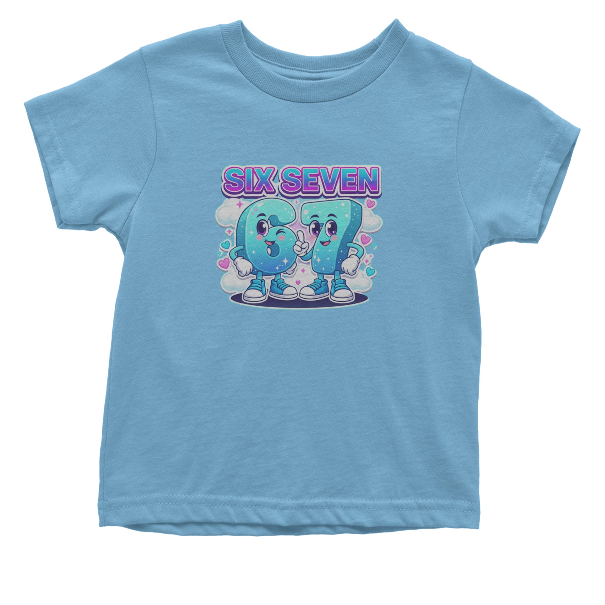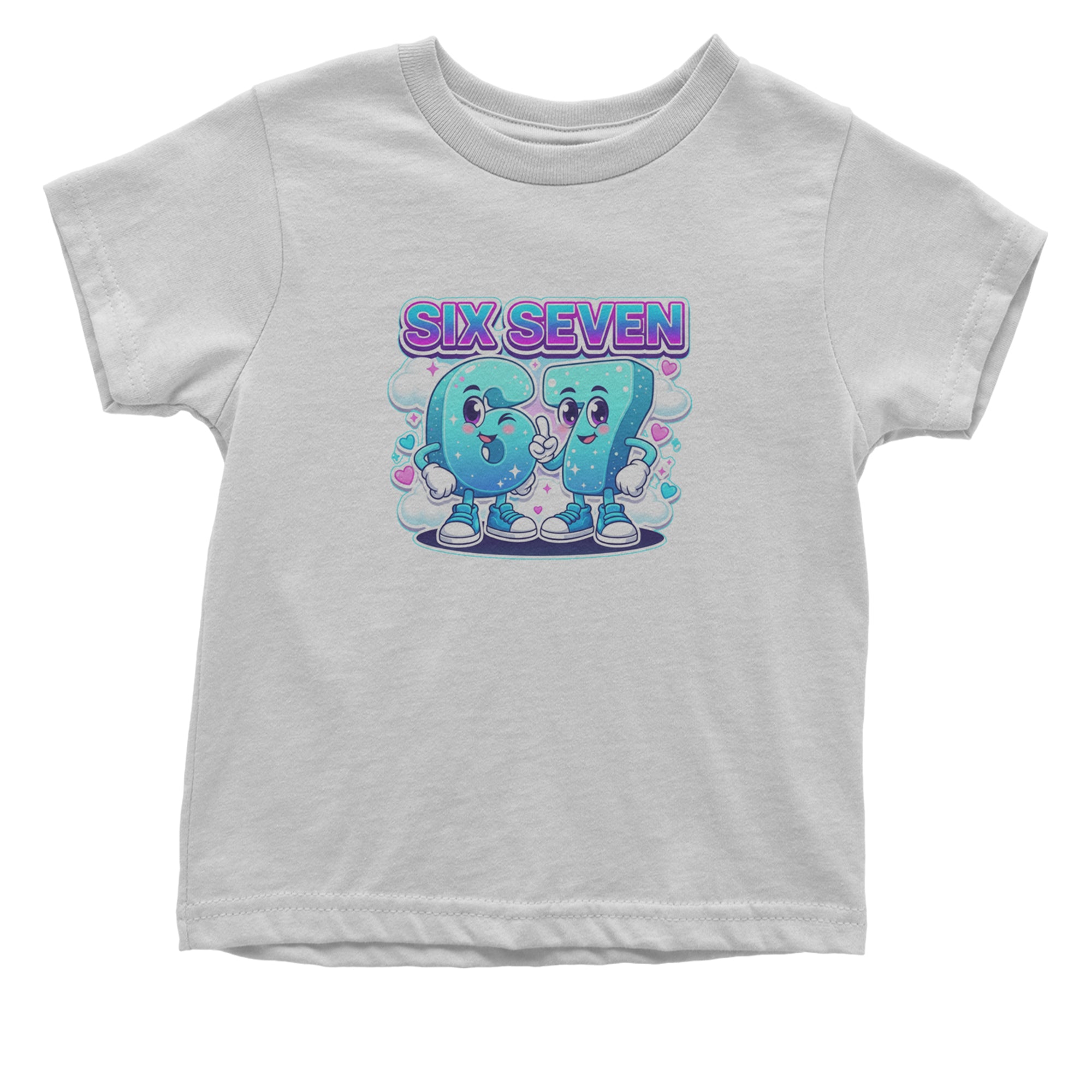 Adorable six and seven characters bring the viral 67 meme to life, surrounded by clouds, hearts, and sparkles for a soft pastel kawaii vibe kids and Gen Alpha fans love. Perfect for meme lovers, TikTok scrollers, and number brainrot fans who keep saying six seven for no reason; great for everyday outfits, edits, and funny pop culture fits.