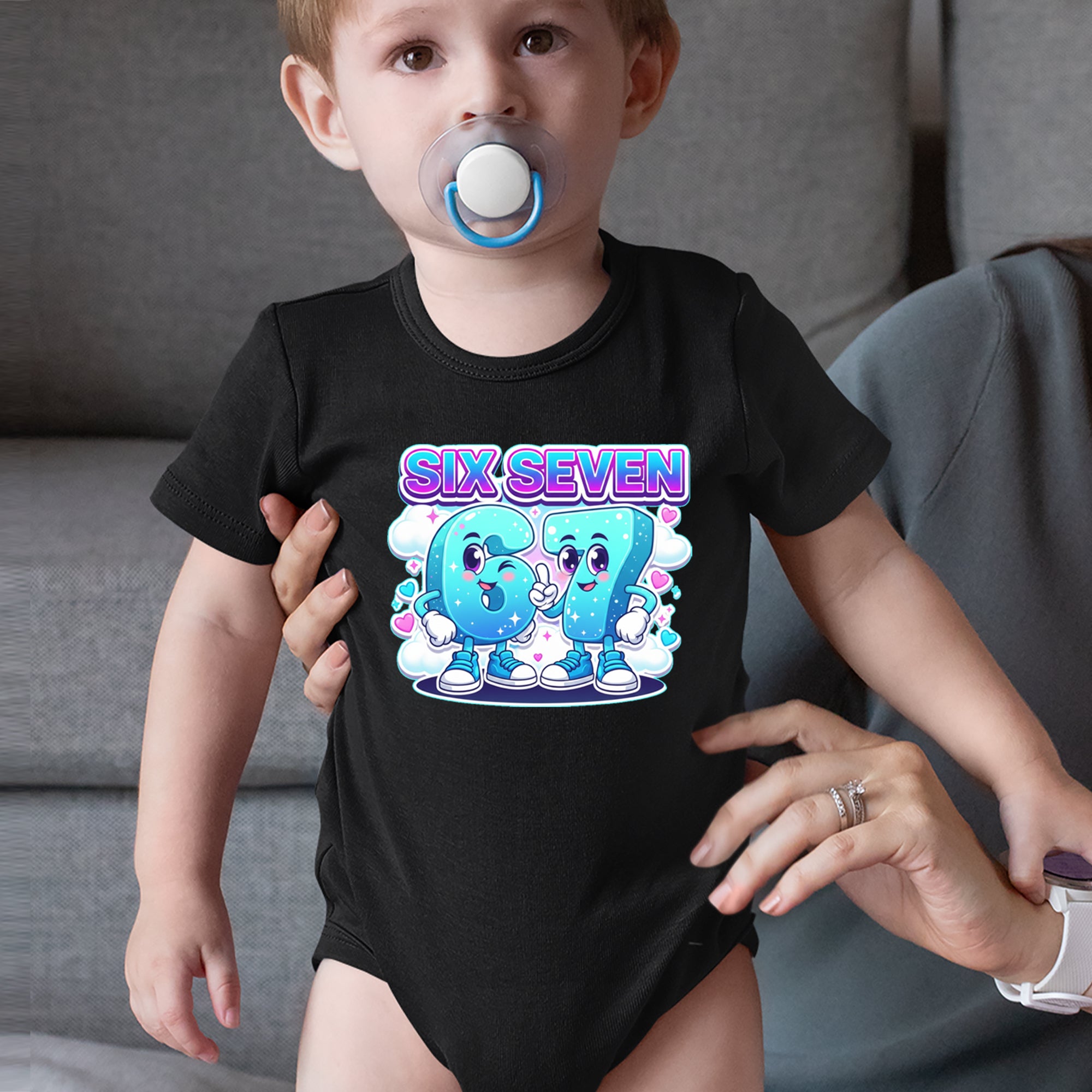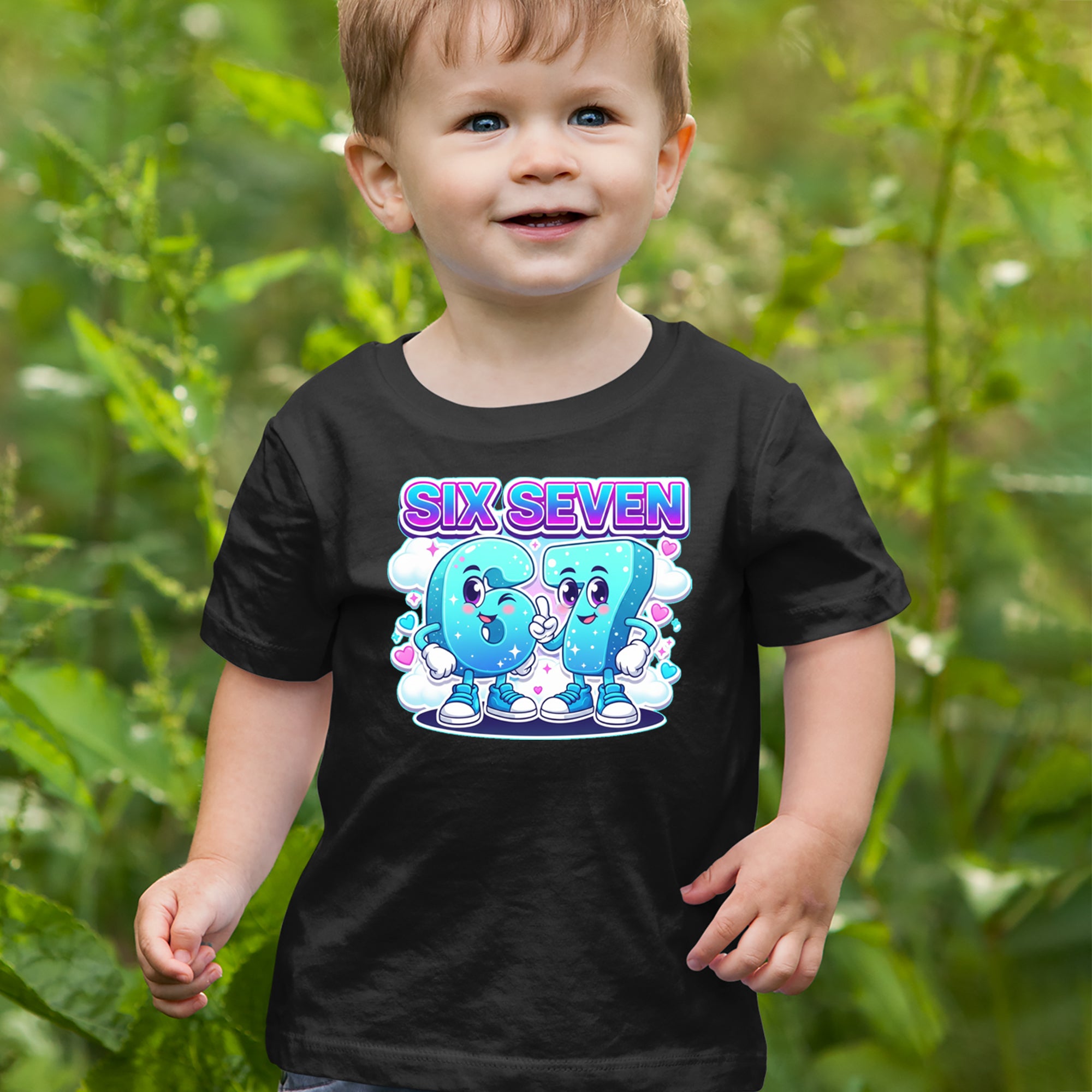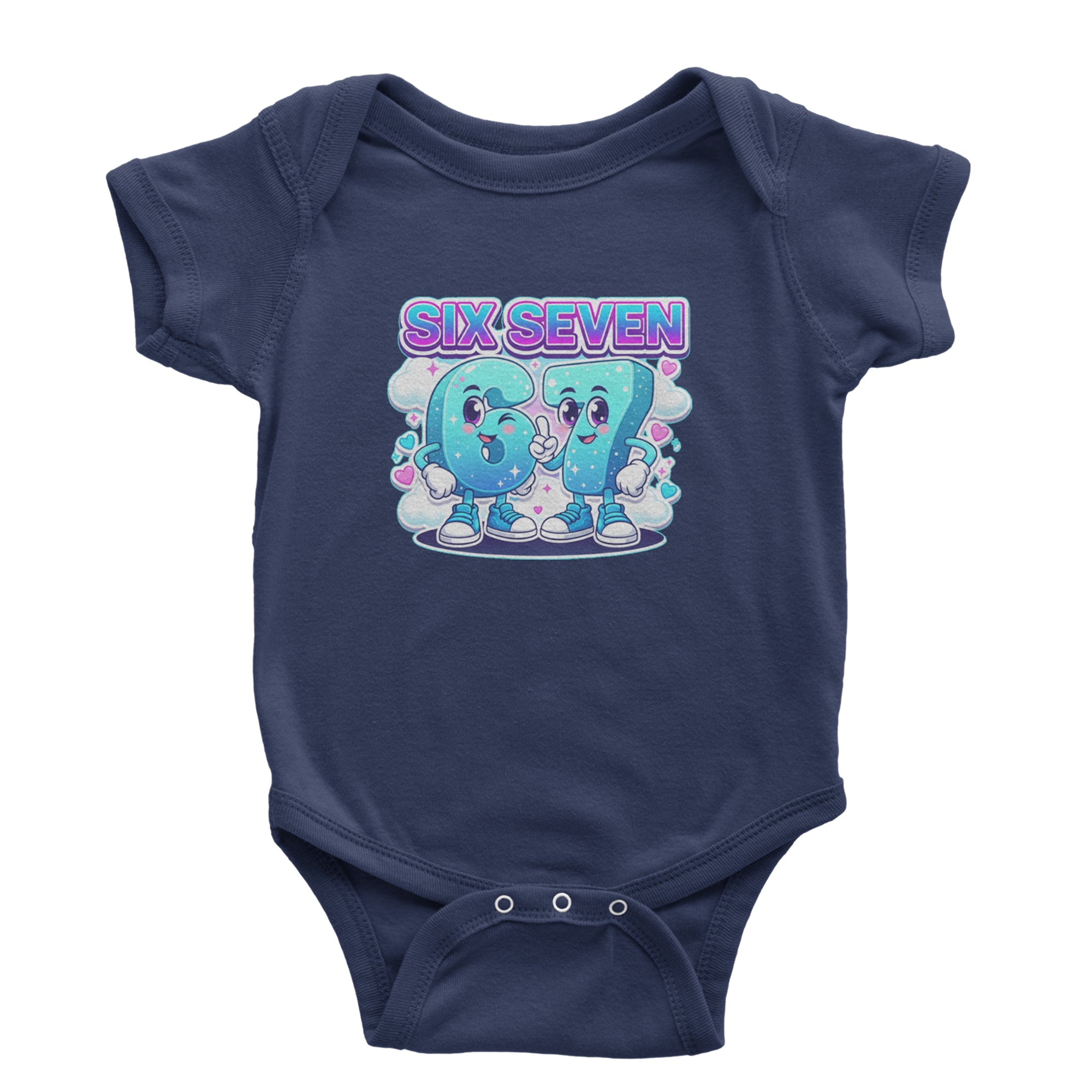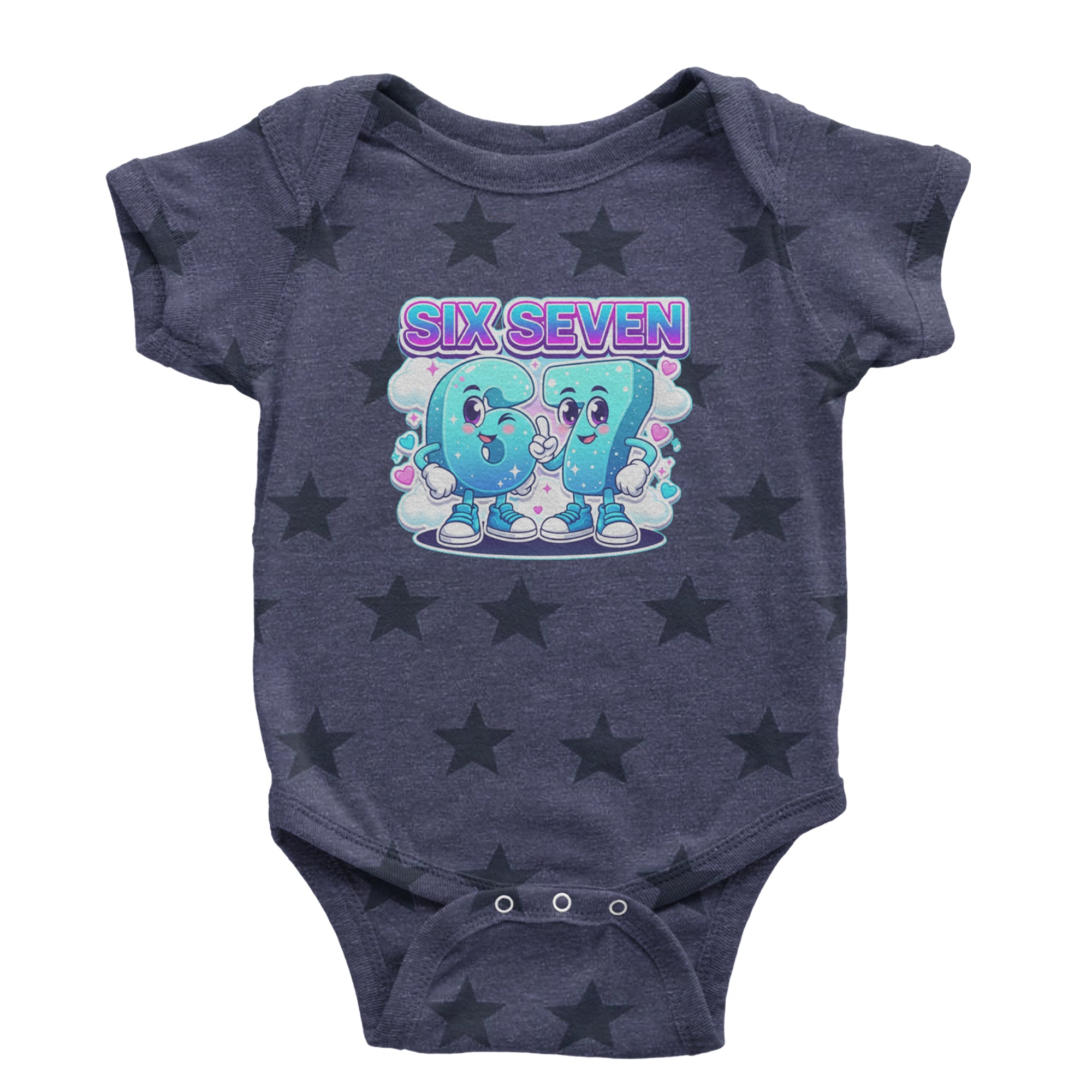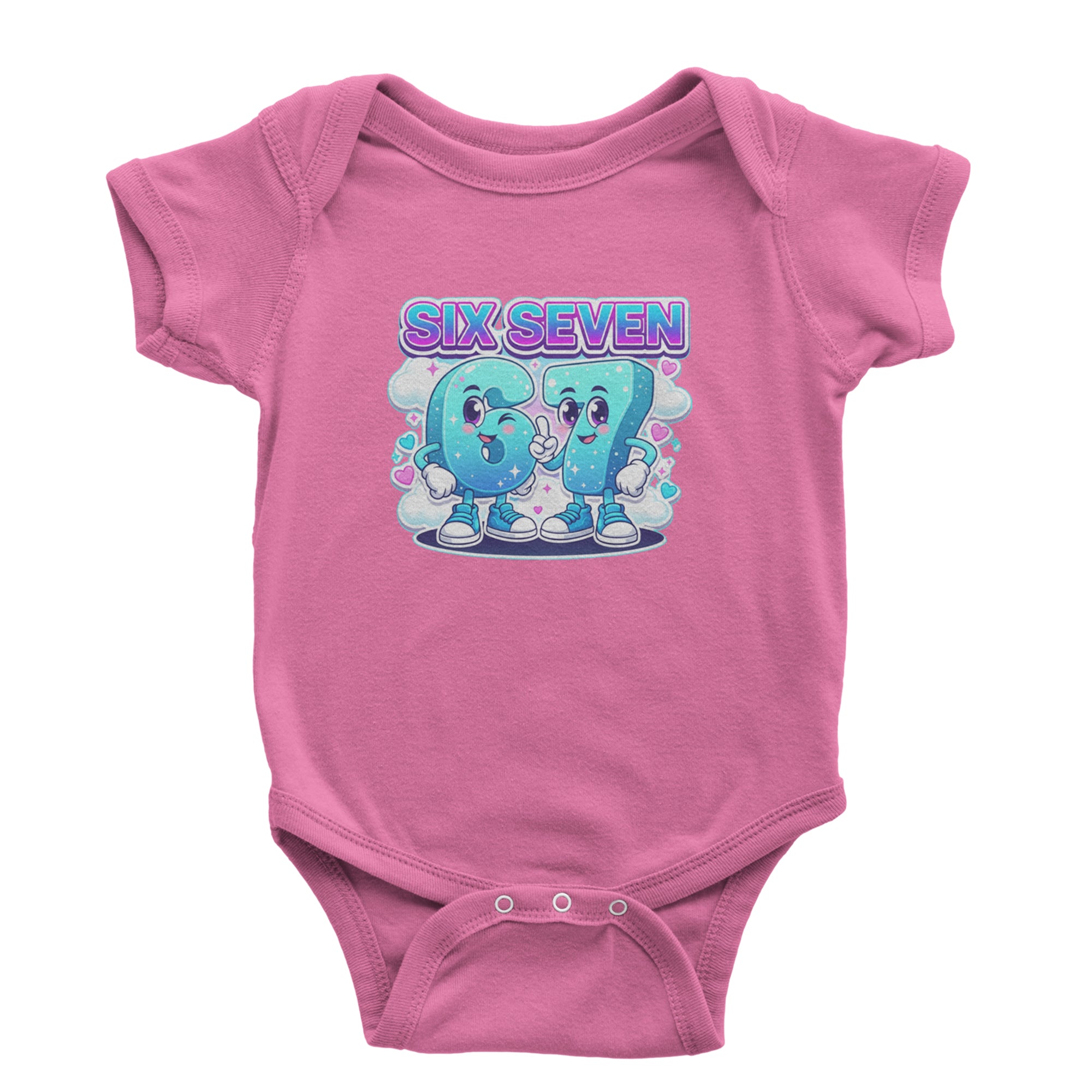 Adorable six and seven characters bring the viral 67 meme to life, surrounded by clouds, hearts, and sparkles for a soft pastel kawaii vibe kids and Gen Alpha fans love. Perfect for meme lovers, TikTok scrollers, and number brainrot fans who keep saying six seven for no reason; great for everyday outfits, edits, and funny pop culture fits.