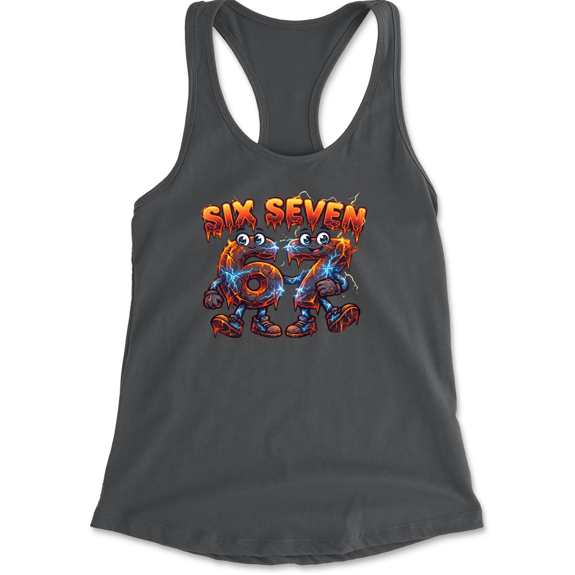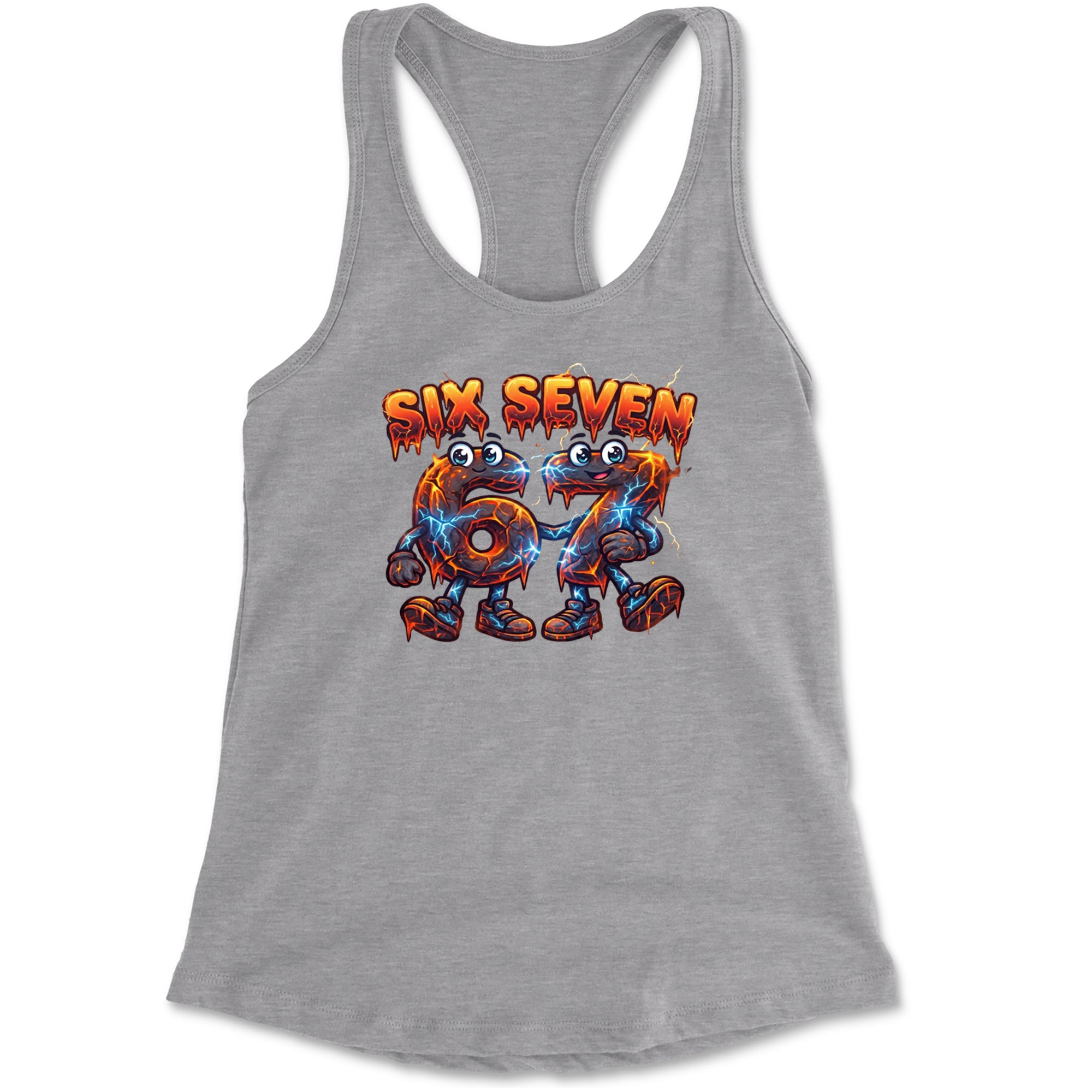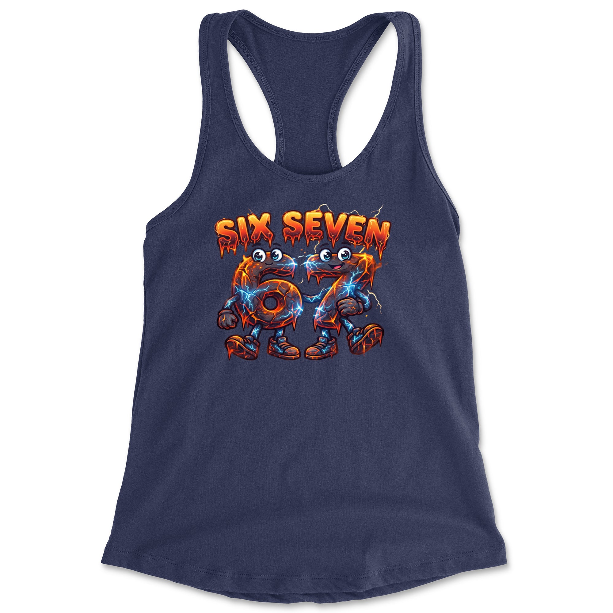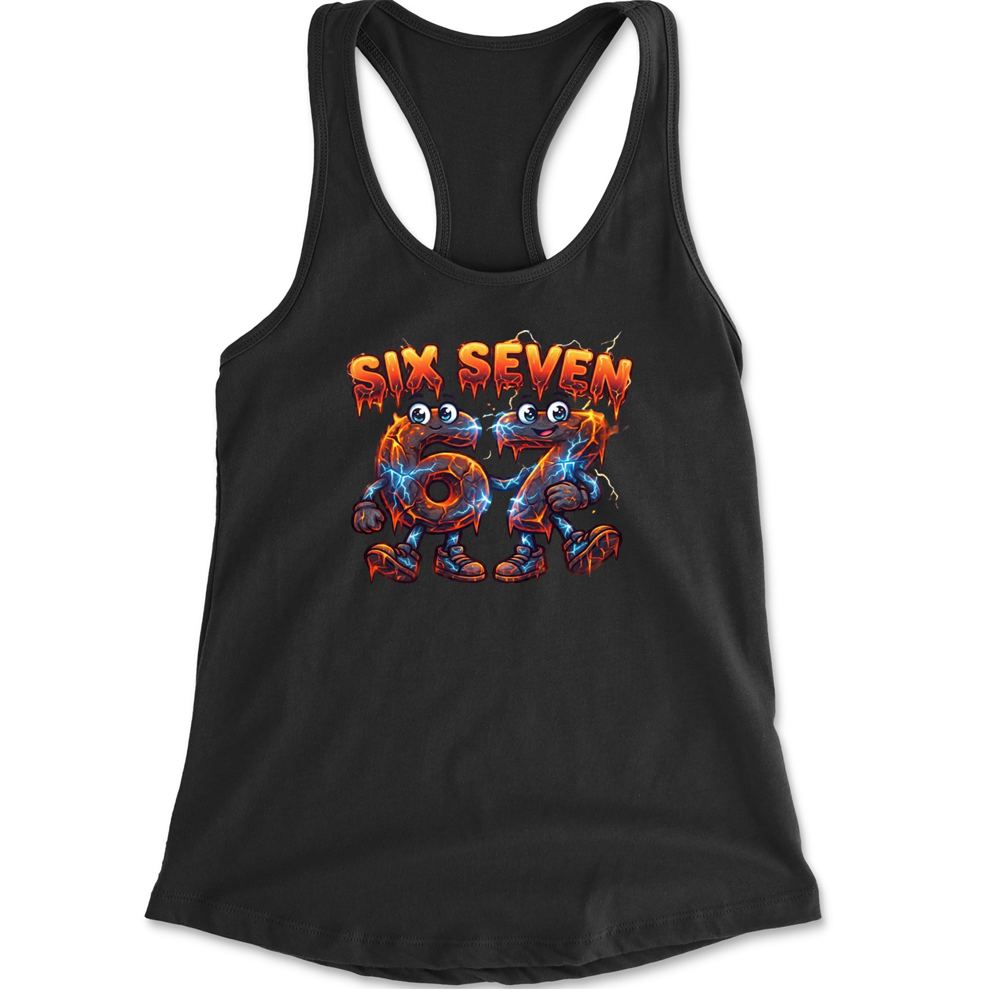 Molten six and seven characters glow with lava cracks and blue lightning, turning the viral Six Seven 67 meme into a powerful fiery aesthetic for meme obsessed kids and teens. Perfect for videoedits, hoops clips, and everyday fits where you want your favorite number brainrot sound on full display in a bold electric cartoon style.