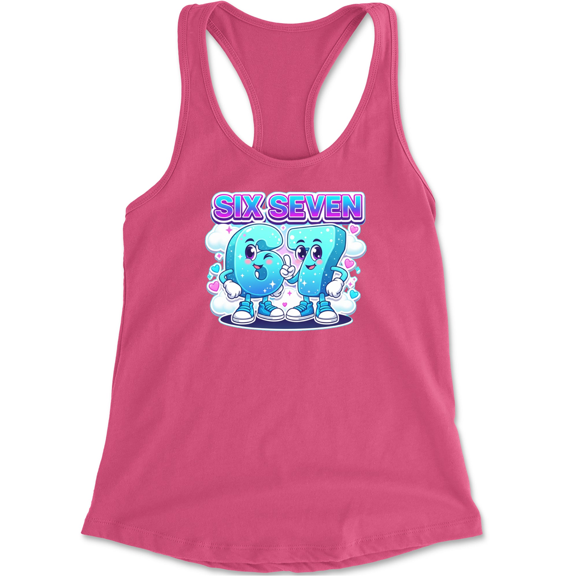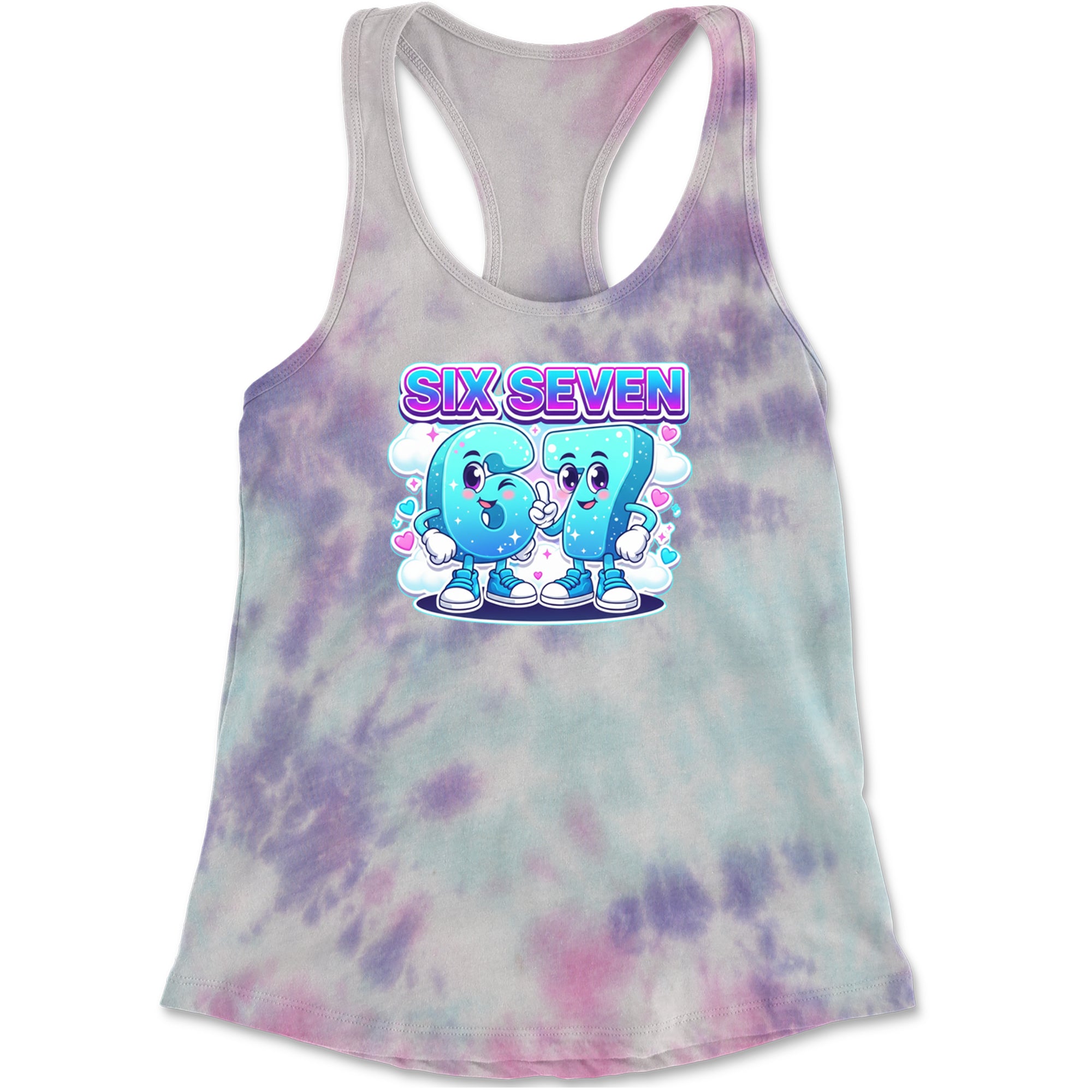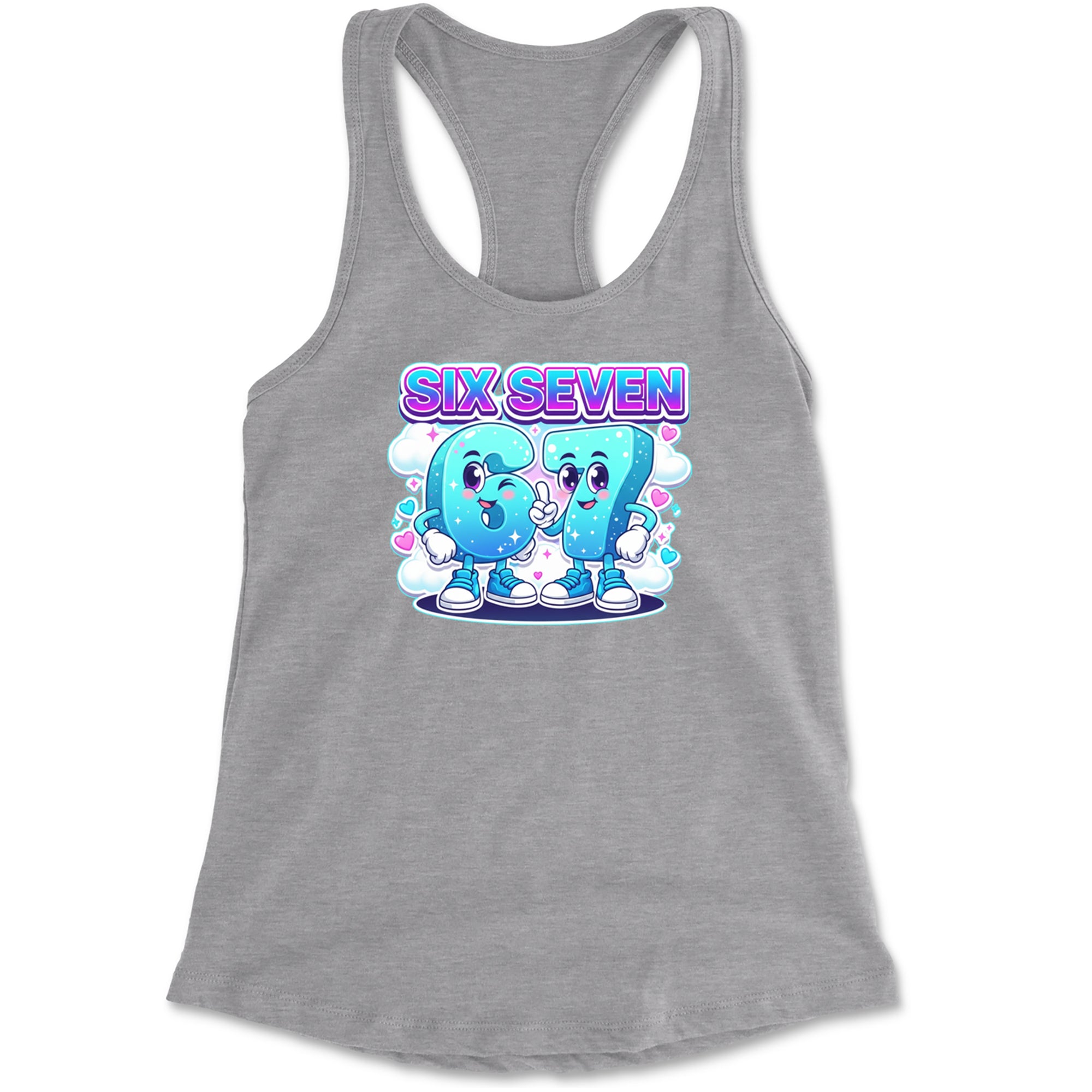 Adorable six and seven characters bring the viral 67 meme to life, surrounded by clouds, hearts, and sparkles for a soft pastel kawaii vibe kids and Gen Alpha fans love. Perfect for meme lovers, TikTok scrollers, and number brainrot fans who keep saying six seven for no reason; great for everyday outfits, edits, and funny pop culture fits.