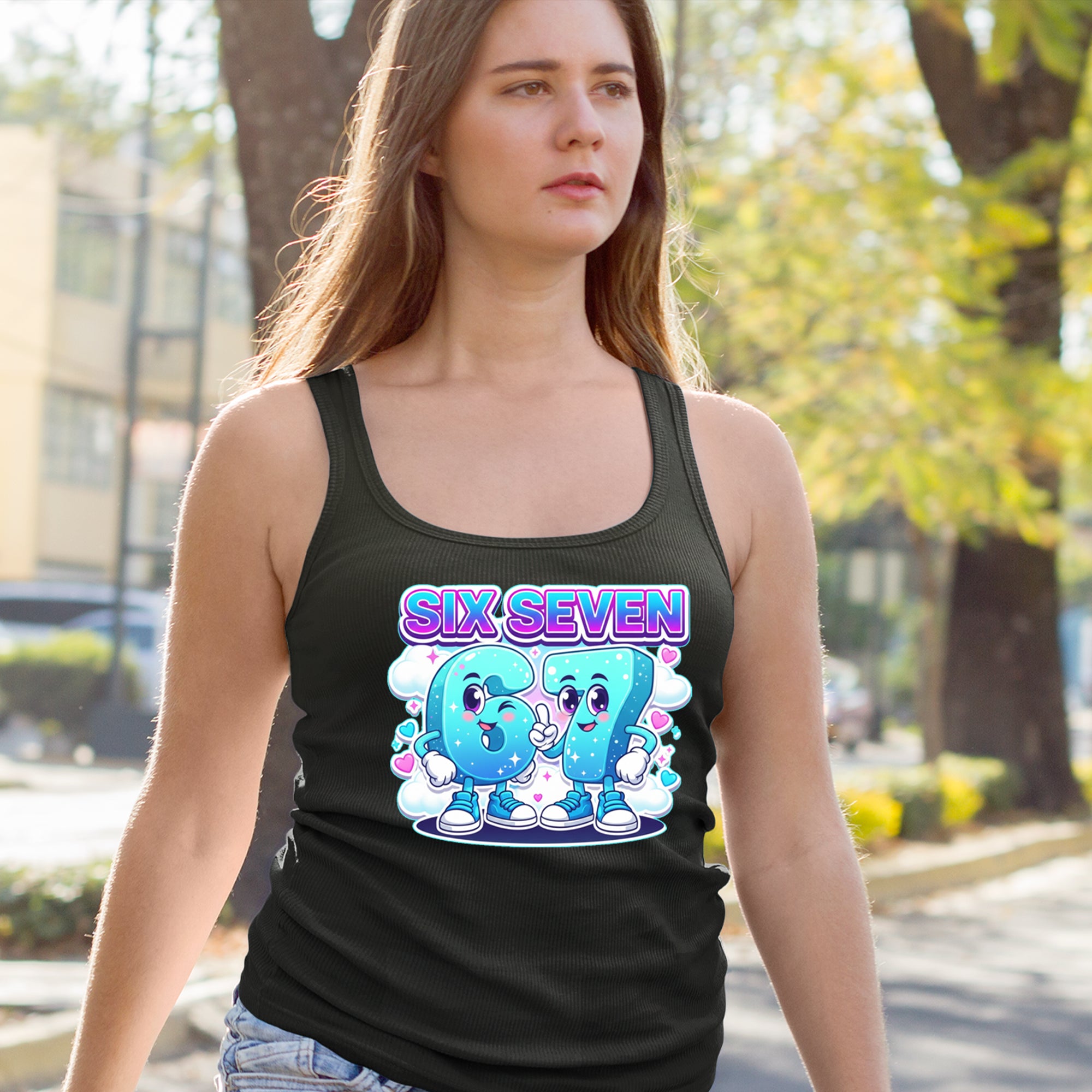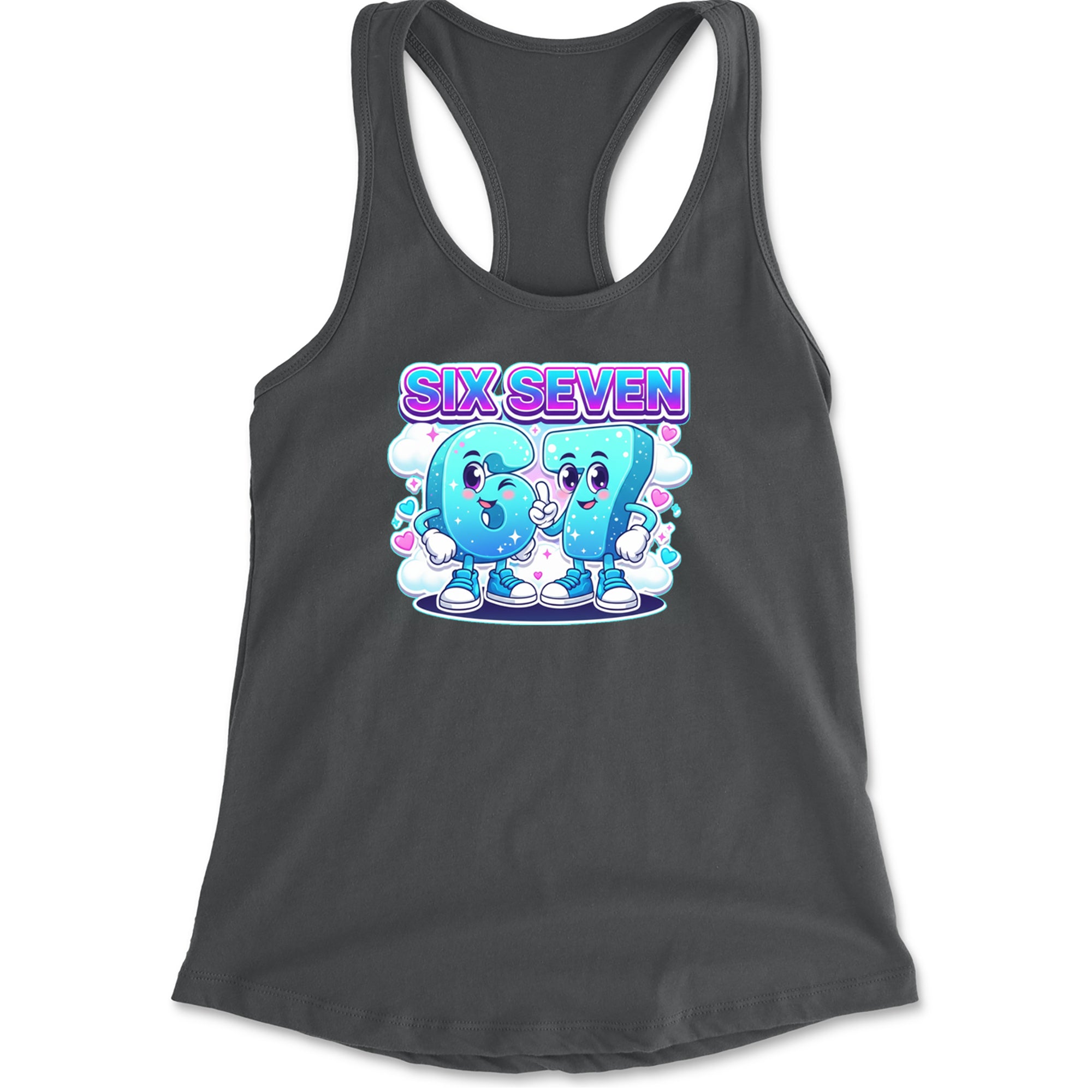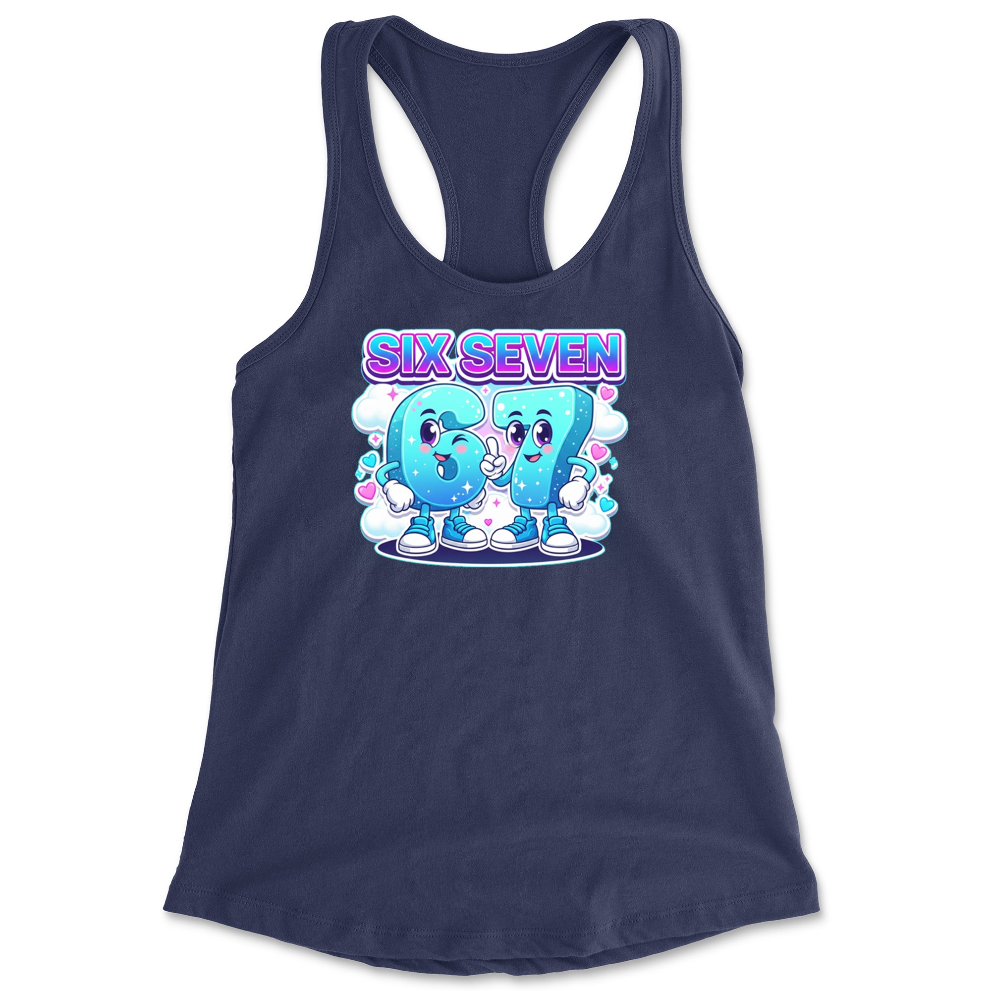 Adorable six and seven characters bring the viral 67 meme to life, surrounded by clouds, hearts, and sparkles for a soft pastel kawaii vibe kids and Gen Alpha fans love. Perfect for meme lovers, TikTok scrollers, and number brainrot fans who keep saying six seven for no reason; great for everyday outfits, edits, and funny pop culture fits.