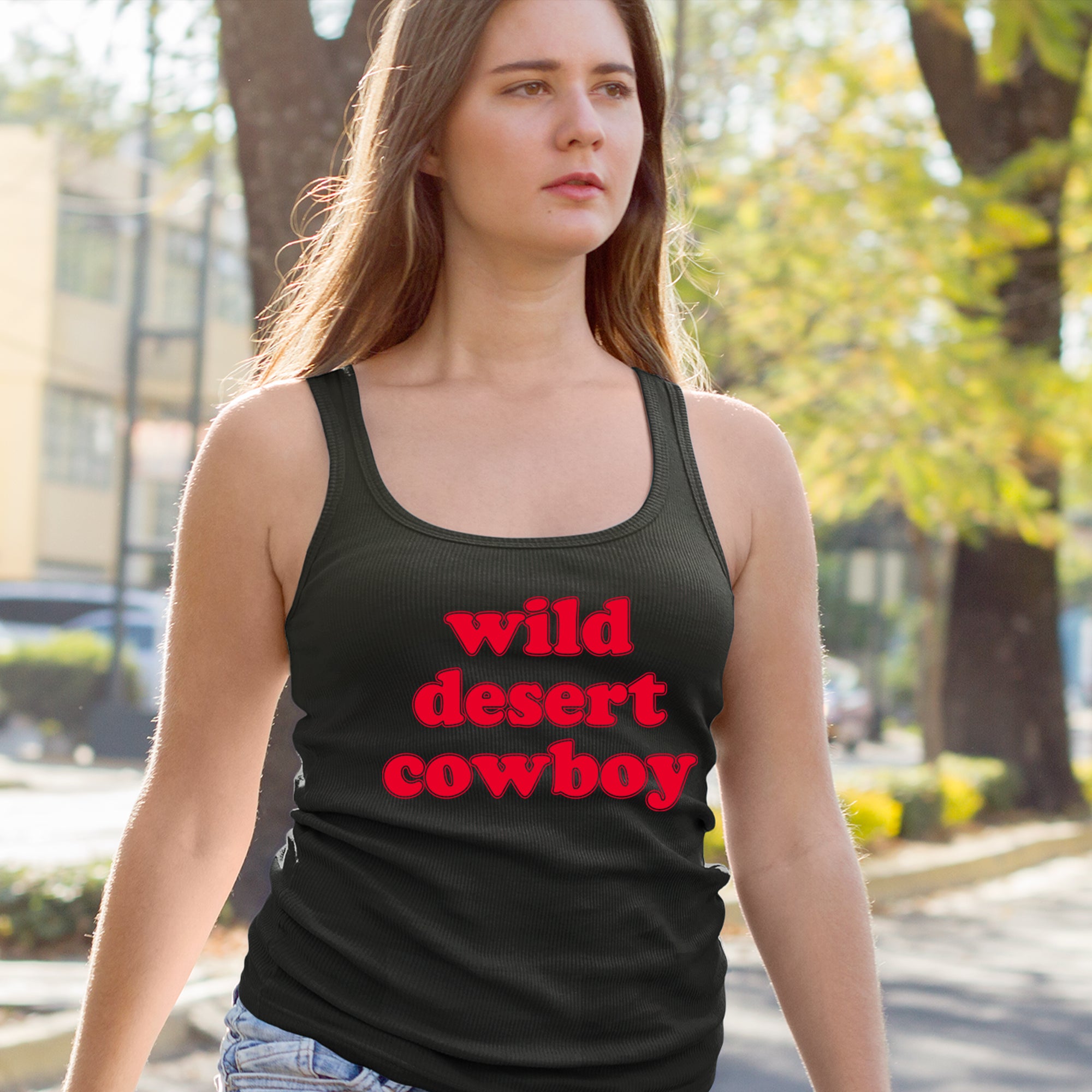 RETRO WESTERN VIBE: Bold "Wild Desert Cowboy" bubble lettering delivers an instant desert-western look for rodeos, country concerts, and festival outfits. RODEO RANCH: Fun western phrase graphic for fans of Cowboycore Desert Aesthetic, ranch life energy, and casual everyday wear.
