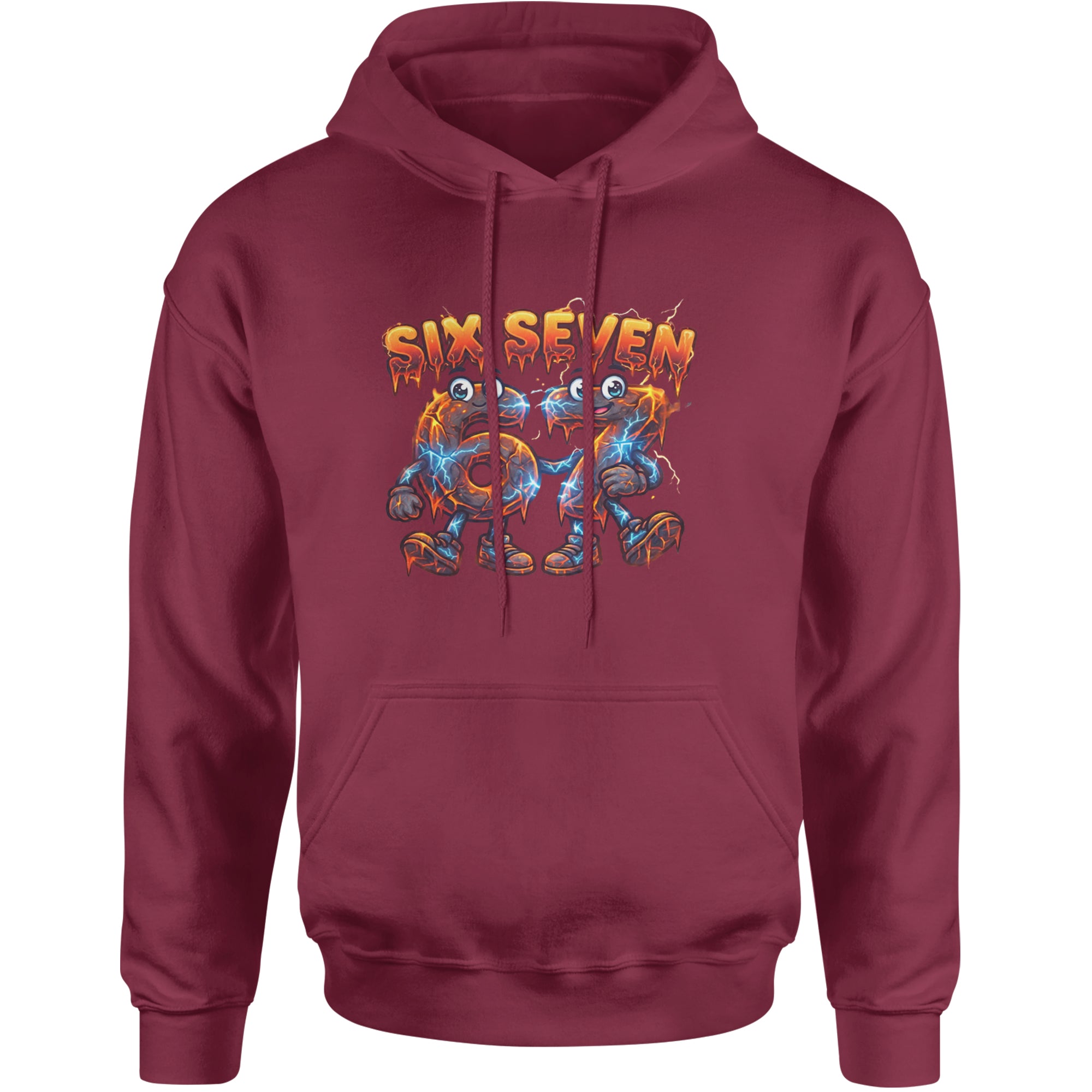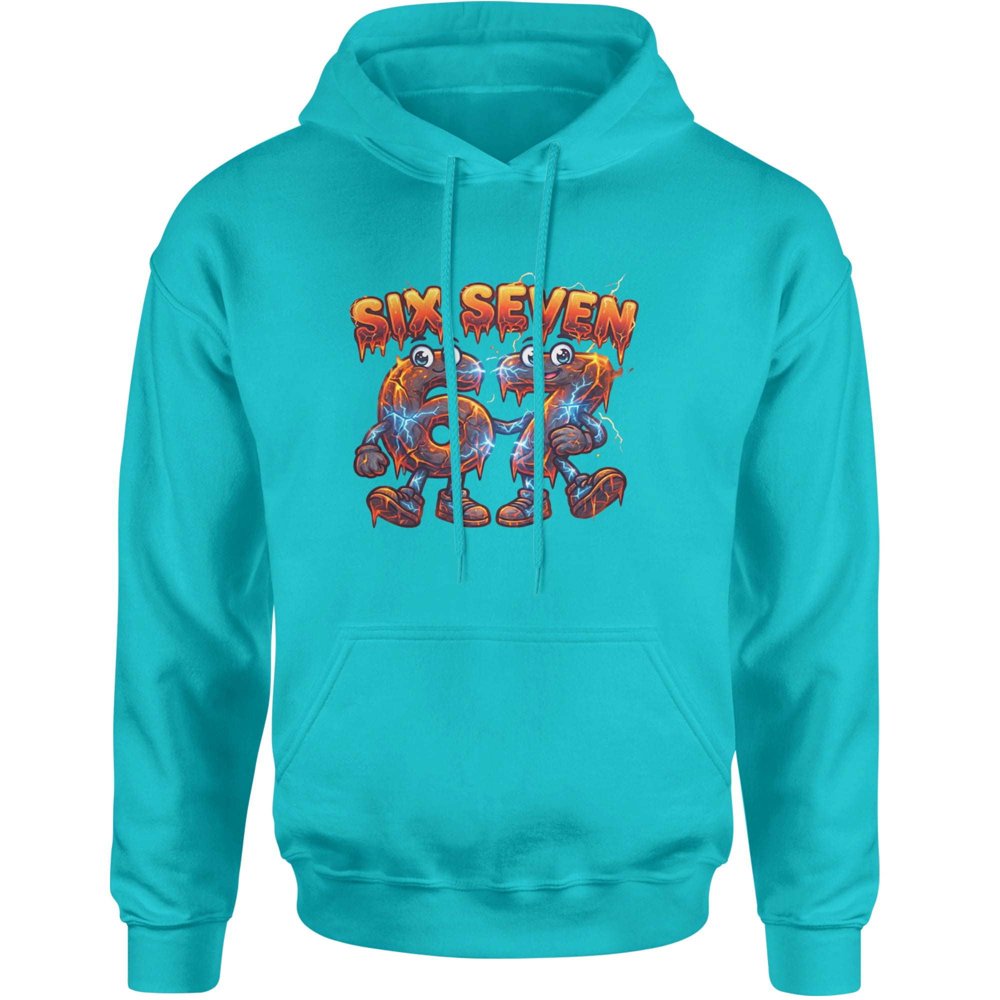 Molten six and seven characters glow with lava cracks and blue lightning, turning the viral Six Seven 67 meme into a powerful fiery aesthetic for meme obsessed kids and teens. Perfect for videoedits, hoops clips, and everyday fits where you want your favorite number brainrot sound on full display in a bold electric cartoon style.