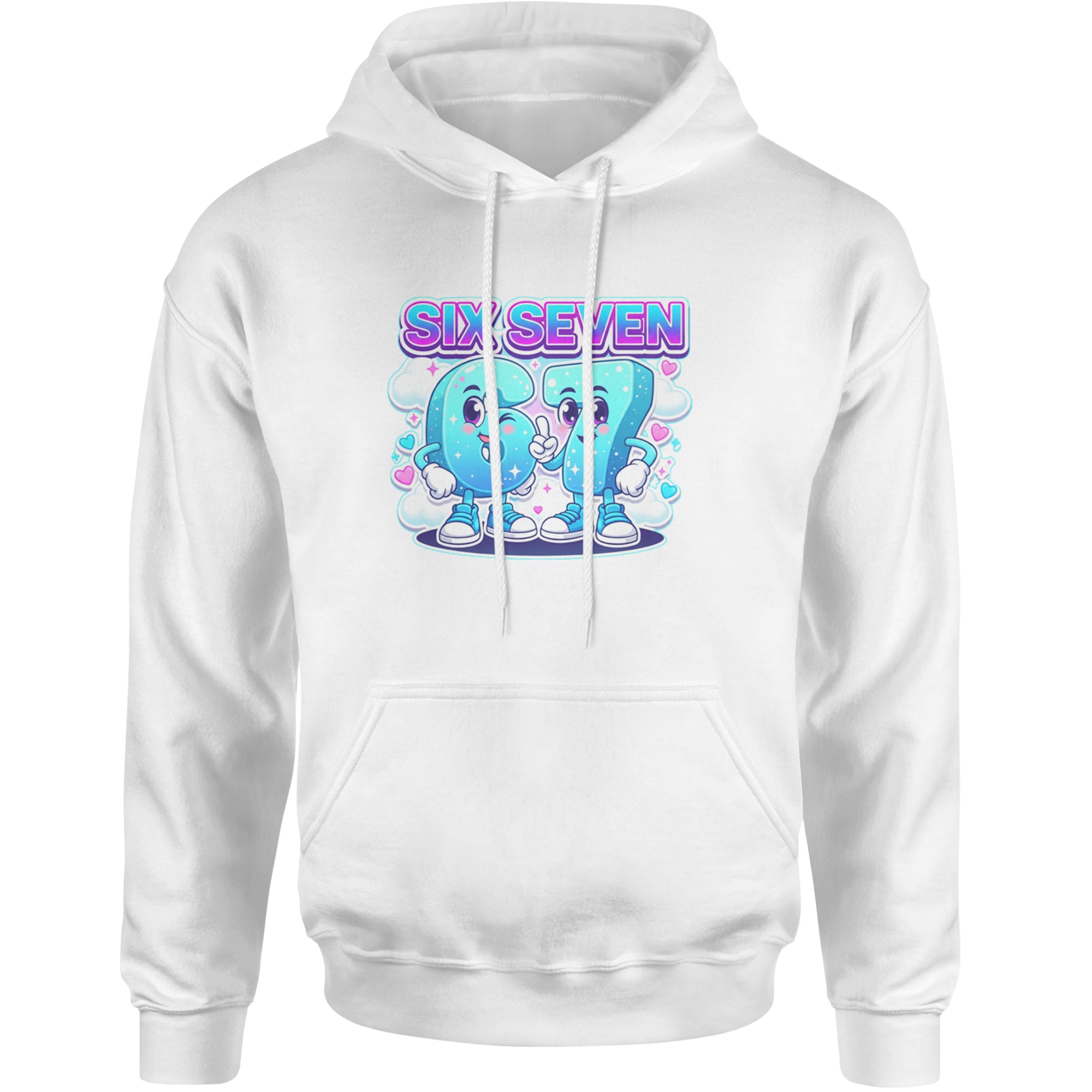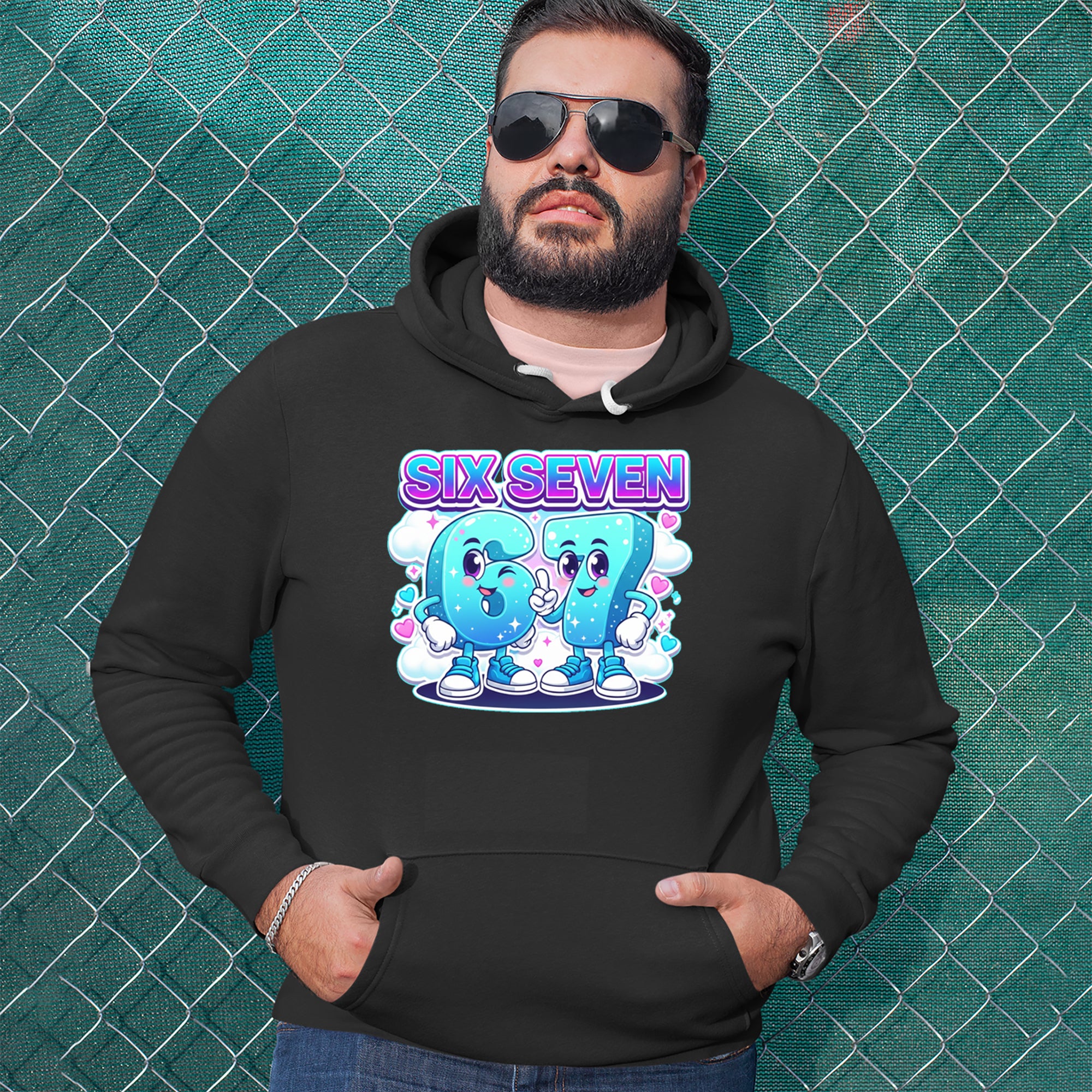 Adorable six and seven characters bring the viral 67 meme to life, surrounded by clouds, hearts, and sparkles for a soft pastel kawaii vibe kids and Gen Alpha fans love. Perfect for meme lovers, TikTok scrollers, and number brainrot fans who keep saying six seven for no reason; great for everyday outfits, edits, and funny pop culture fits.