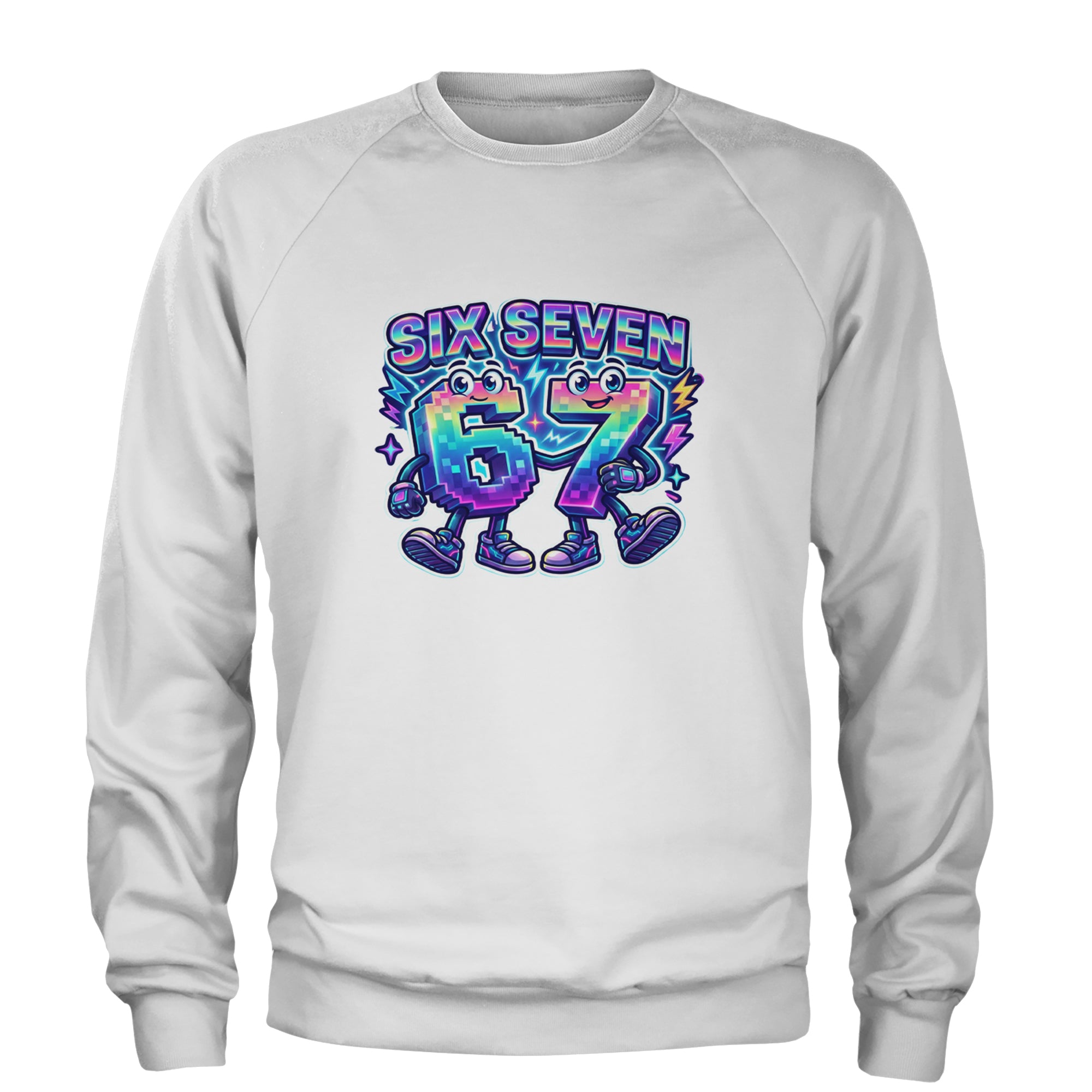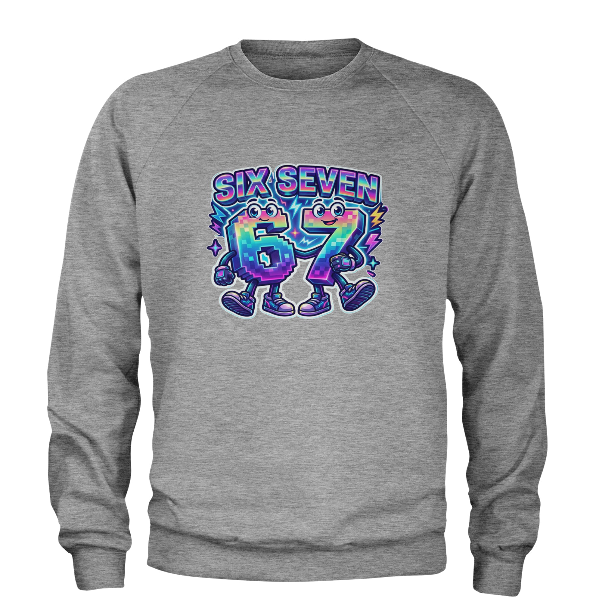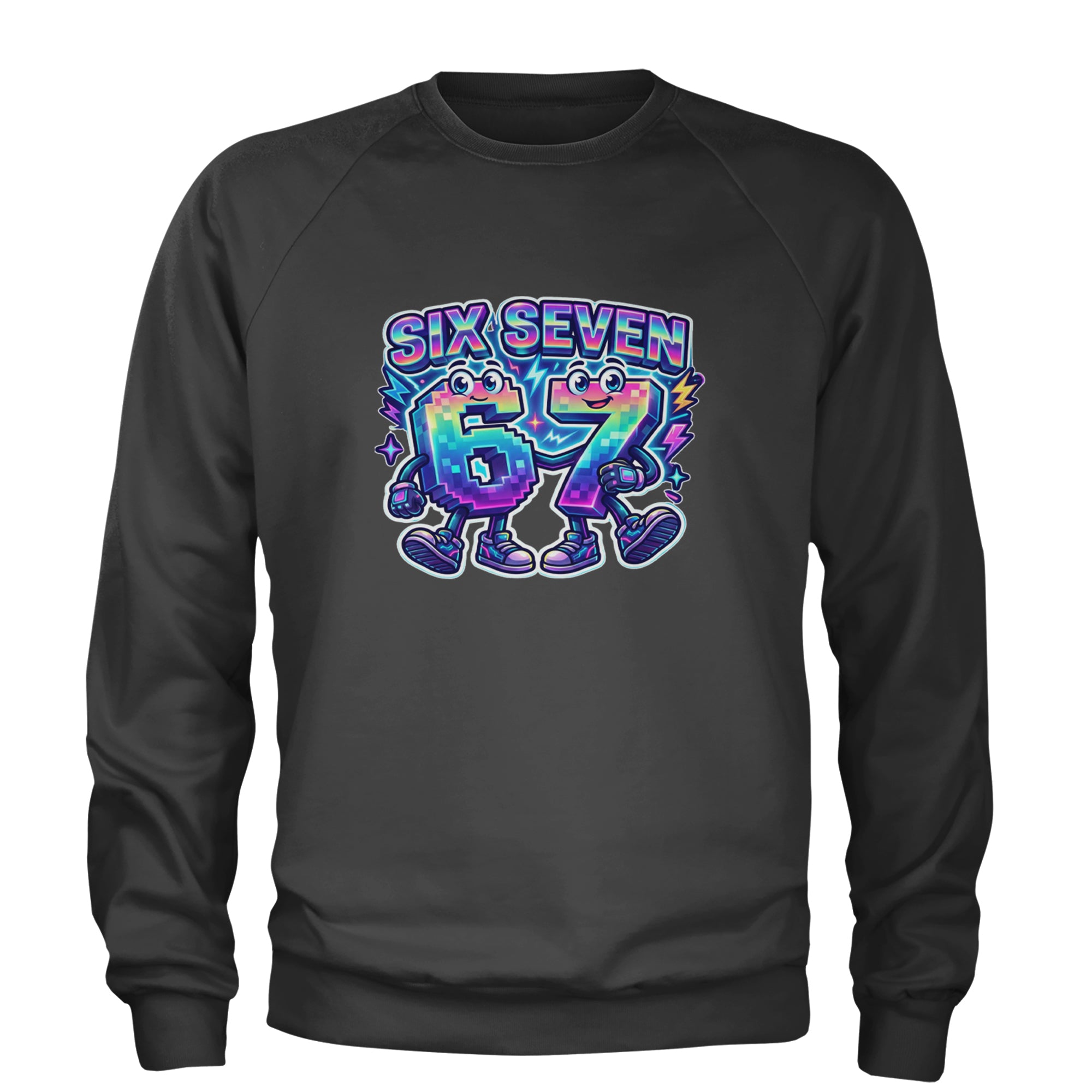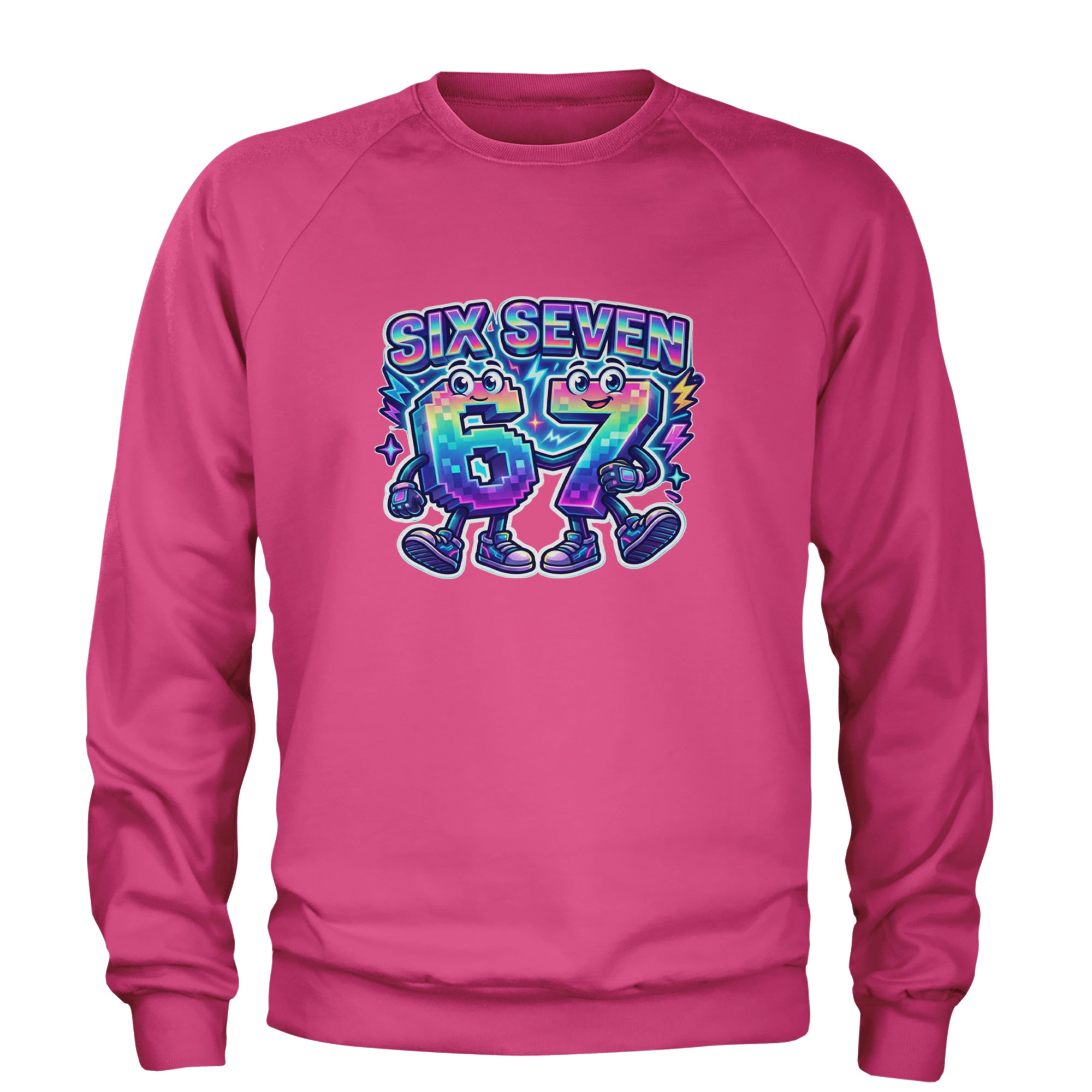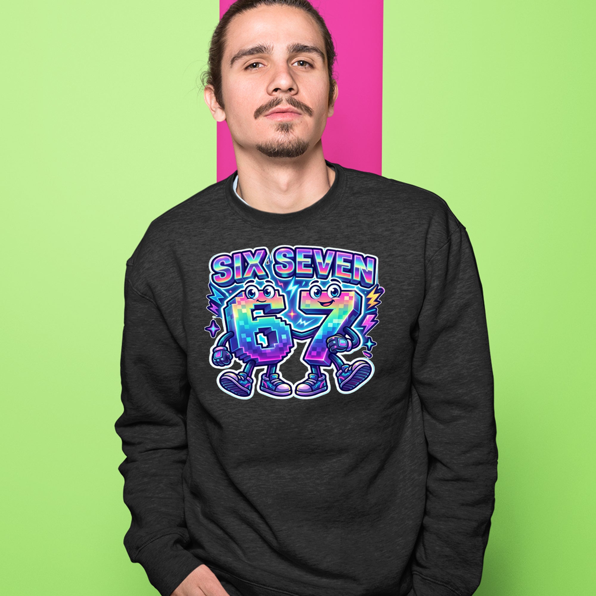 Colorful pixel 6 and 7 characters celebrate the viral Six Seven 67 meme, inspired by the TikTok brainrot number trend. Perfect for anyone who randomly blurts out six seven for no reason at all. Fun pick for Gen Alpha kids, meme lovers, hoop fans, and creators who live on reels and shorts. Bright neon rainbow style makes this 67 meme art pop in videos, streams, and everyday fit pics.