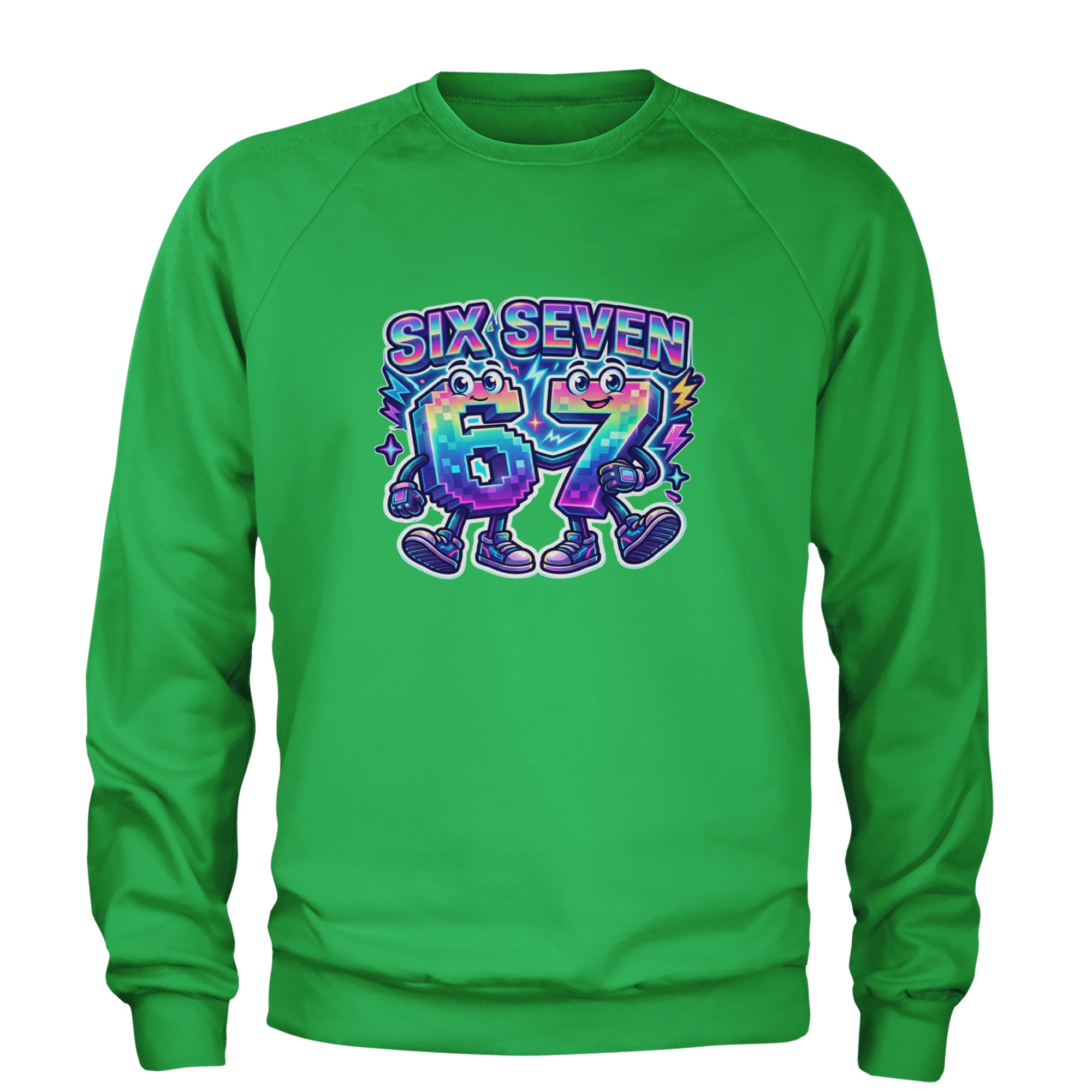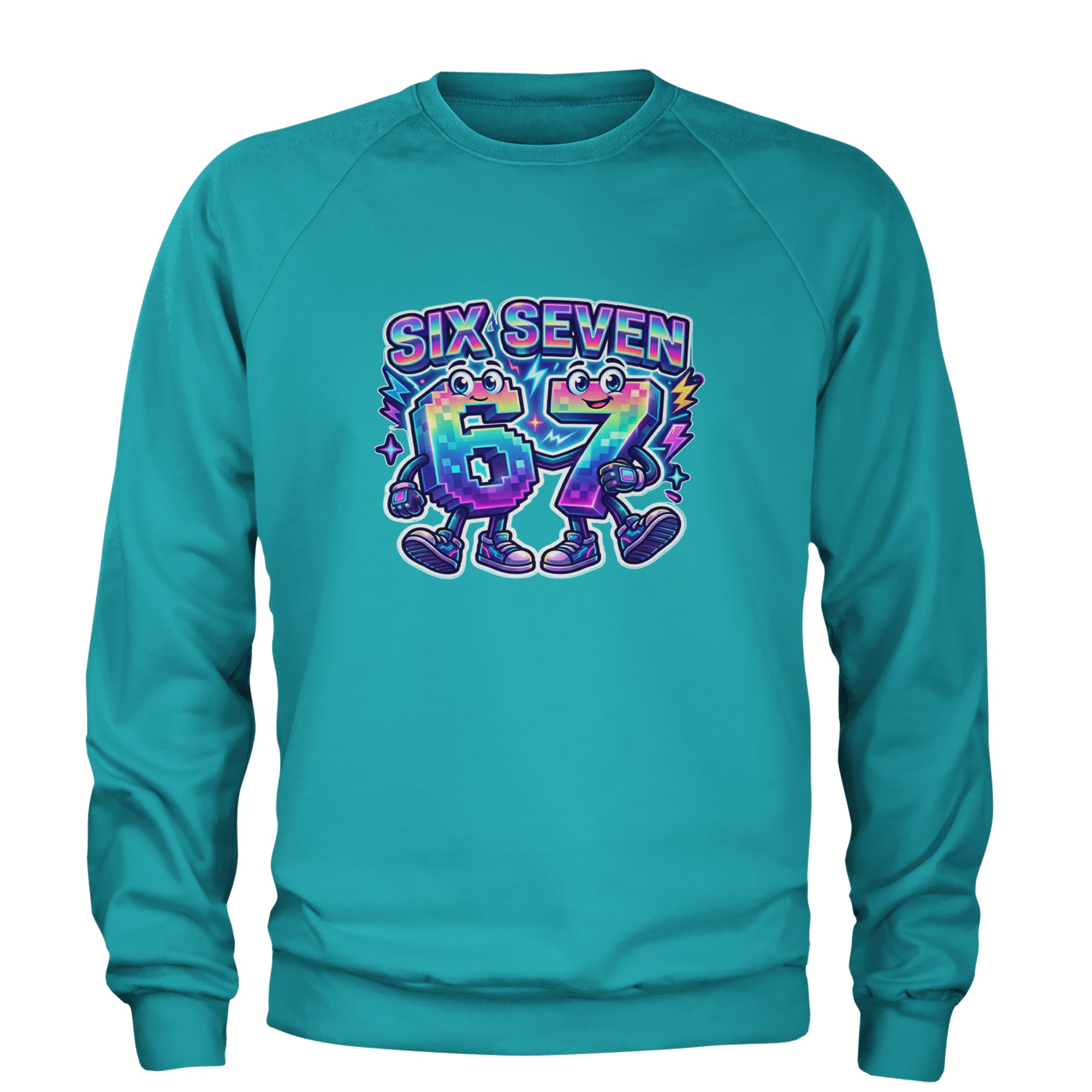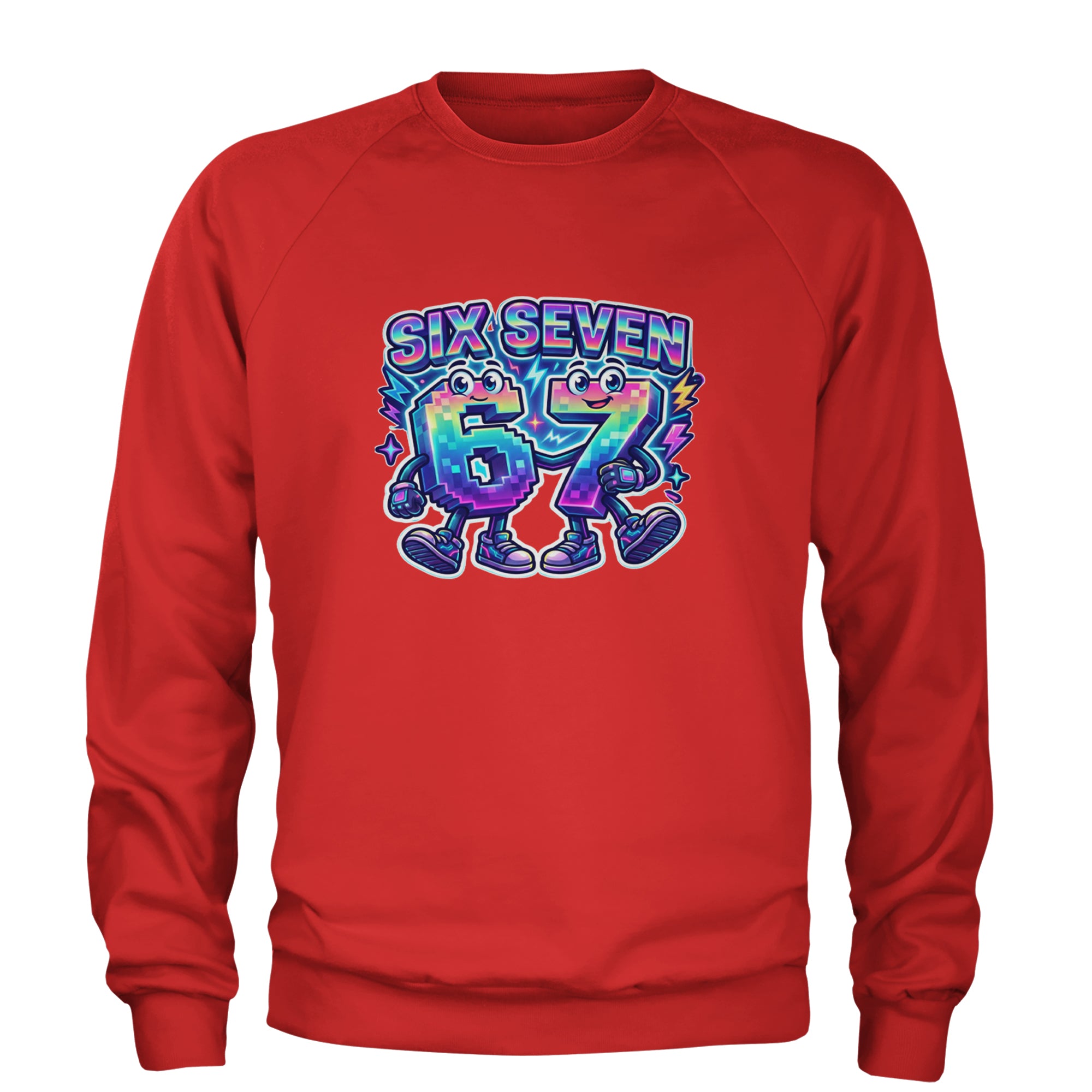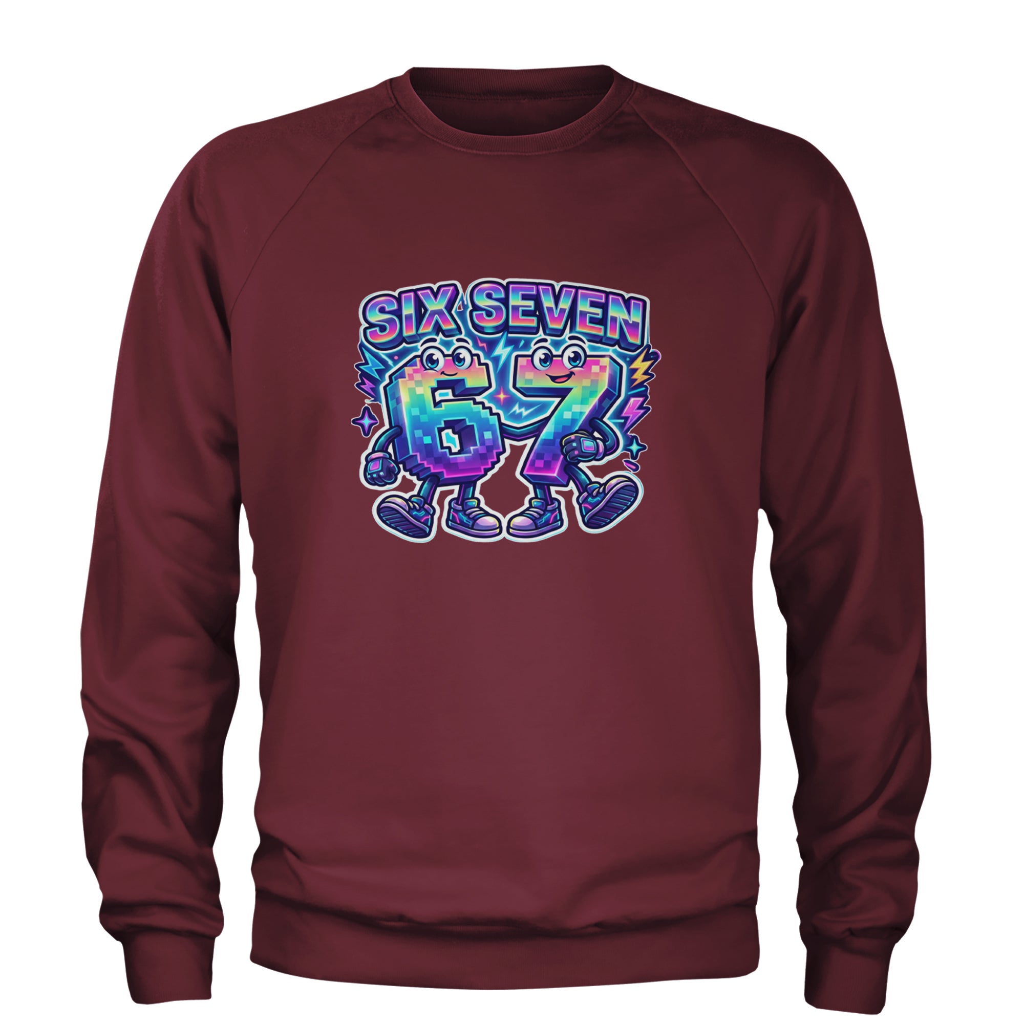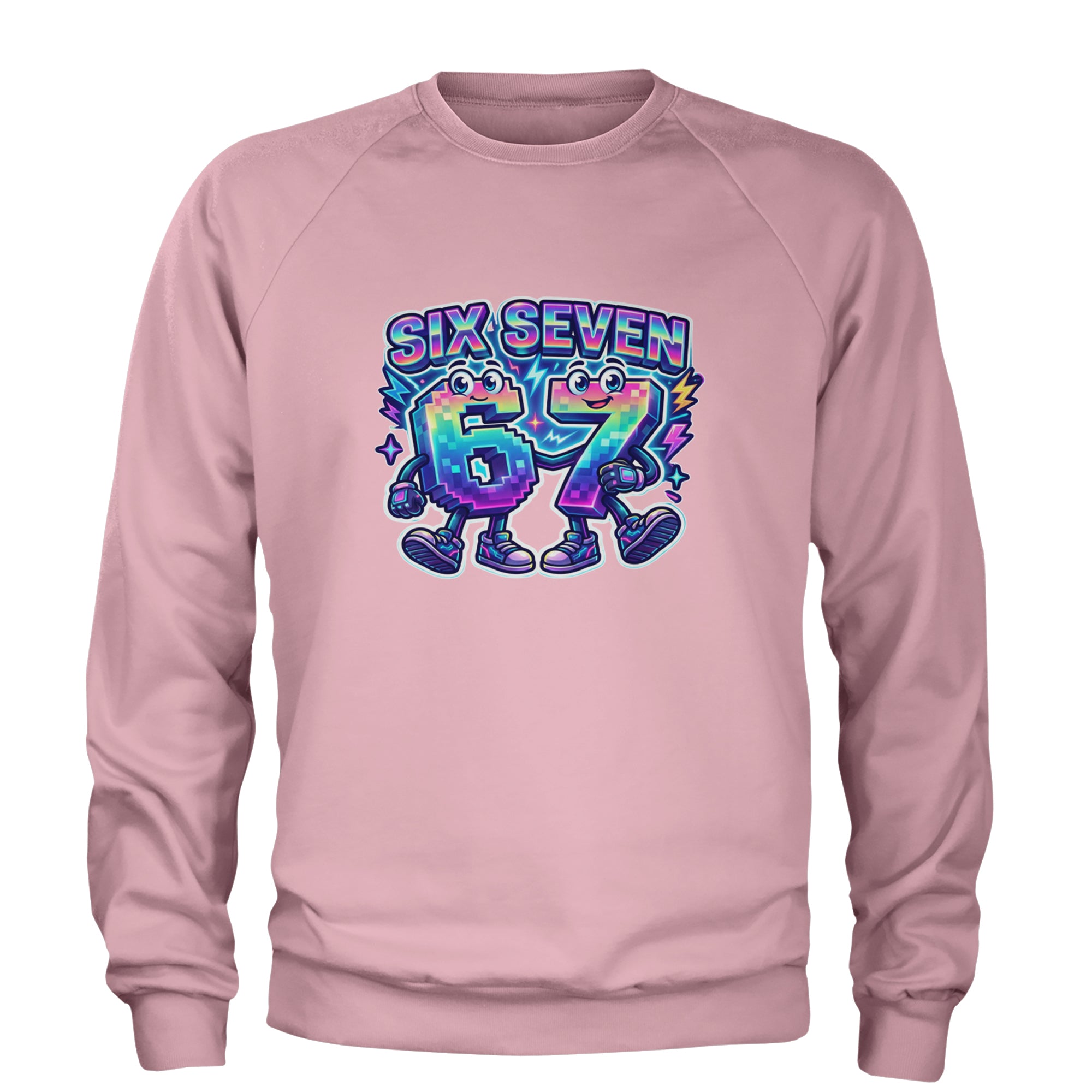 Colorful pixel 6 and 7 characters celebrate the viral Six Seven 67 meme, inspired by the TikTok brainrot number trend. Perfect for anyone who randomly blurts out six seven for no reason at all. Fun pick for Gen Alpha kids, meme lovers, hoop fans, and creators who live on reels and shorts. Bright neon rainbow style makes this 67 meme art pop in videos, streams, and everyday fit pics.