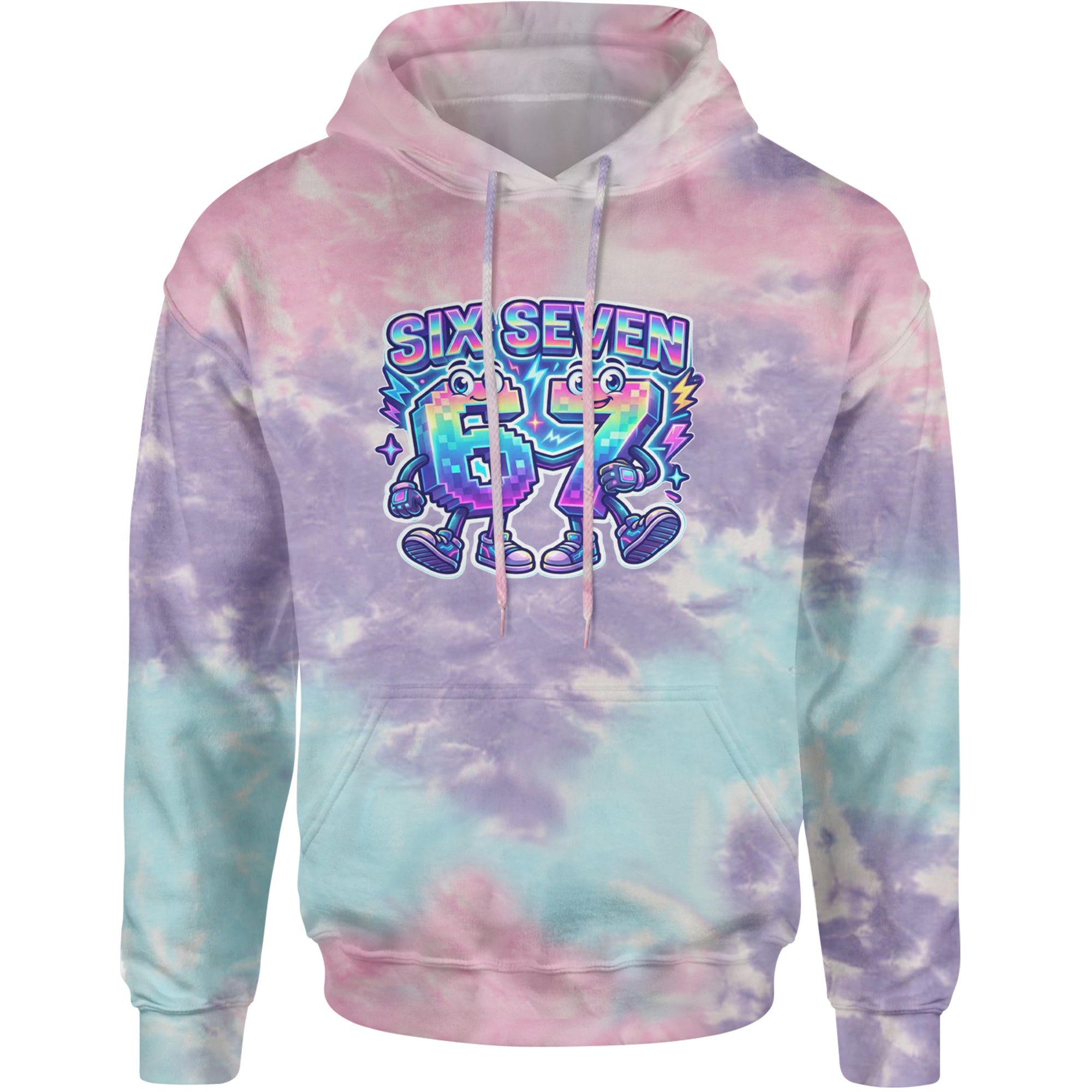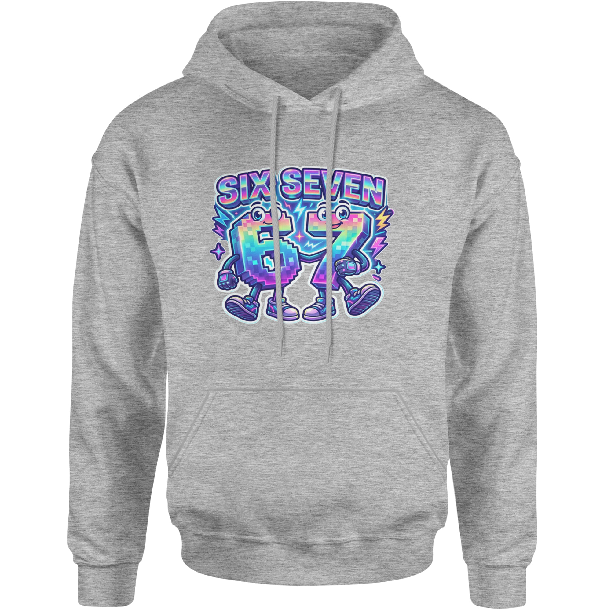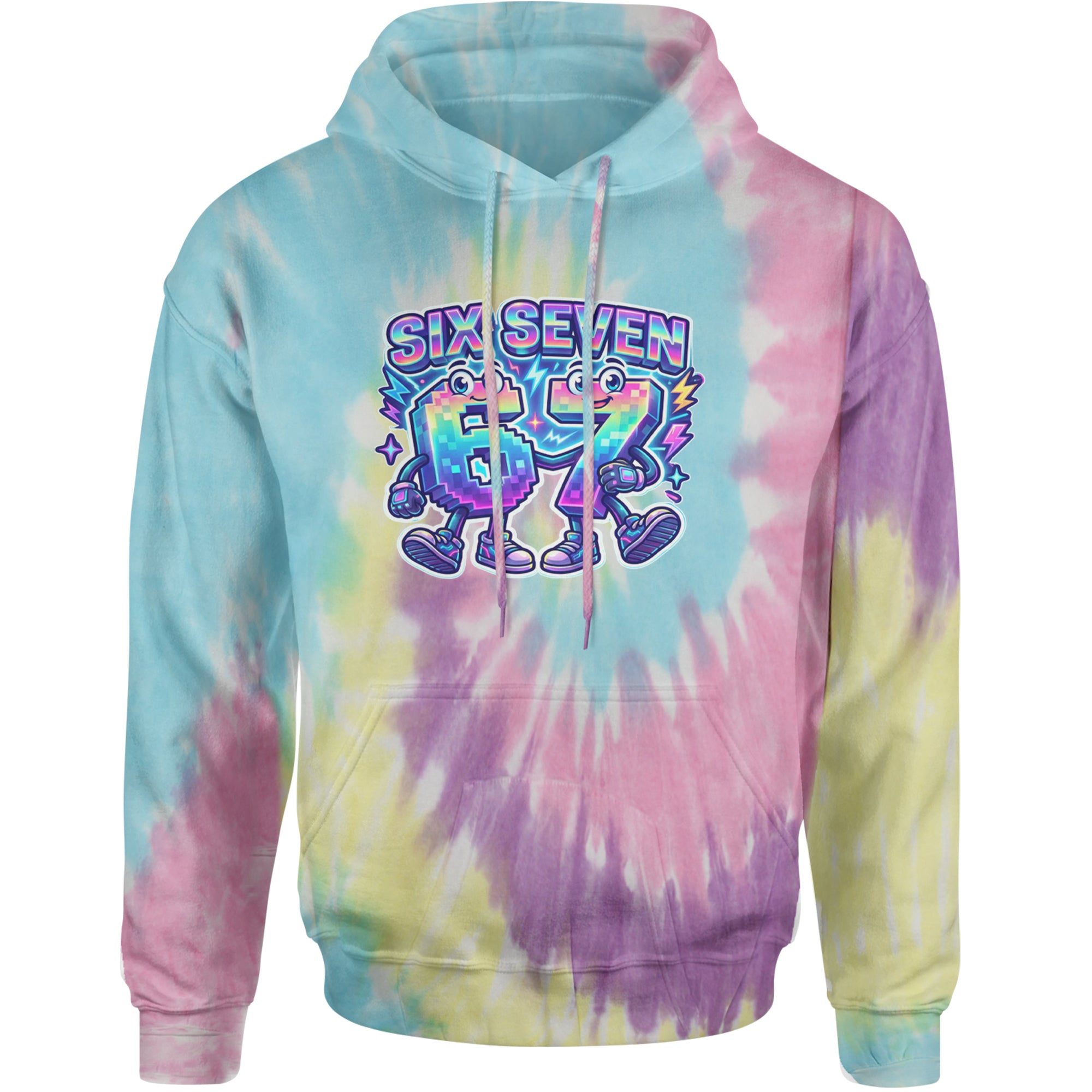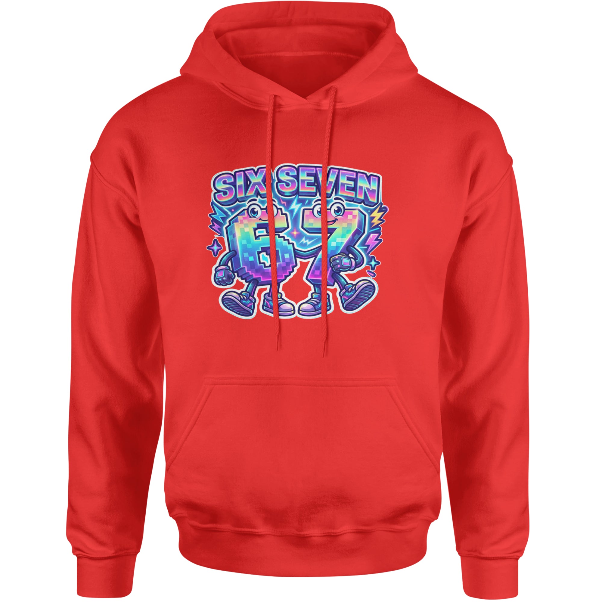 Colorful pixel 6 and 7 characters celebrate the viral Six Seven 67 meme, inspired by the TikTok brainrot number trend. Perfect for anyone who randomly blurts out six seven for no reason at all. Fun pick for Gen Alpha kids, meme lovers, hoop fans, and creators who live on reels and shorts. Bright neon rainbow style makes this 67 meme art pop in videos, streams, and everyday fit pics.