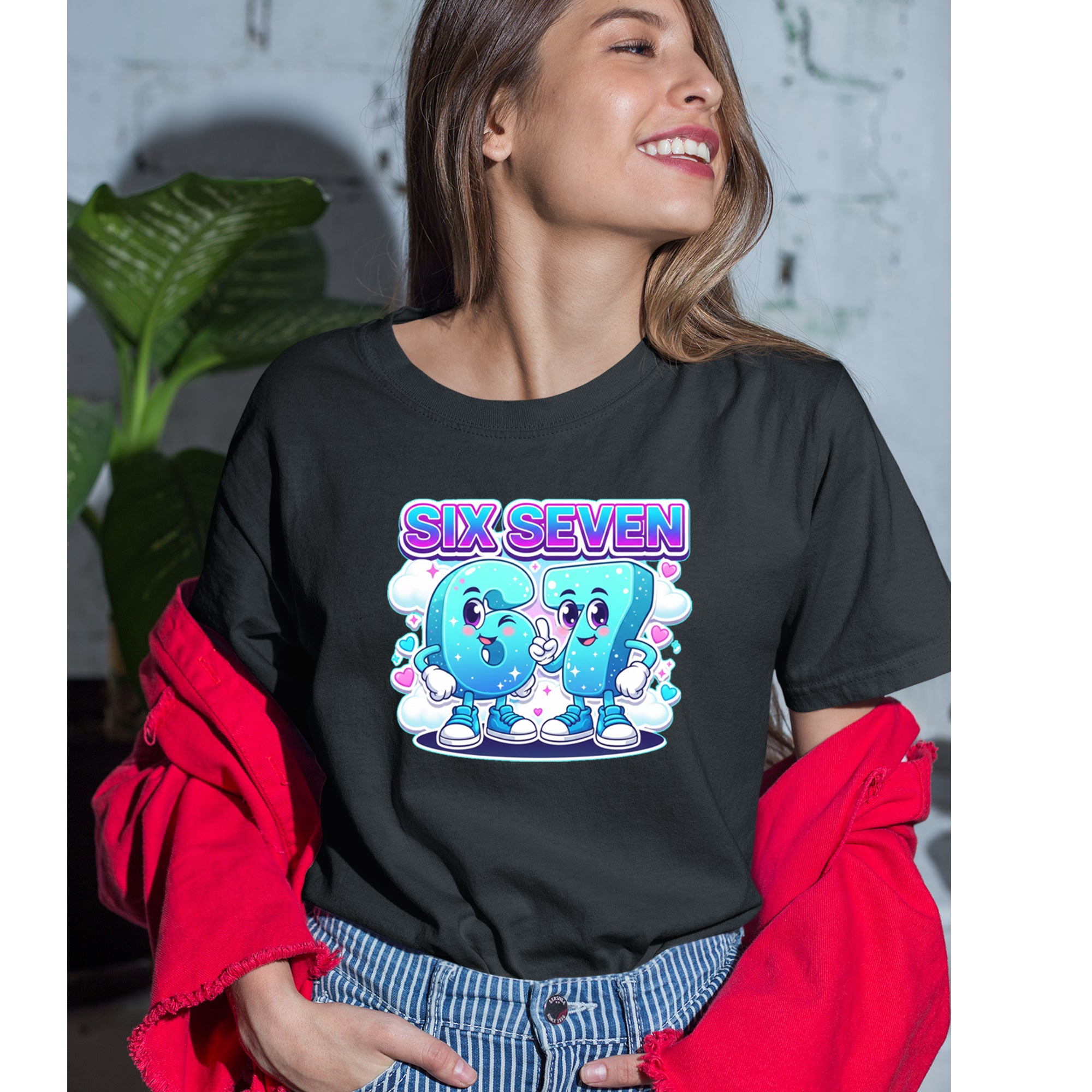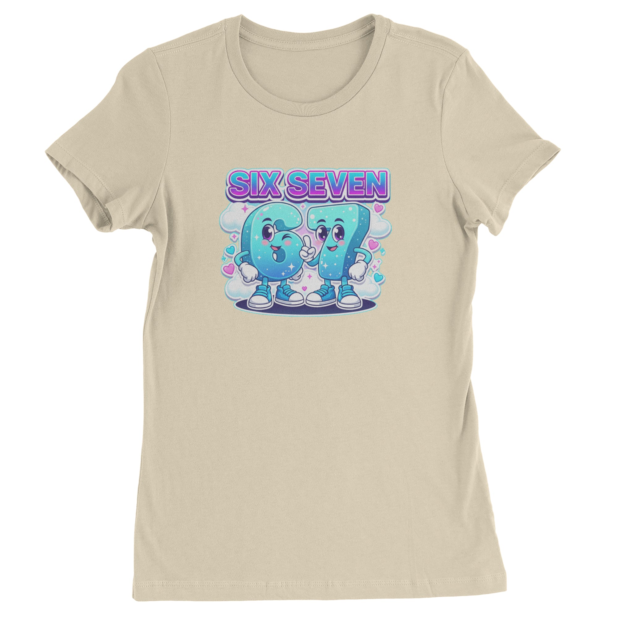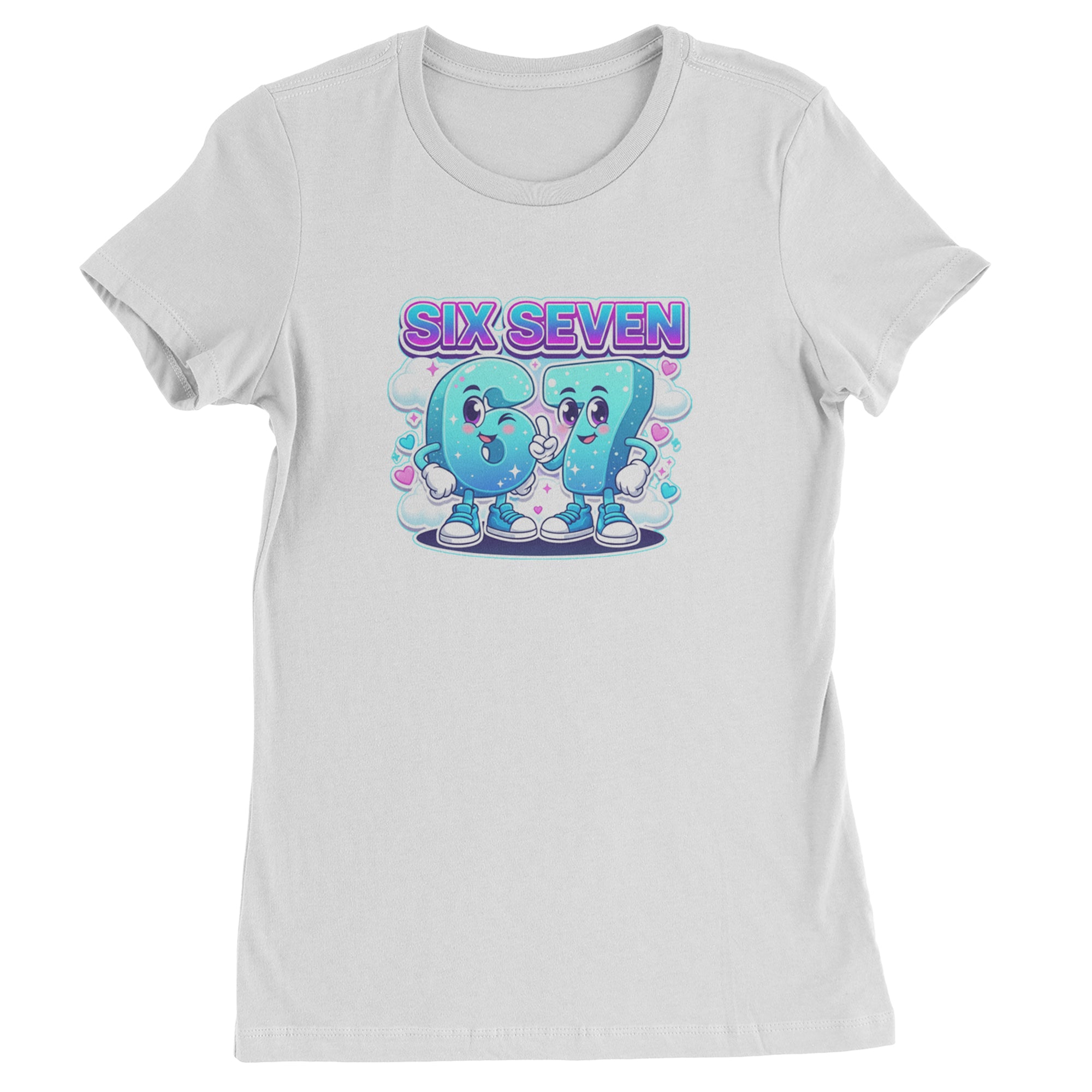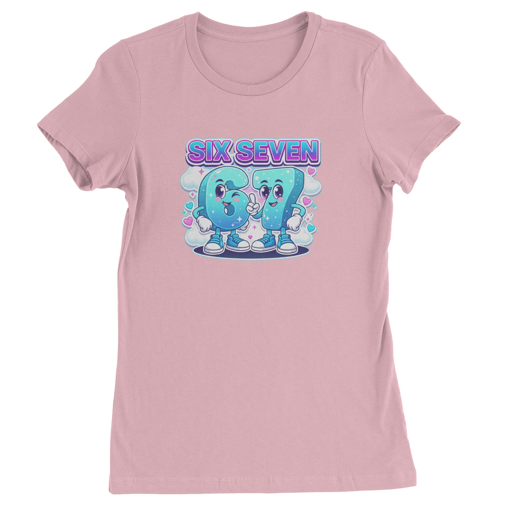 Adorable six and seven characters bring the viral 67 meme to life, surrounded by clouds, hearts, and sparkles for a soft pastel kawaii vibe kids and Gen Alpha fans love. Perfect for meme lovers, TikTok scrollers, and number brainrot fans who keep saying six seven for no reason; great for everyday outfits, edits, and funny pop culture fits.