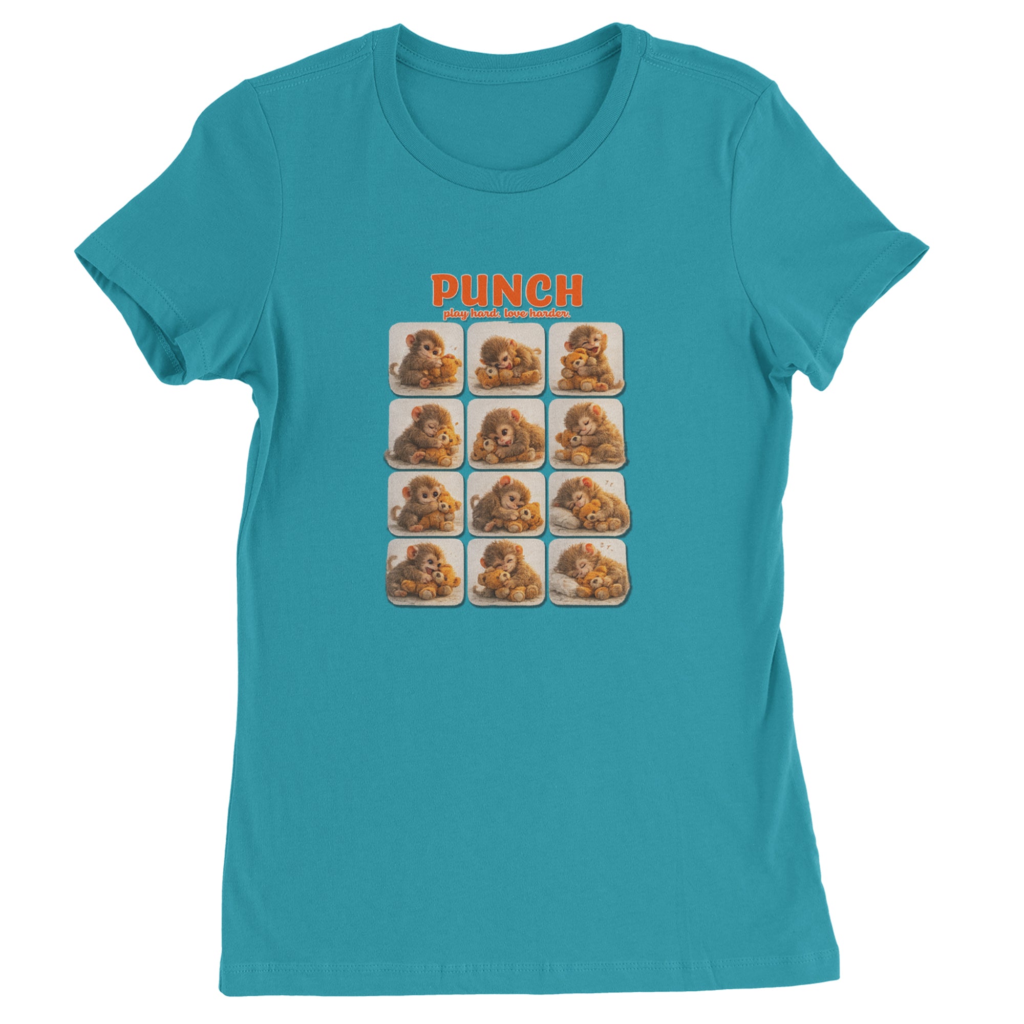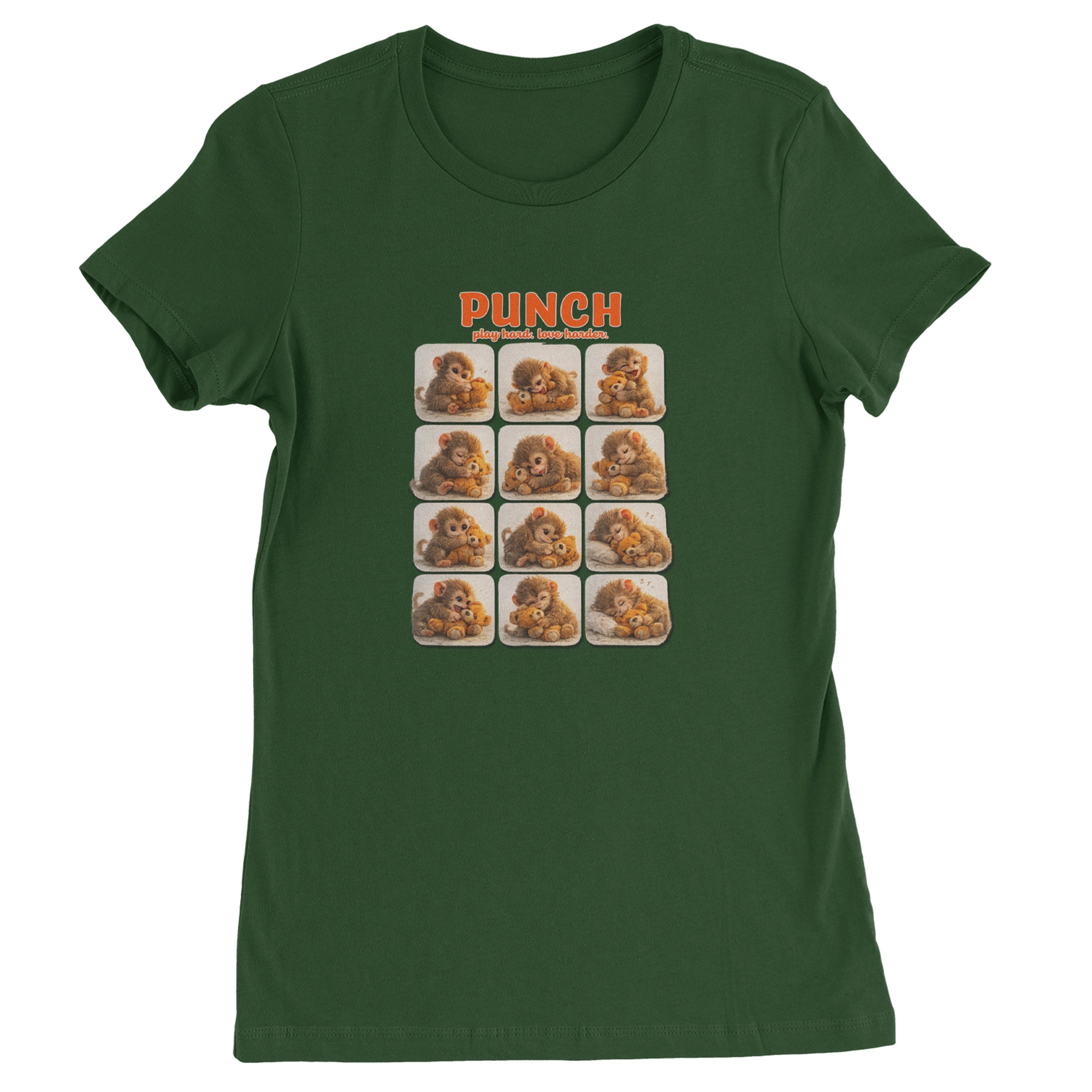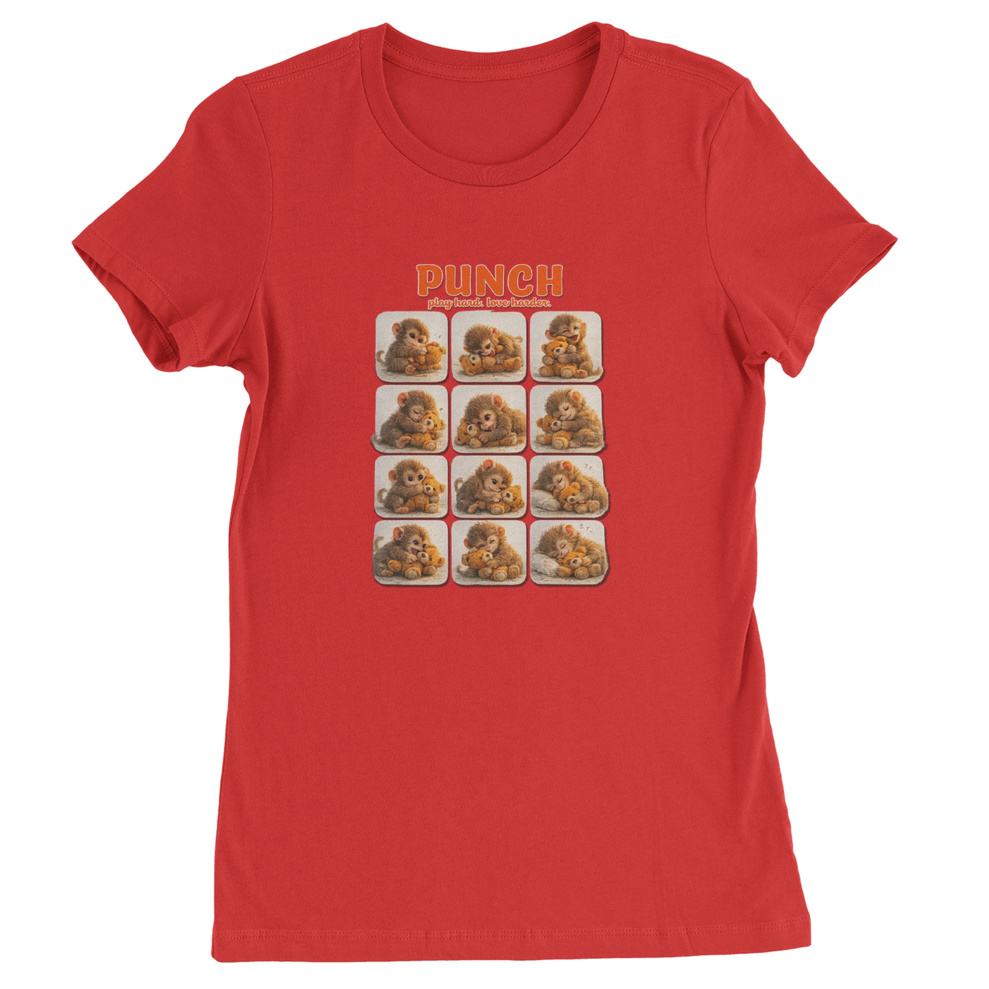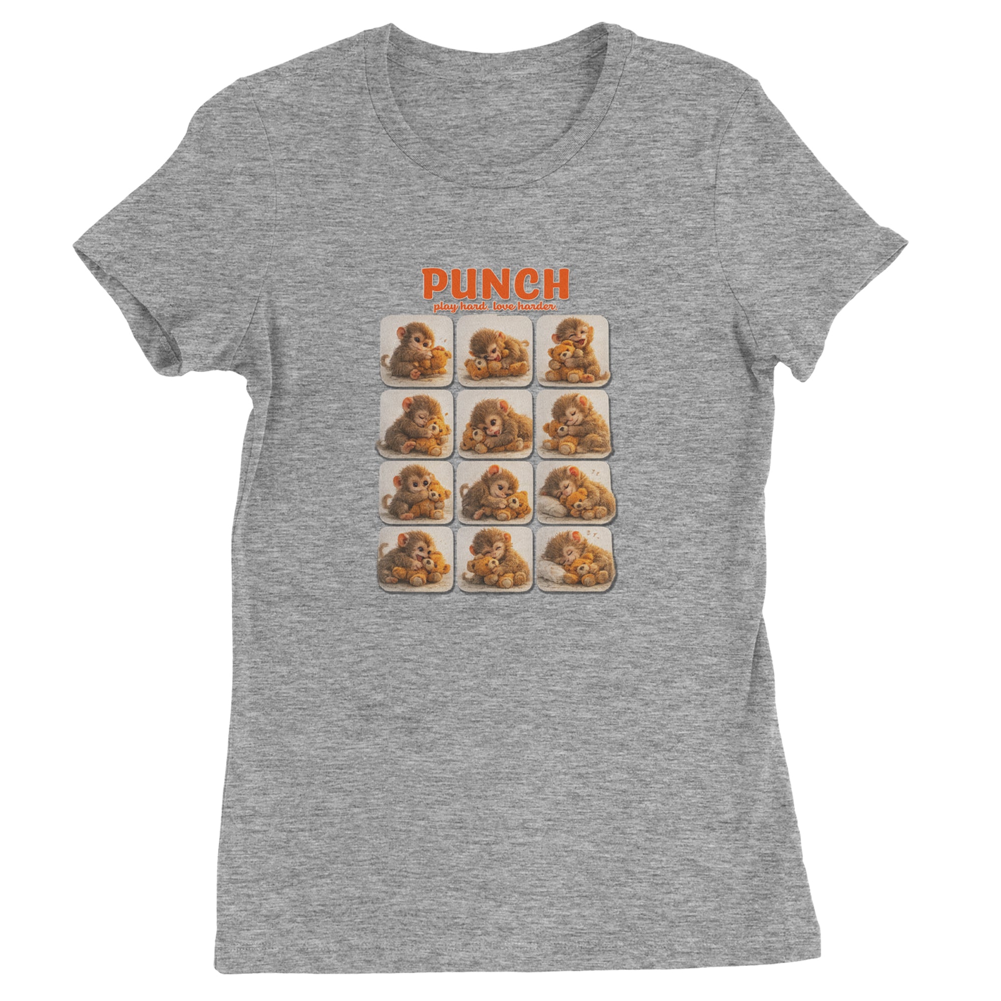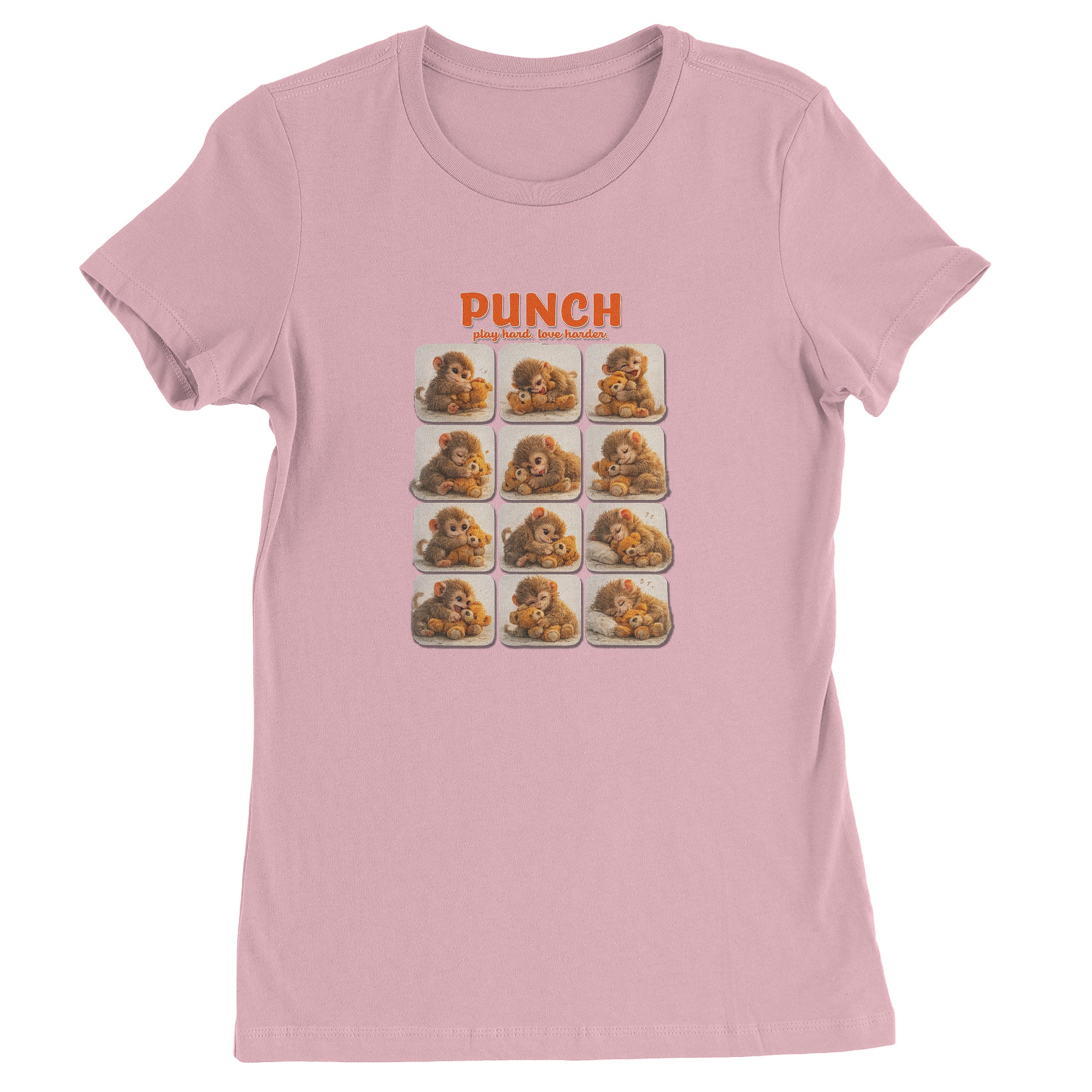 EVERY MOOD. ONE LITTLE MONKEY. | Chewing the plush, napping on it, laughing, brooding, cuddling - this design captures the full emotional range of the world's most relatable baby snow monkey in one epic grid. Fans will lose it. PLAY HARD. LOVE HARDER. | That is not just a tagline, that is Punch's entire biography. Japan zoo devotees, viral macaque followers, and anyone who has ever loved something with their whole chest will wear this like a badge of honor.