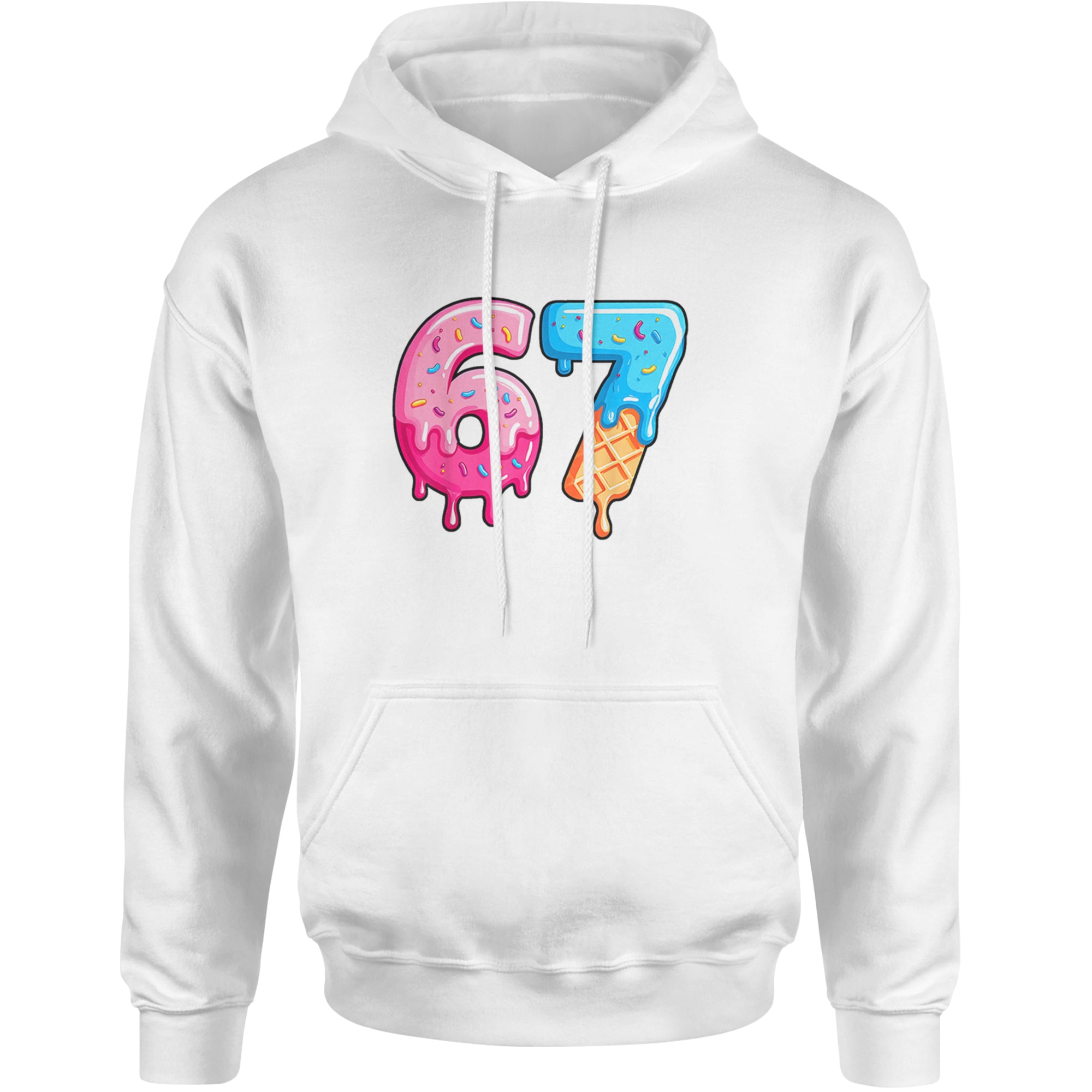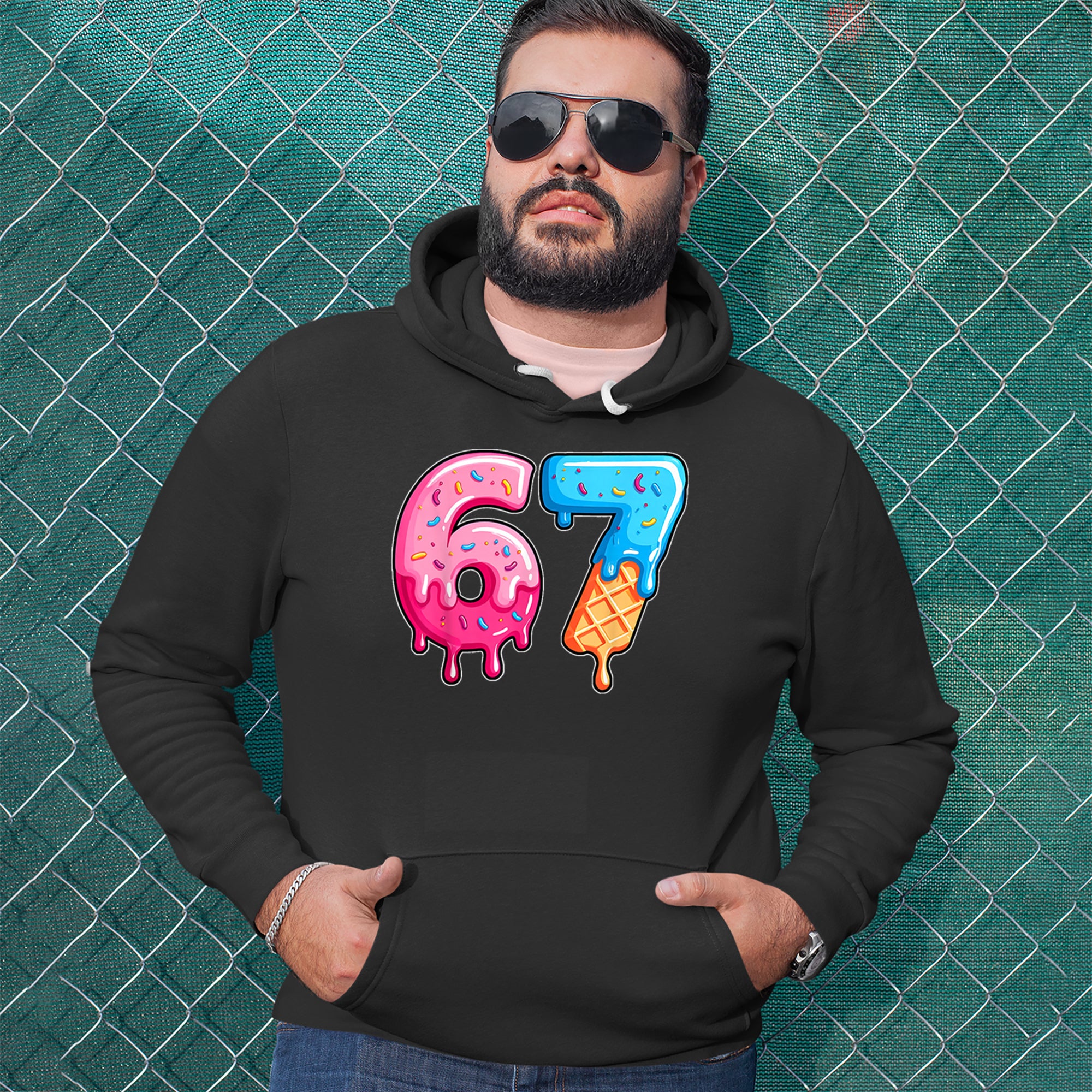 The number 67 never looked so tasty. This sugary remix of the viral meme features a pink donut 6 and blue ice cream cone 7, dripping with sprinkle-covered attitude. Perfect for fans of food-core aesthetics, TikTok memes, and anyone who likes their internet jokes served with extra frosting. Fun, loud, and deliciously trendy.