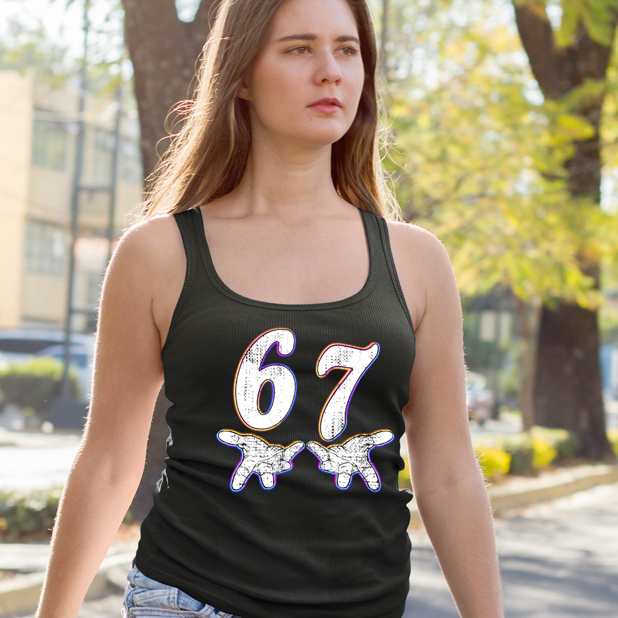 A bold nod to the viral "67, what's that?" meme that's all over TikTok and drill rap culture – if you know, you know. This eye-catching design brings street energy and internet humor to your fit. Featuring the iconic 67 with animated hands, it's a must-have for fans of UK drill, meme collectors, and anyone fluent in internet slang. Perfect for casual wear or sharing an inside joke with the culture.