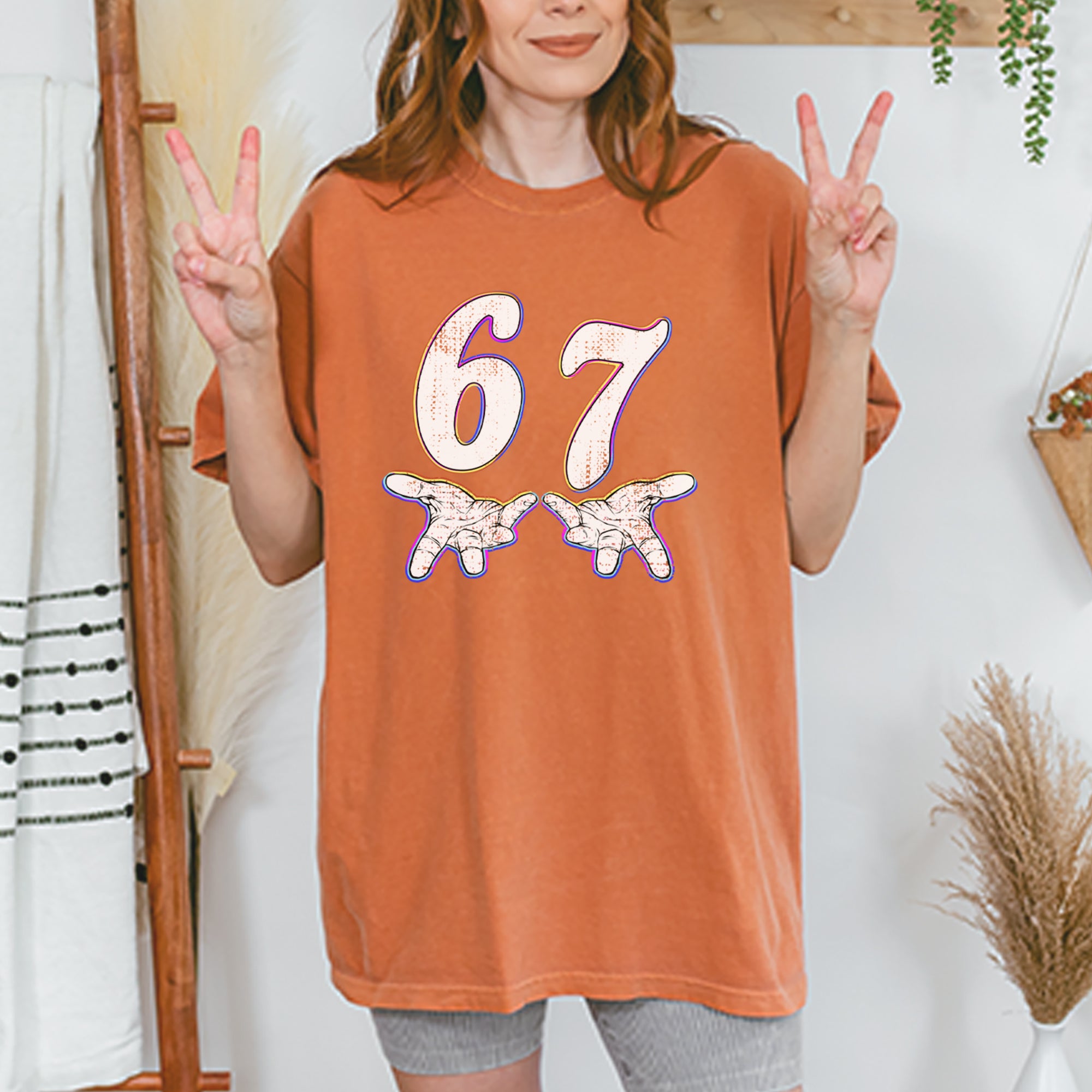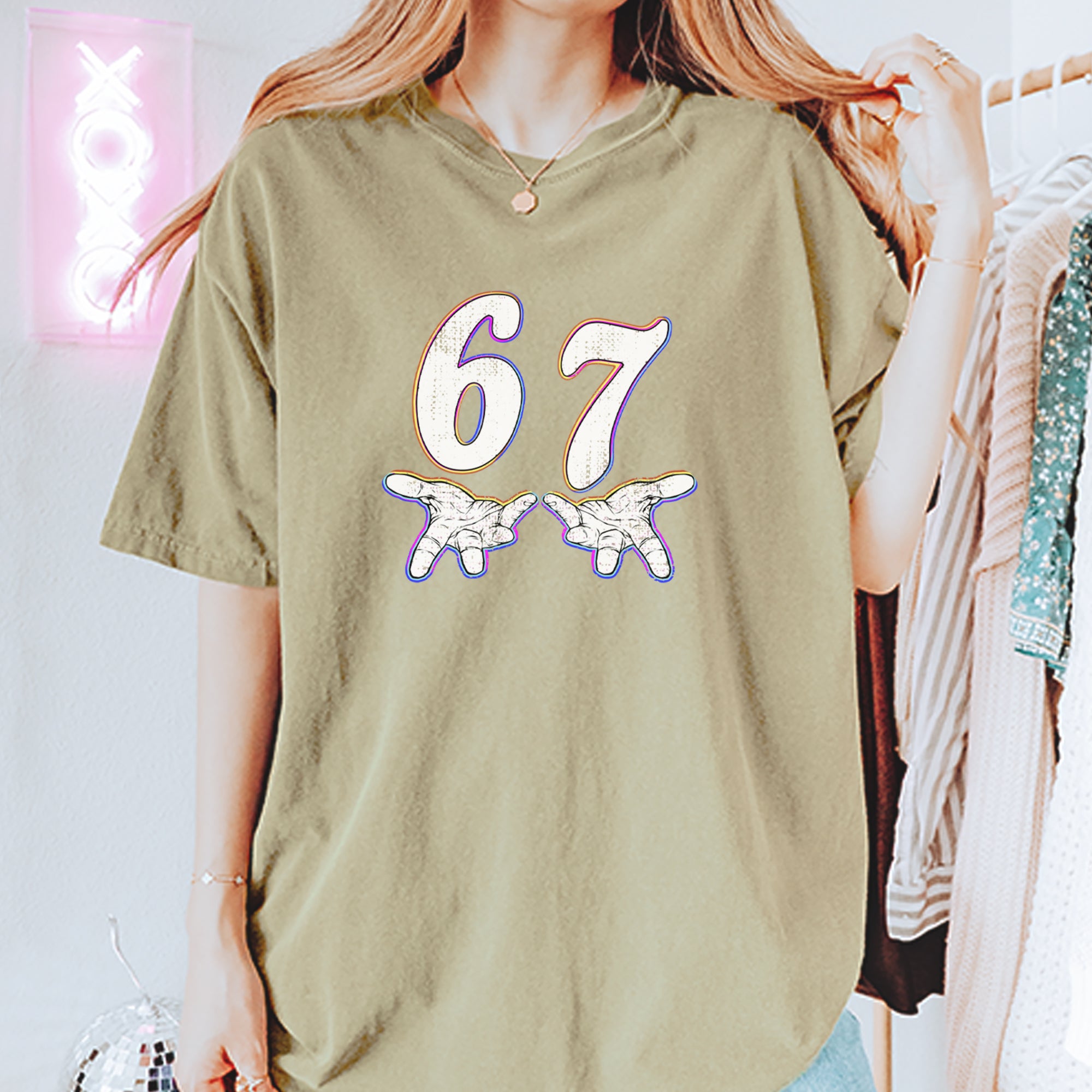 A bold nod to the viral "67, what's that?" meme that's all over TikTok and drill rap culture – if you know, you know. This eye-catching design brings street energy and internet humor to your fit.. Featuring the iconic 67 with animated hands, it's a must-have for fans of UK drill, meme collectors, and anyone fluent in internet slang. Perfect for casual wear or sharing an inside joke with the culture..
