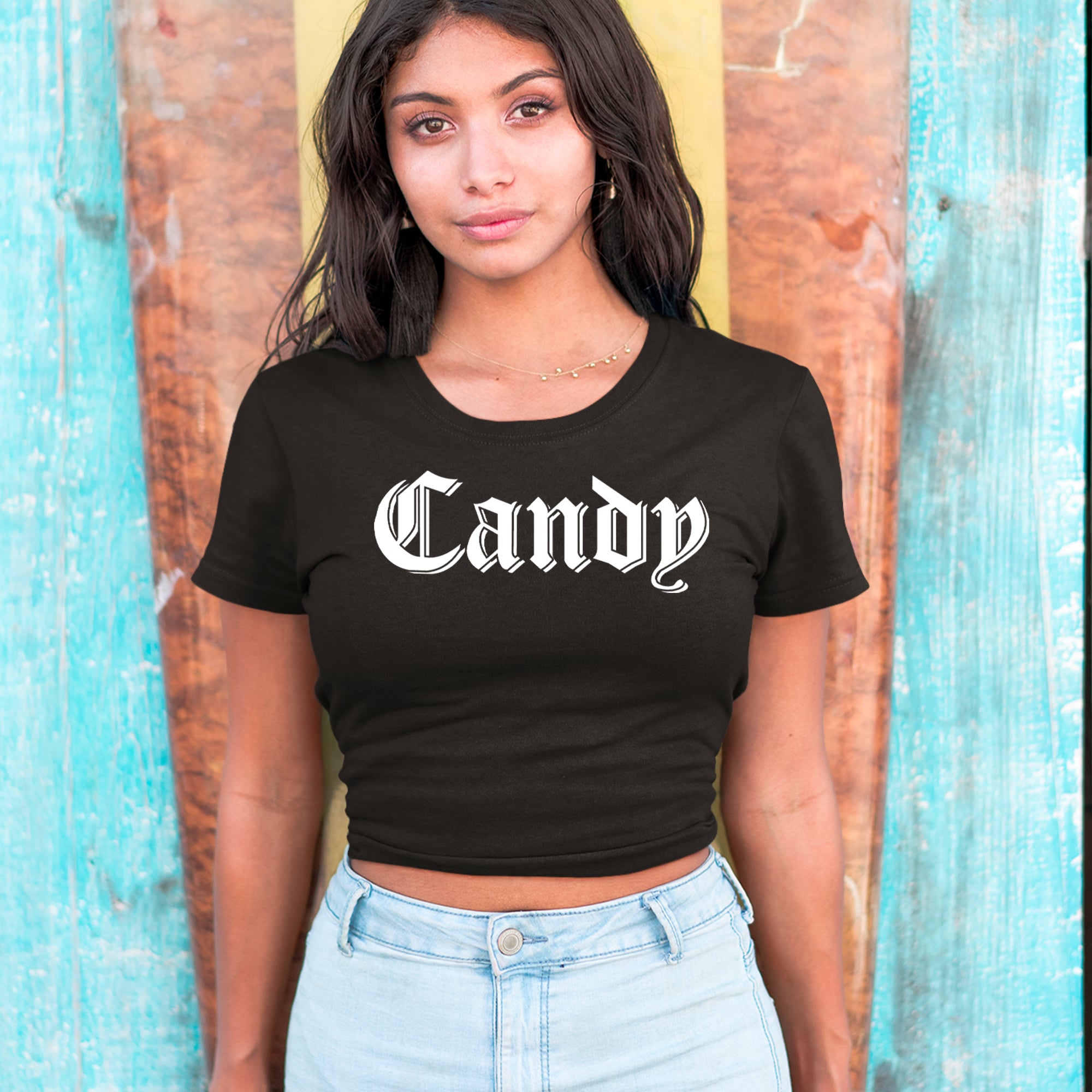 Sugar meets street with this bold "Candy" design in Old English font. It's giving sweet with a side of savage — perfect for turning heads and breaking hearts. Whether you're rocking Y2K vibes or just love the contrast of cute and edgy, this aesthetic hits different. Ideal for baddies, trendsetters, and anyone who knows they're a treat.