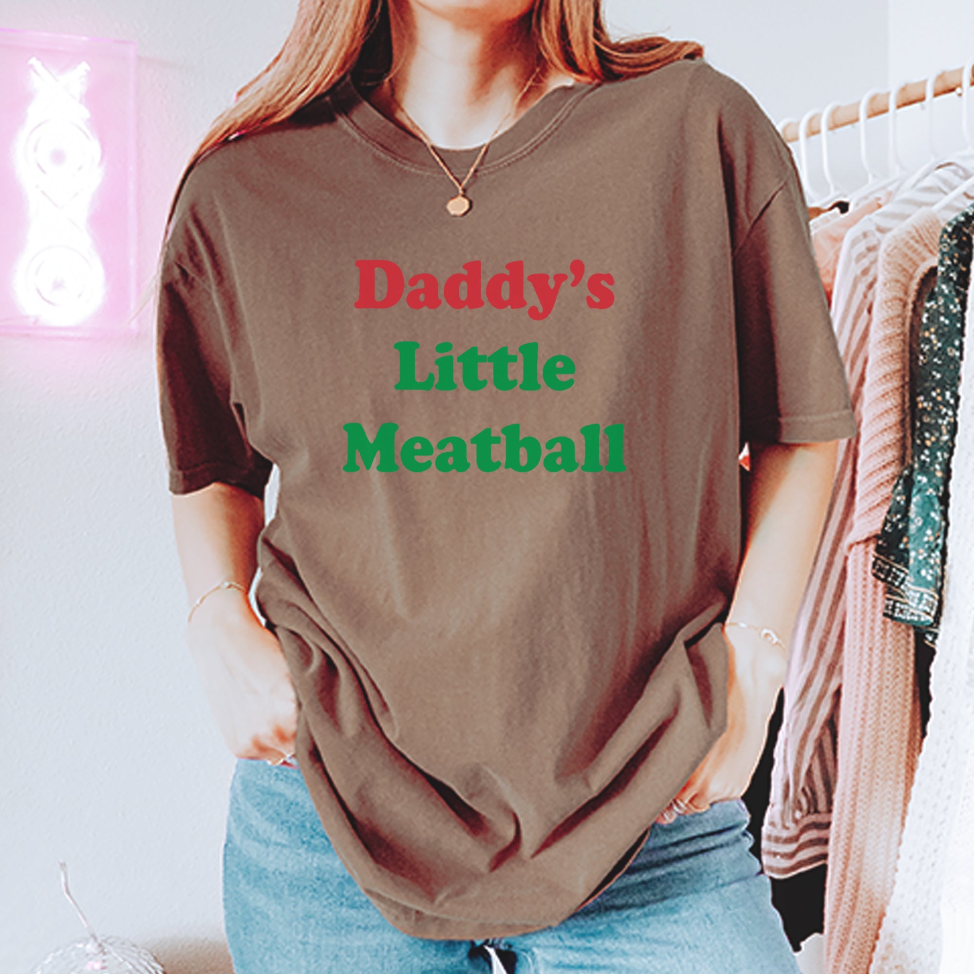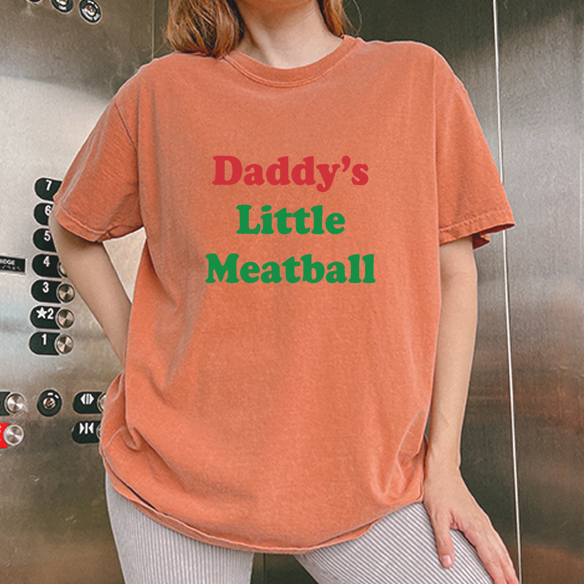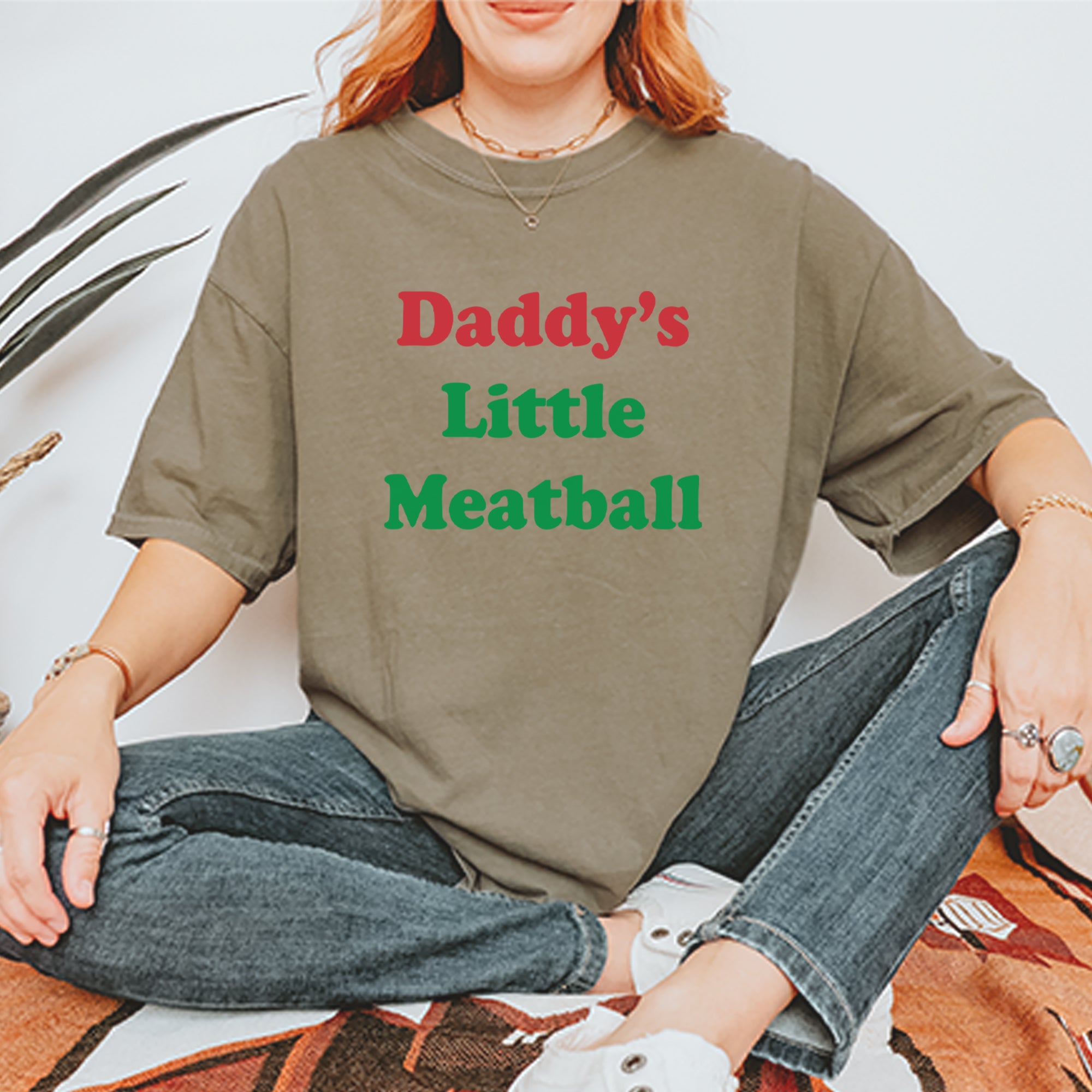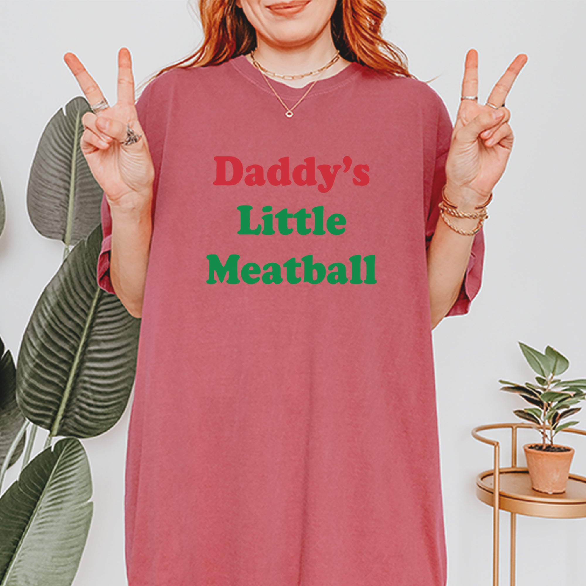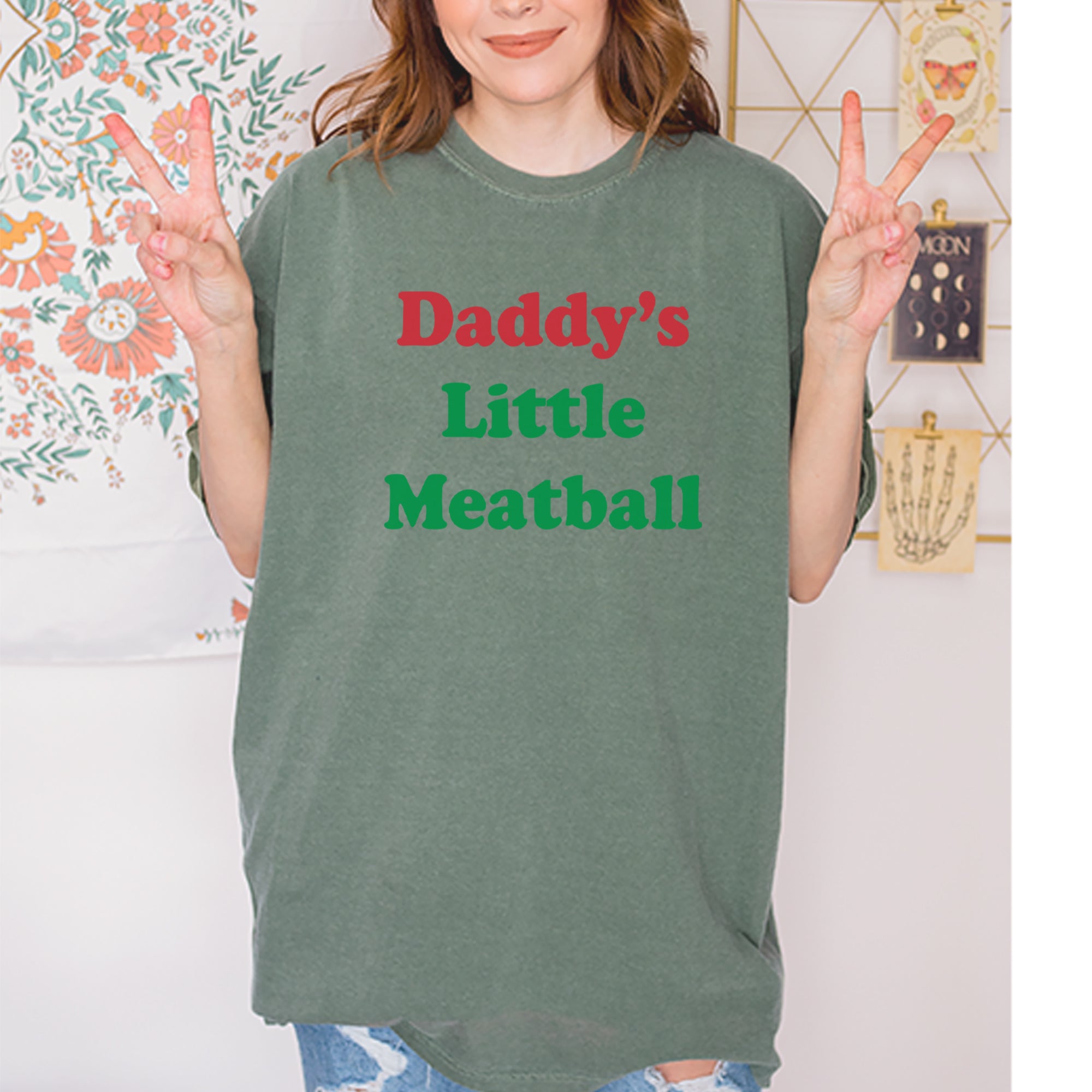 Straight from the villa to your wardrobe – this “Daddy’s Little Meatball” design blends humor and heat in classic Italian colors.. Bold red and green lettering gives this cheeky phrase an extra kick of spice – perfect for fans of pasta, pop culture, and playful flirtation..