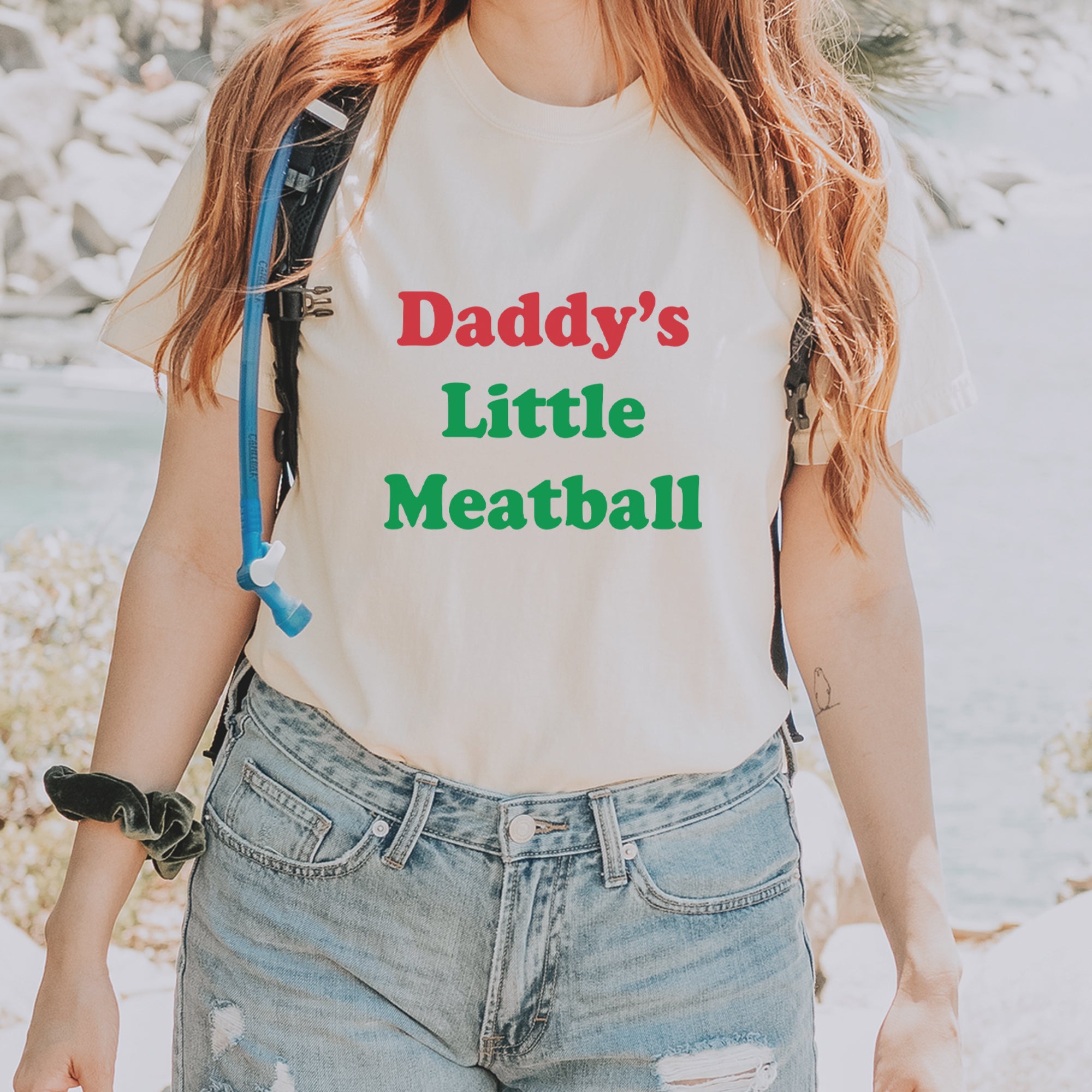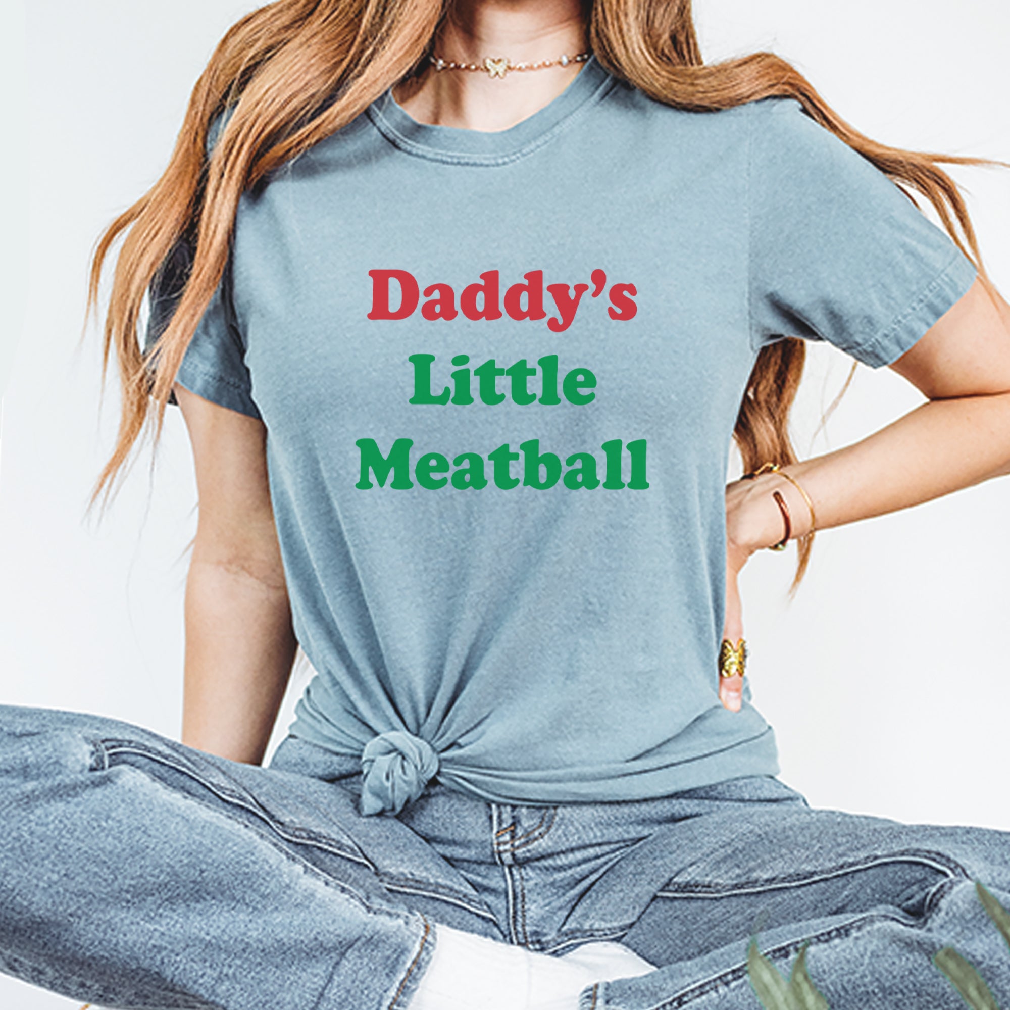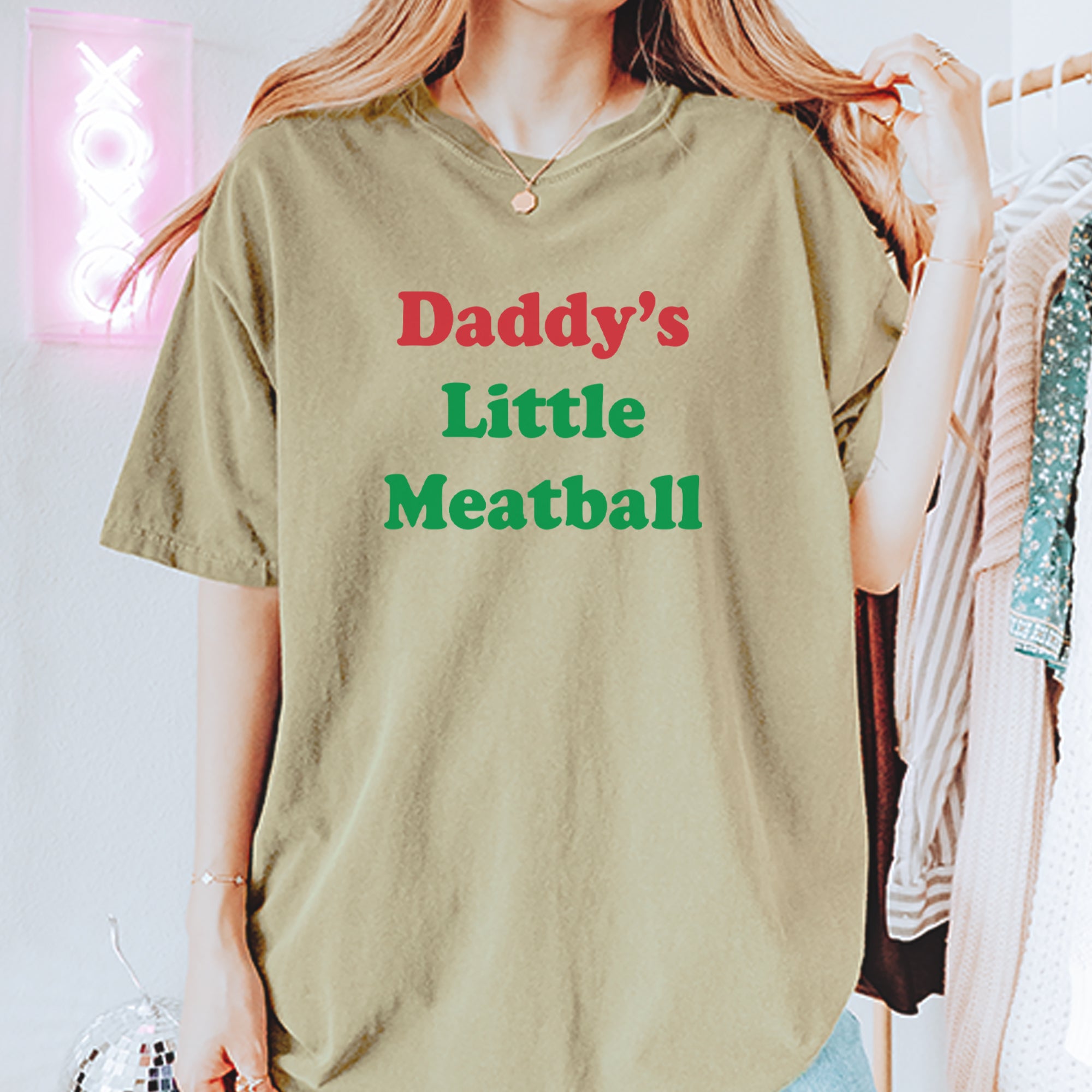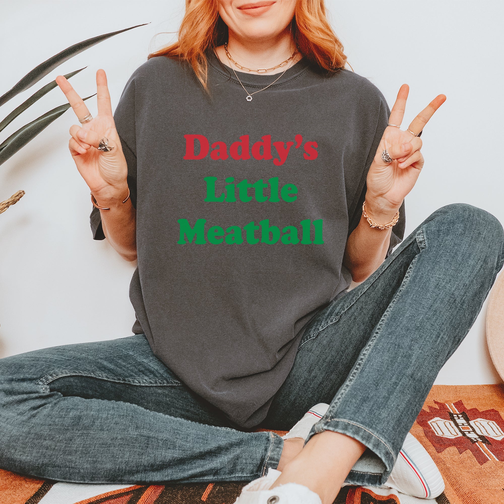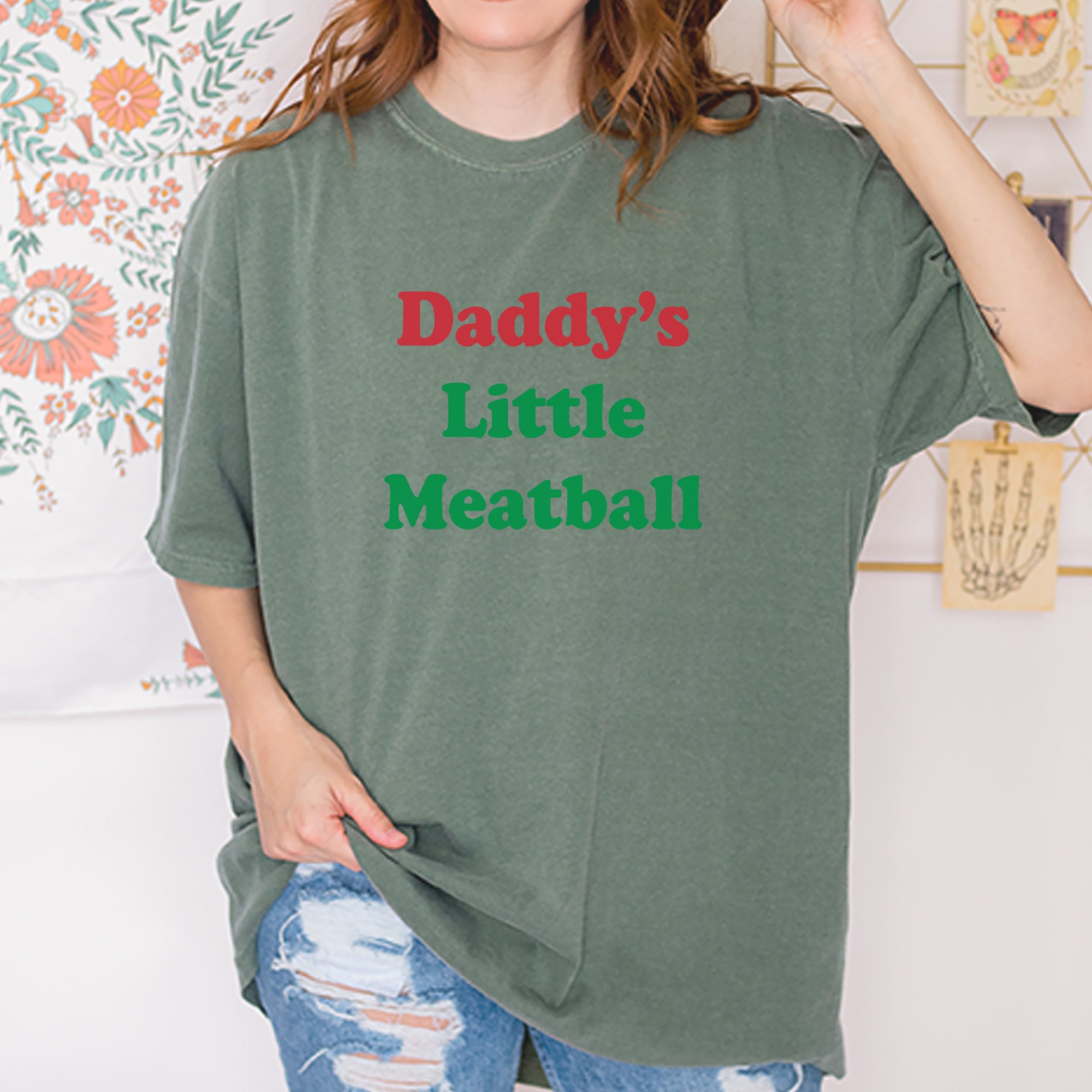 Straight from the villa to your wardrobe – this “Daddy’s Little Meatball” design blends humor and heat in classic Italian colors.. Bold red and green lettering gives this cheeky phrase an extra kick of spice – perfect for fans of pasta, pop culture, and playful flirtation..