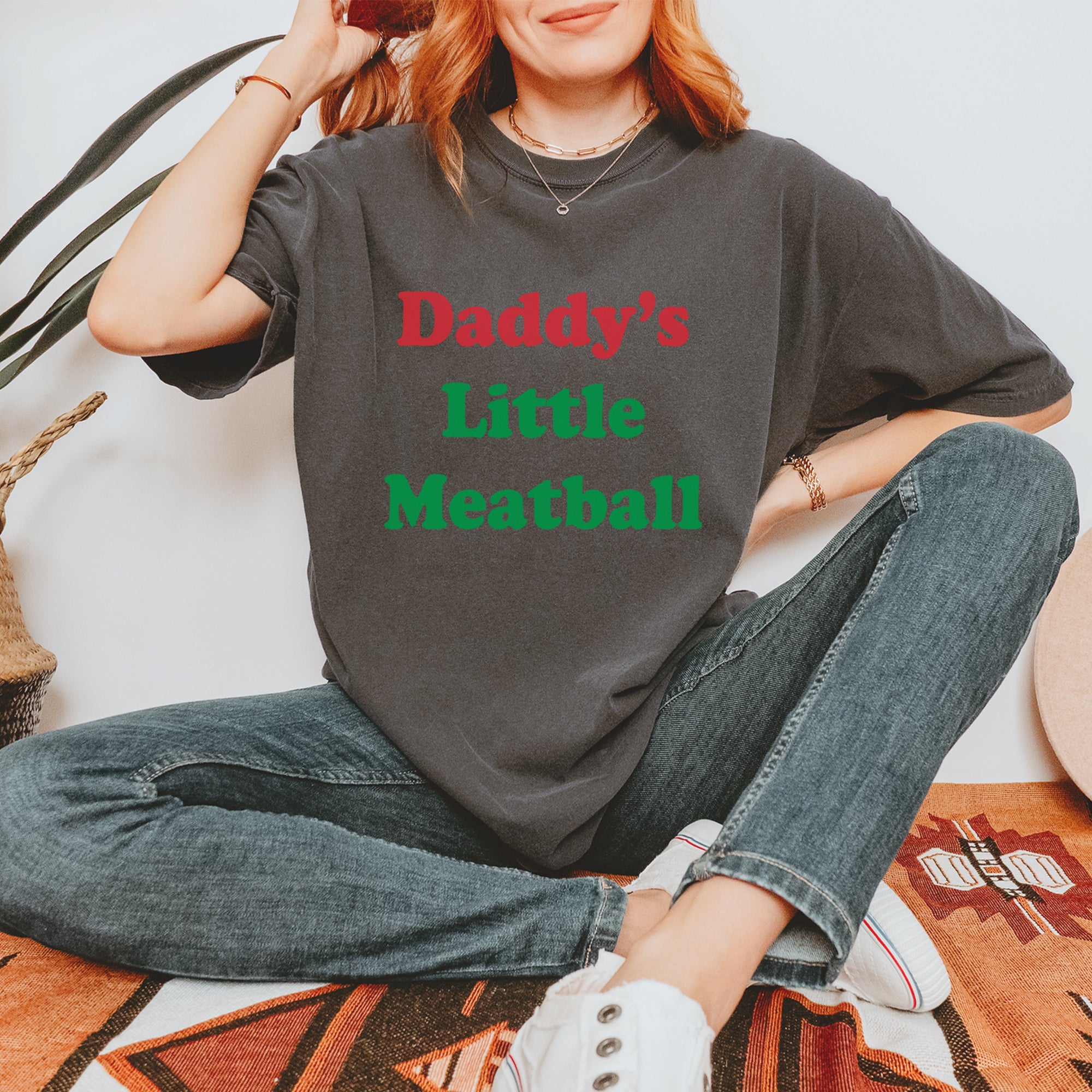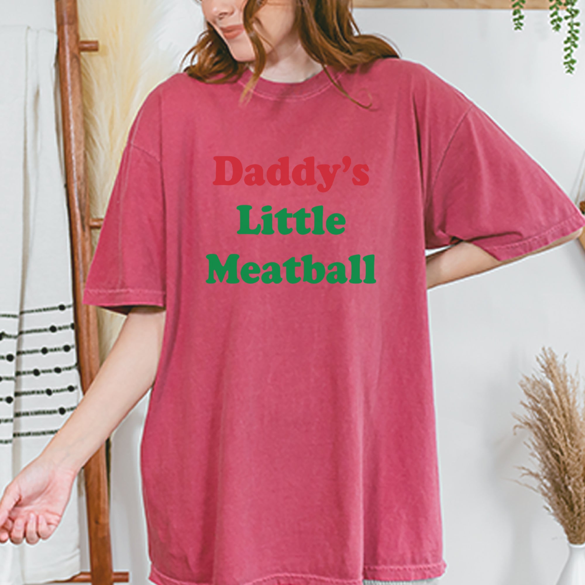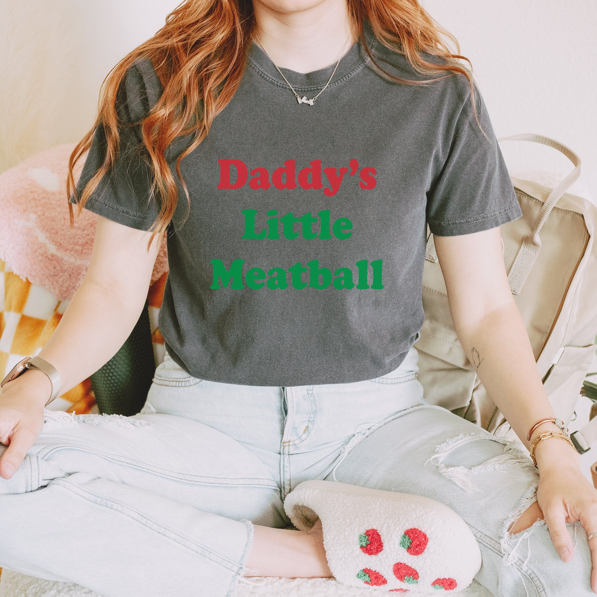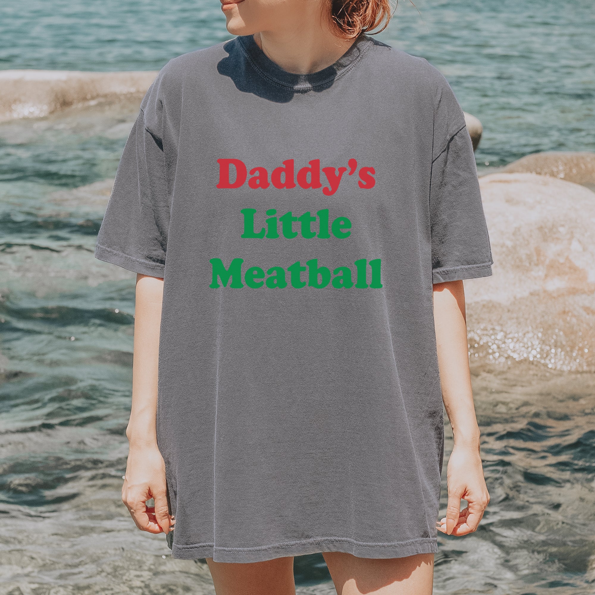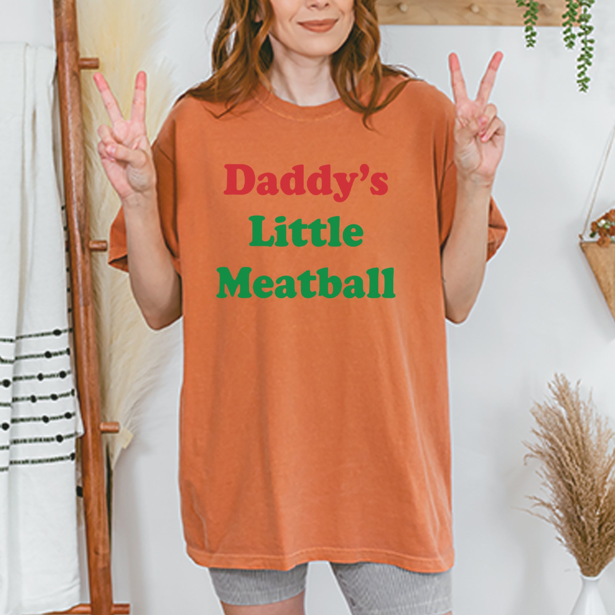 Straight from the villa to your wardrobe – this “Daddy’s Little Meatball” design blends humor and heat in classic Italian colors.. Bold red and green lettering gives this cheeky phrase an extra kick of spice – perfect for fans of pasta, pop culture, and playful flirtation..