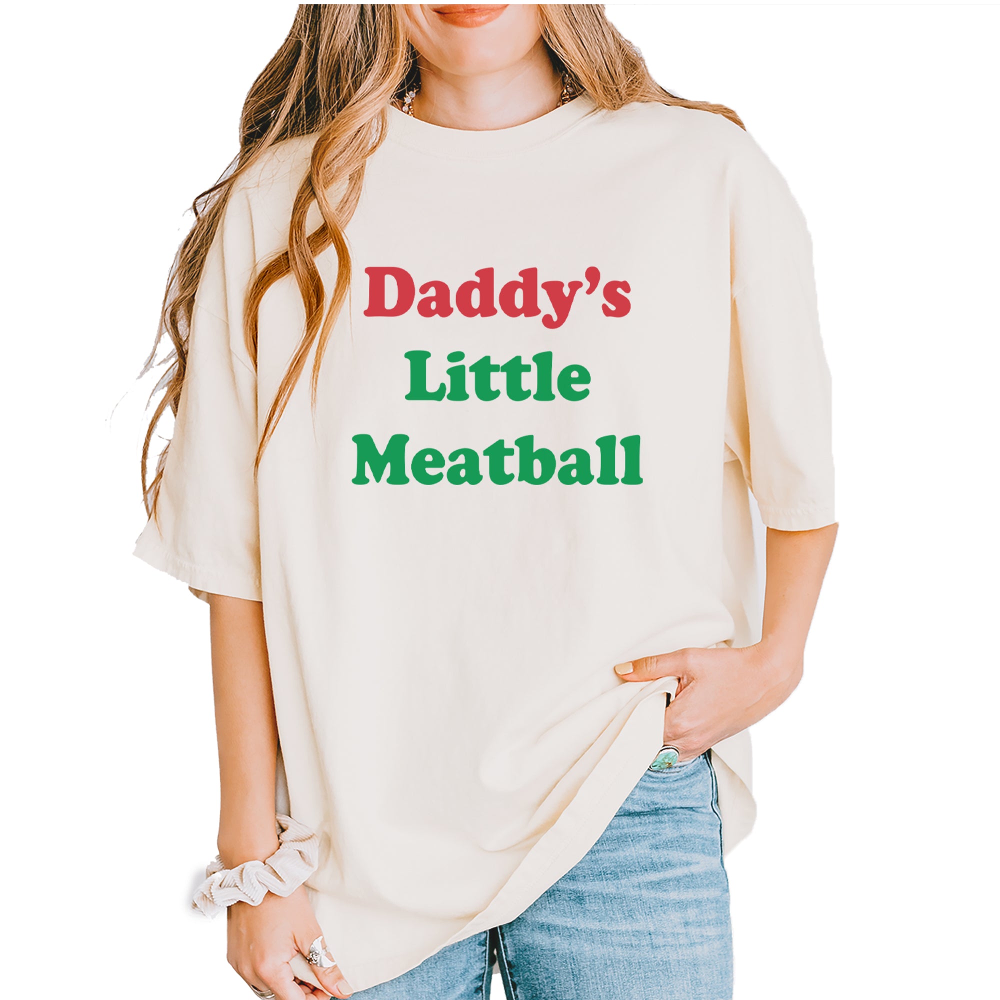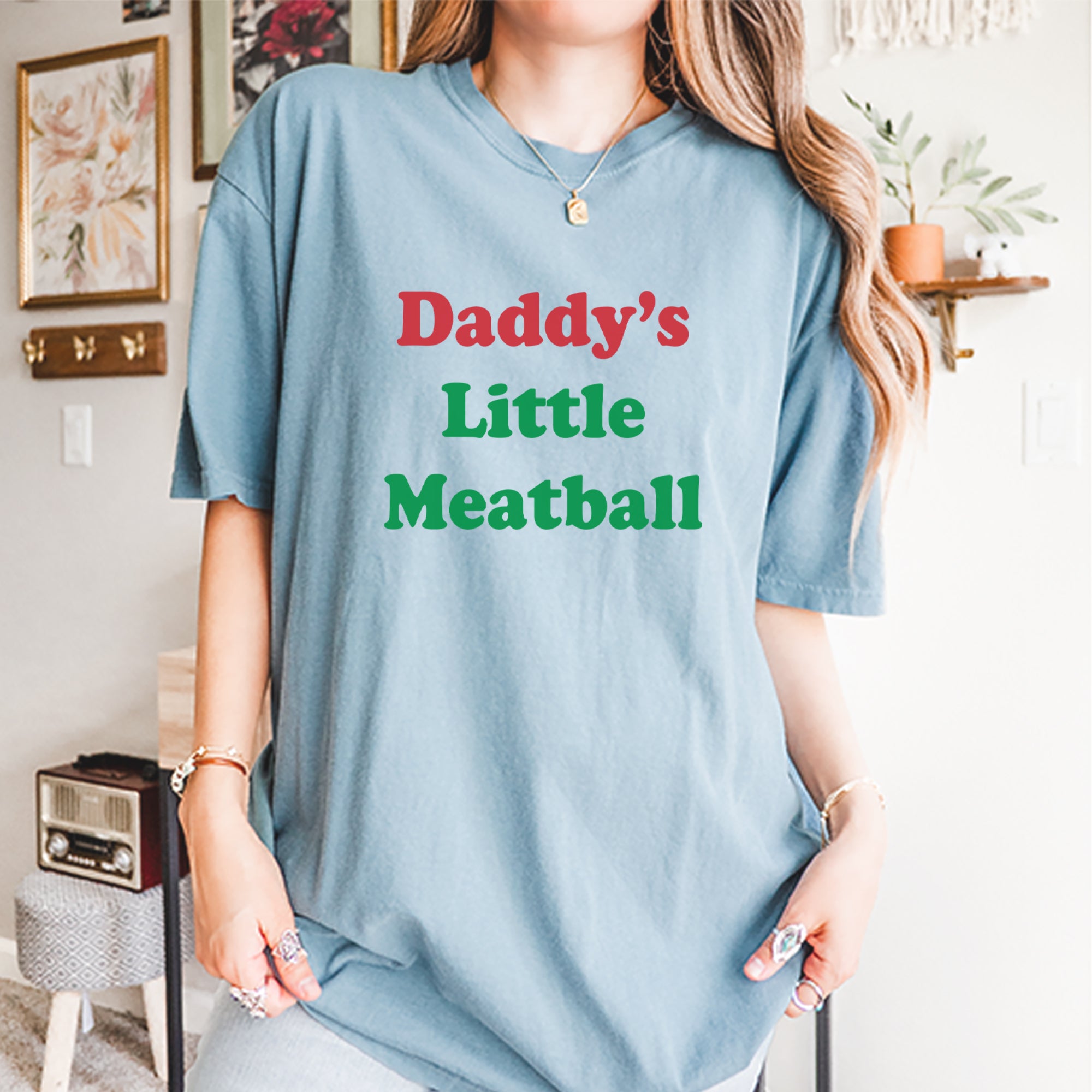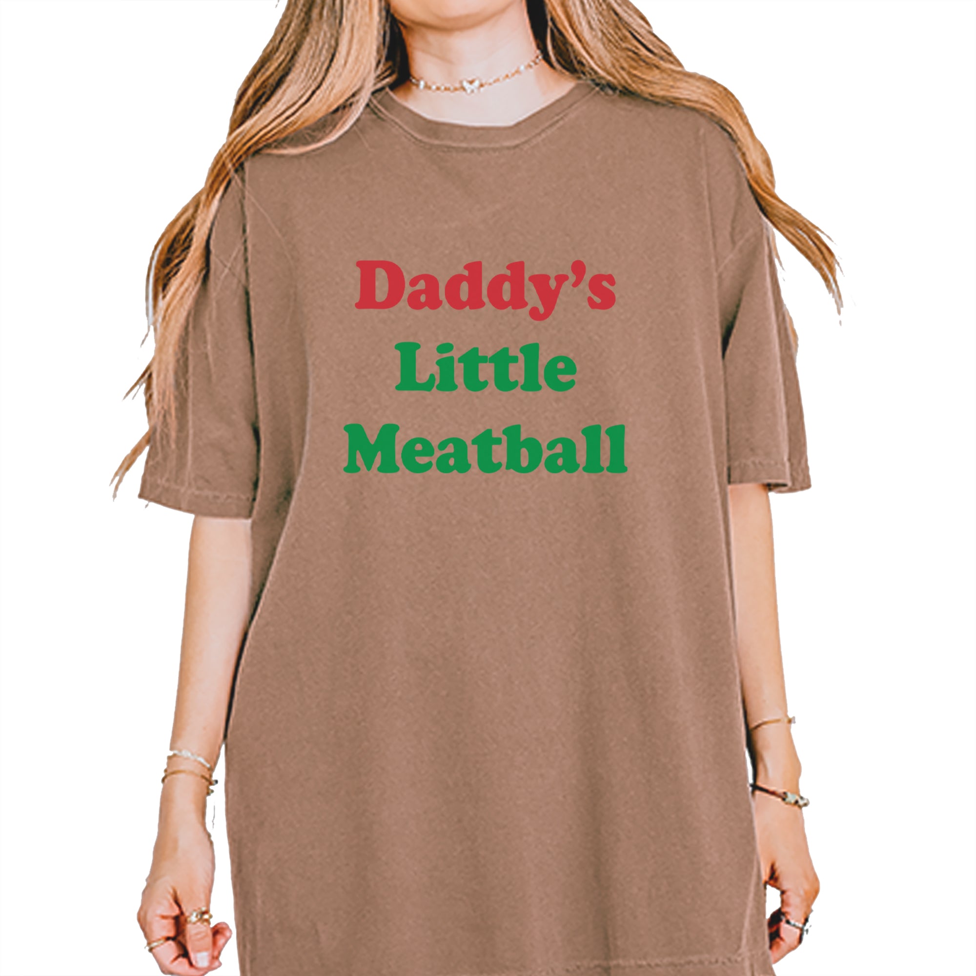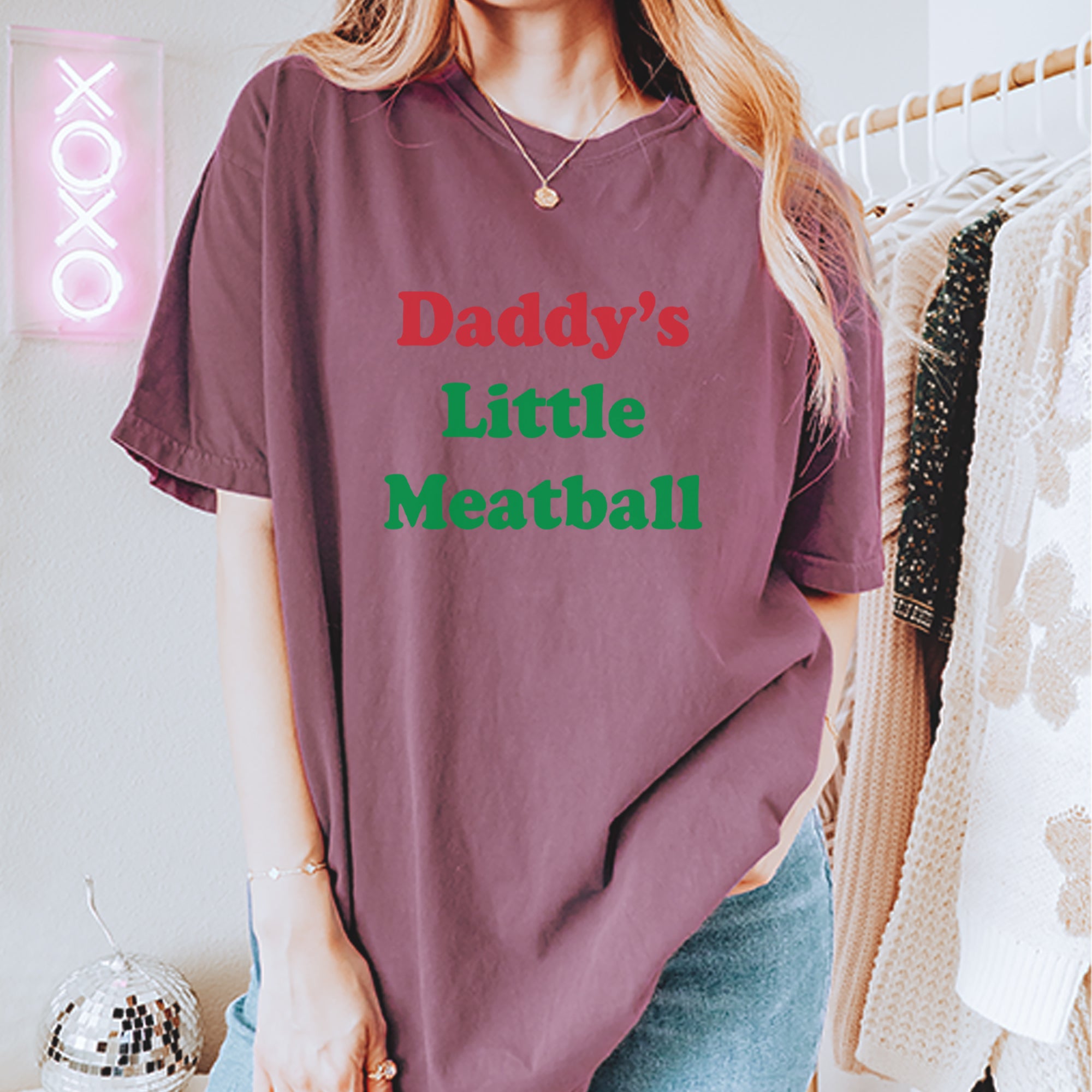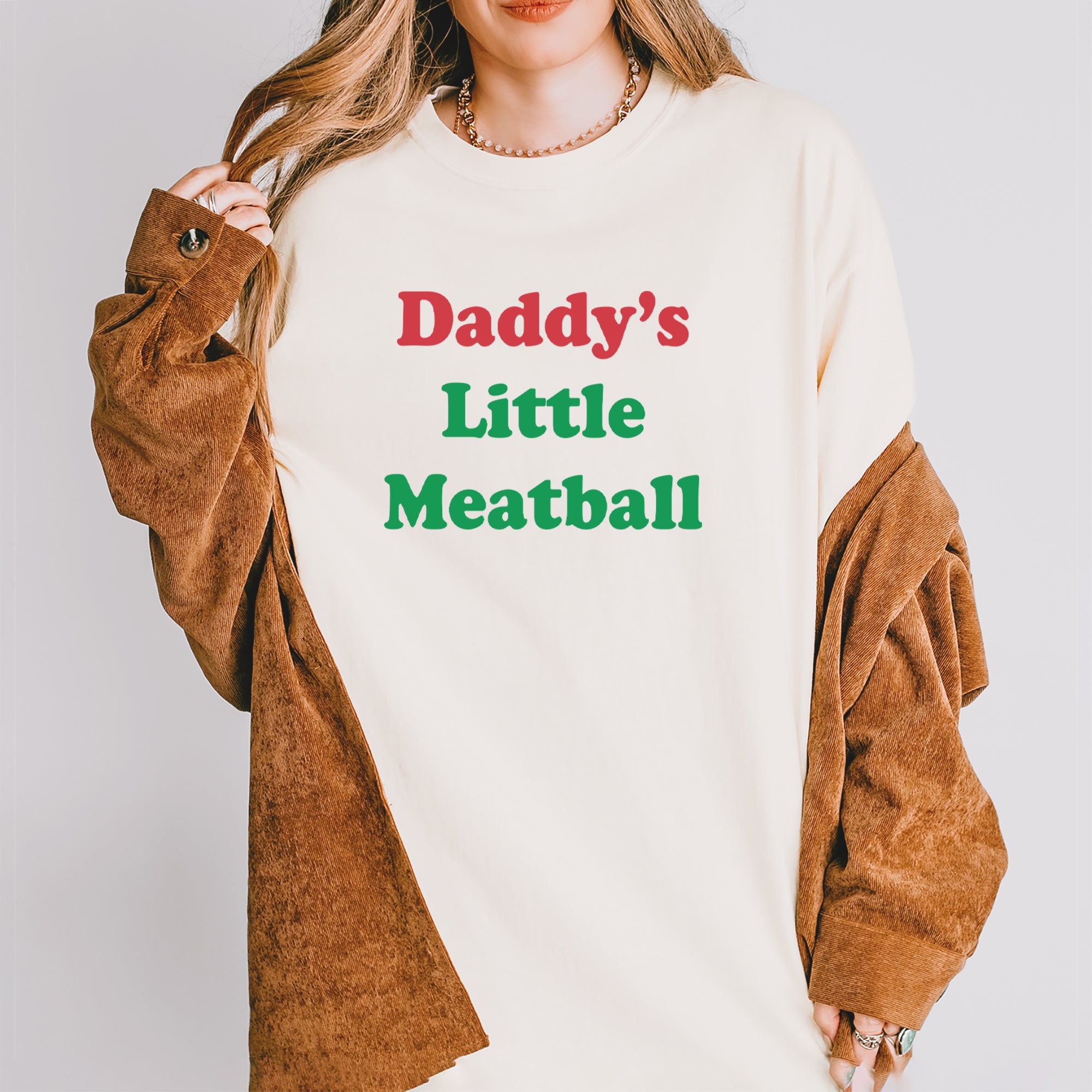 Straight from the villa to your wardrobe – this “Daddy’s Little Meatball” design blends humor and heat in classic Italian colors.. Bold red and green lettering gives this cheeky phrase an extra kick of spice – perfect for fans of pasta, pop culture, and playful flirtation..