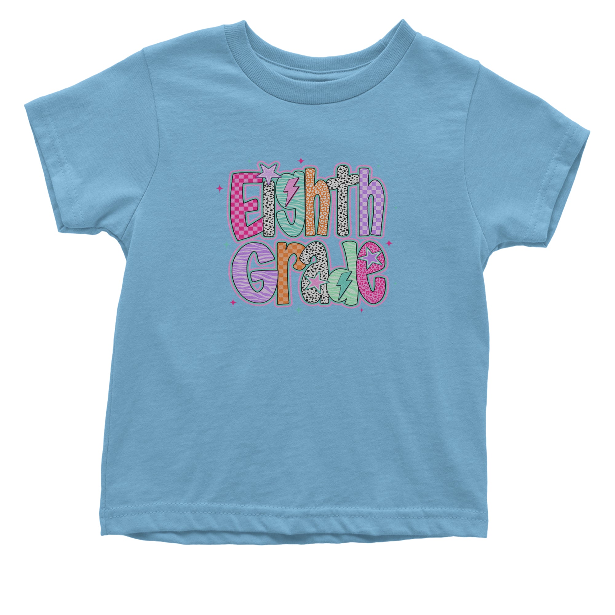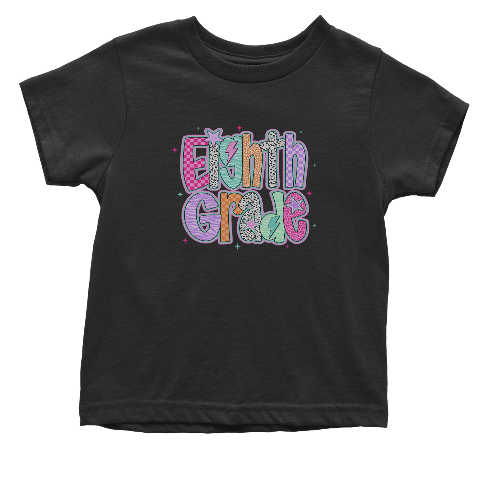 Let your eighth grader stand out in a design that blends playful chaos and confident color. Trendy Y2K-inspired aesthetic meets kidcore fun—this colorful graphic makes back-to-school feel like a party.