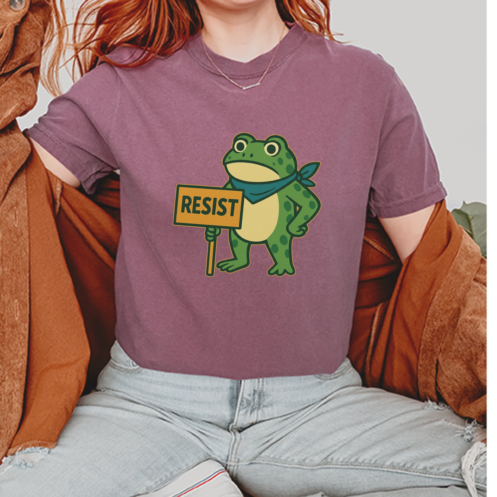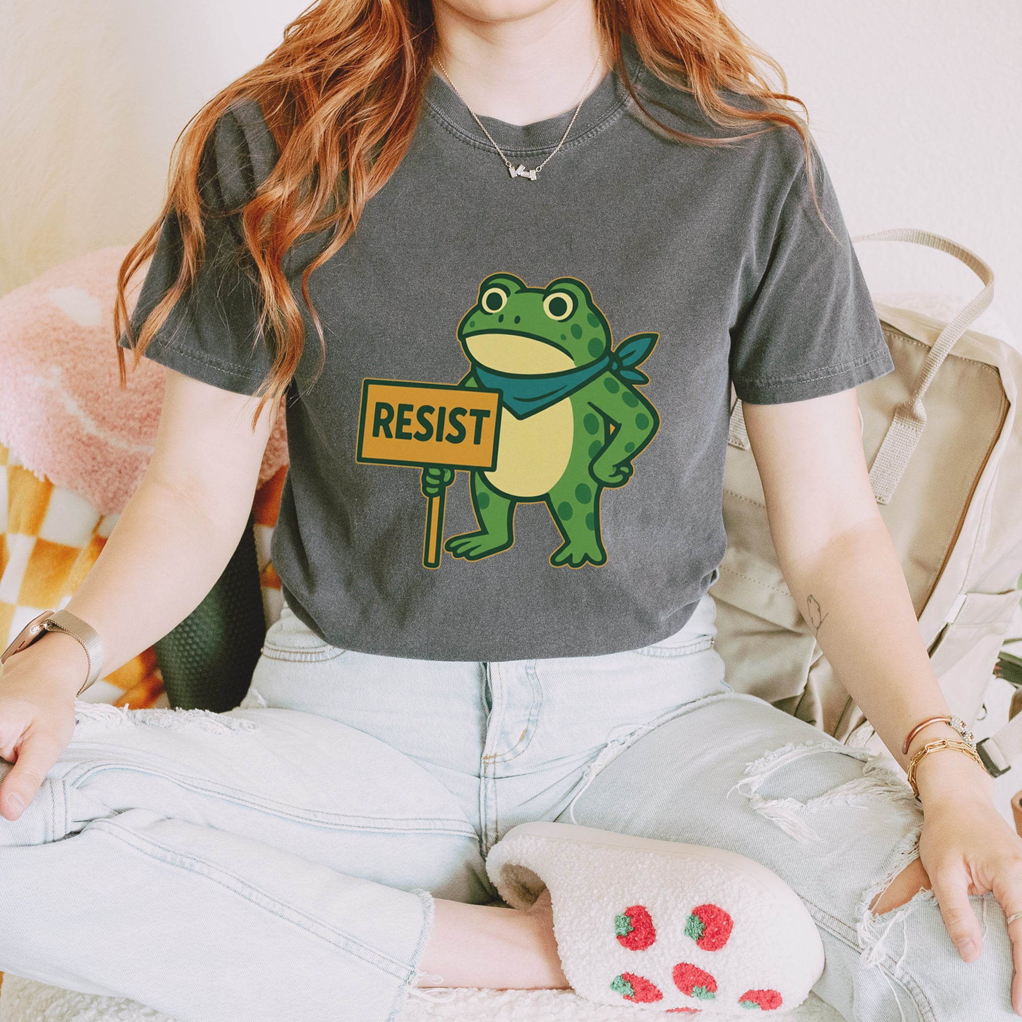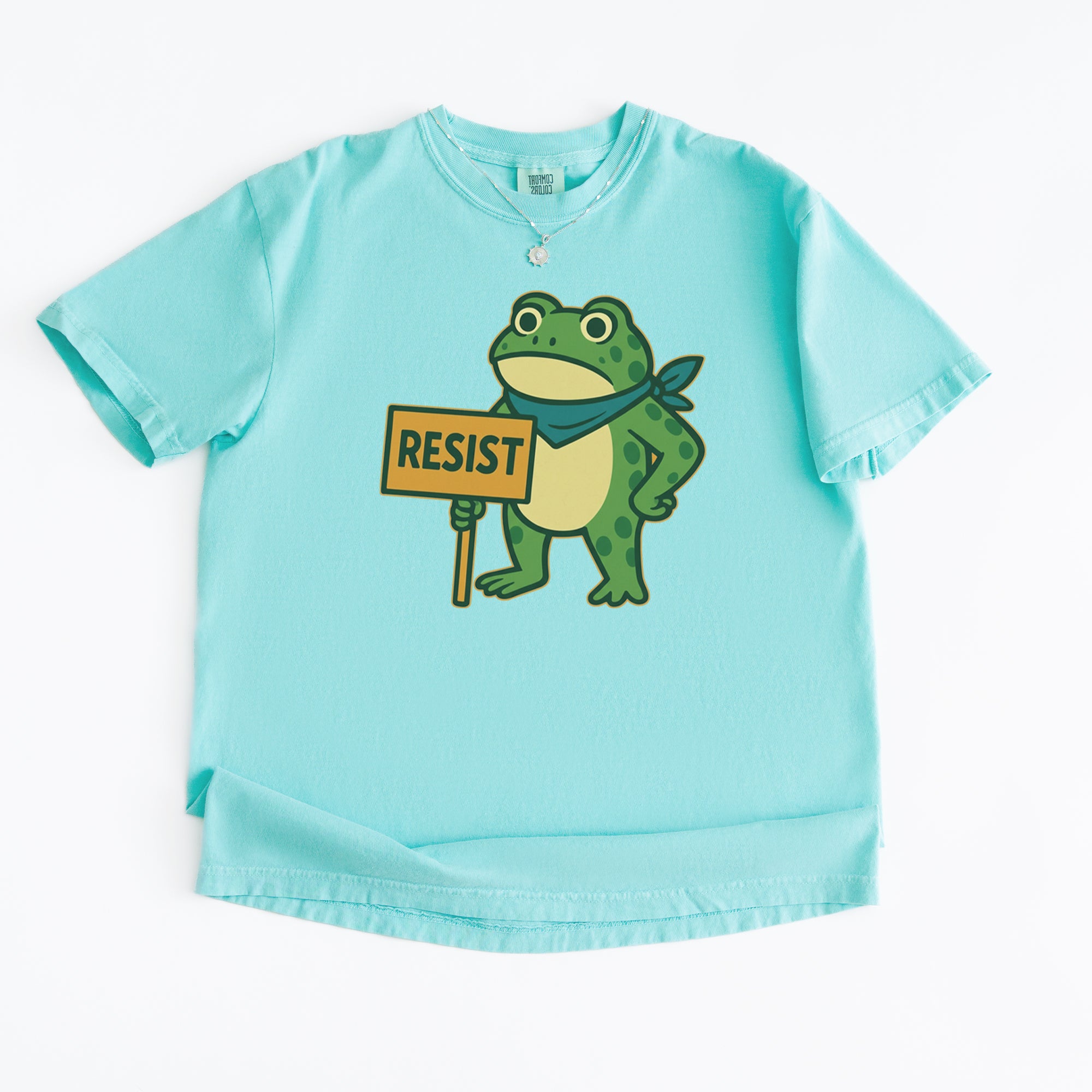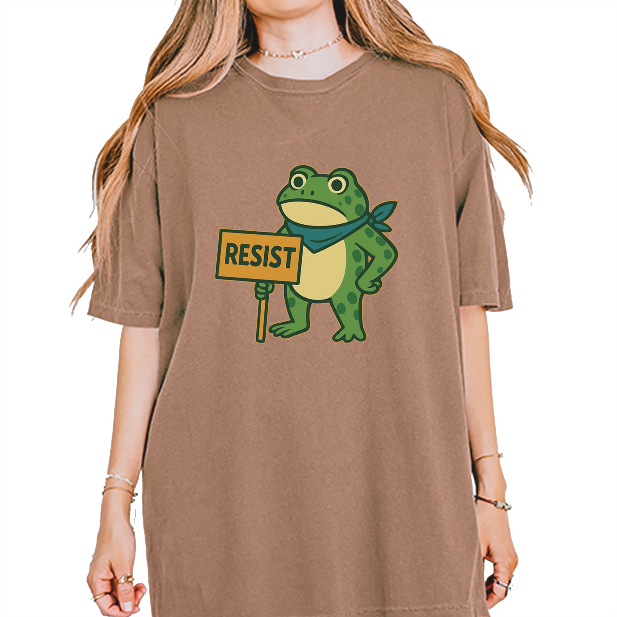 Cute but committed, this protest frog stands firm with sign in hand, bringing big energy from the streets of Portland to your wardrobe – a viral meme turned symbol of peaceful defiance.. Whether you're marching IRL or just resisting in spirit, this bold cartoon design mixes protest art with meme culture for a look that's both playful and powerful. Ribbiting Resistance..