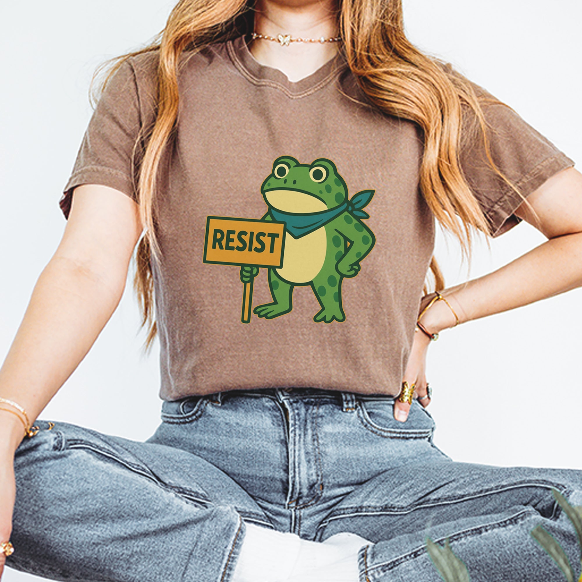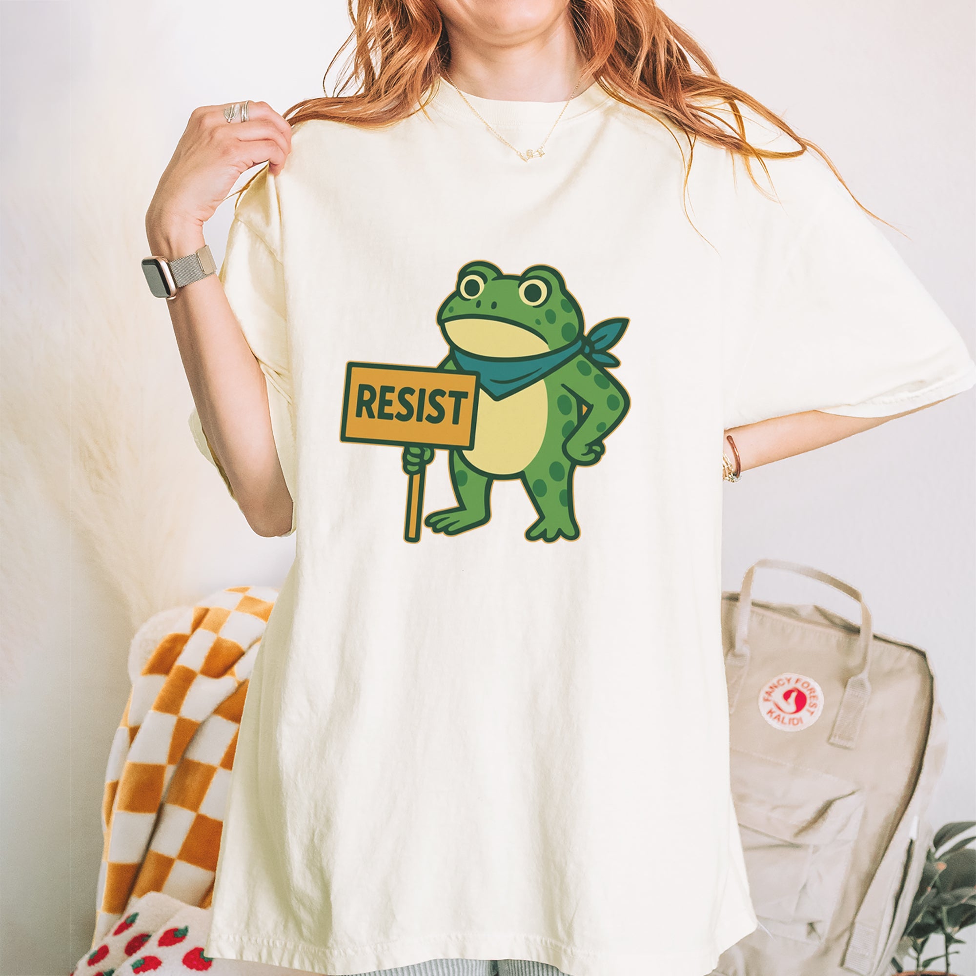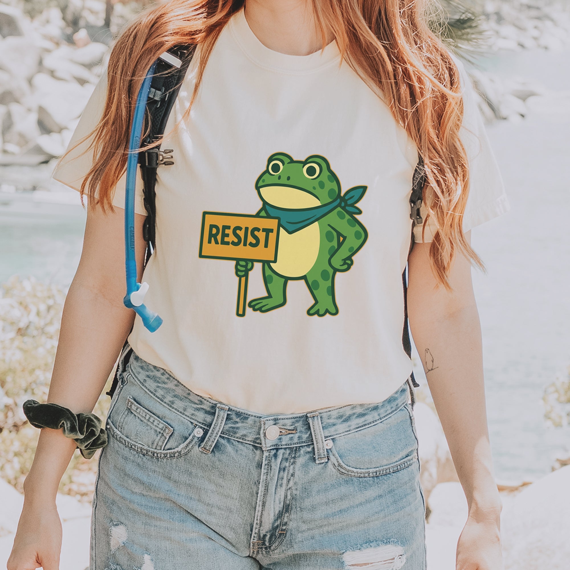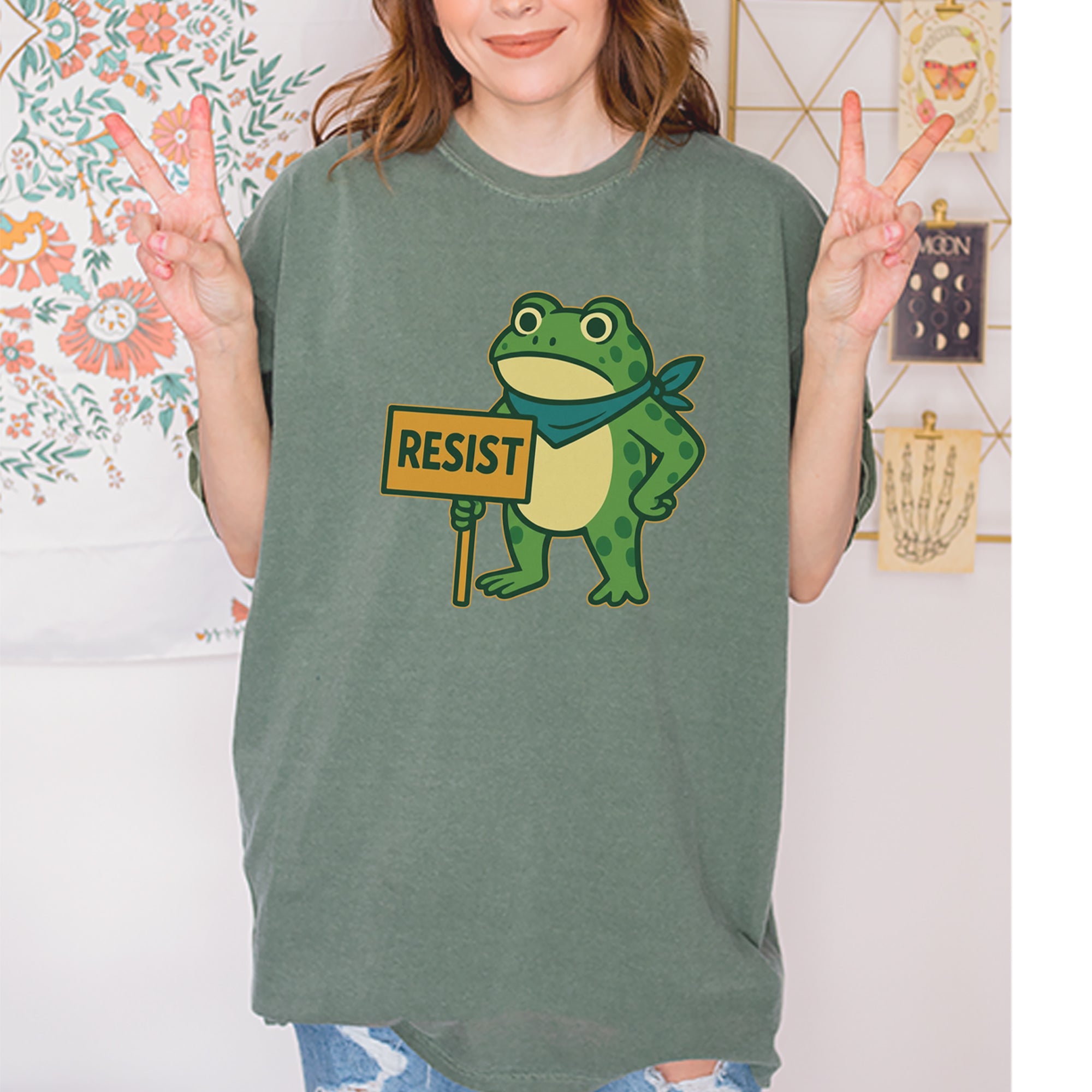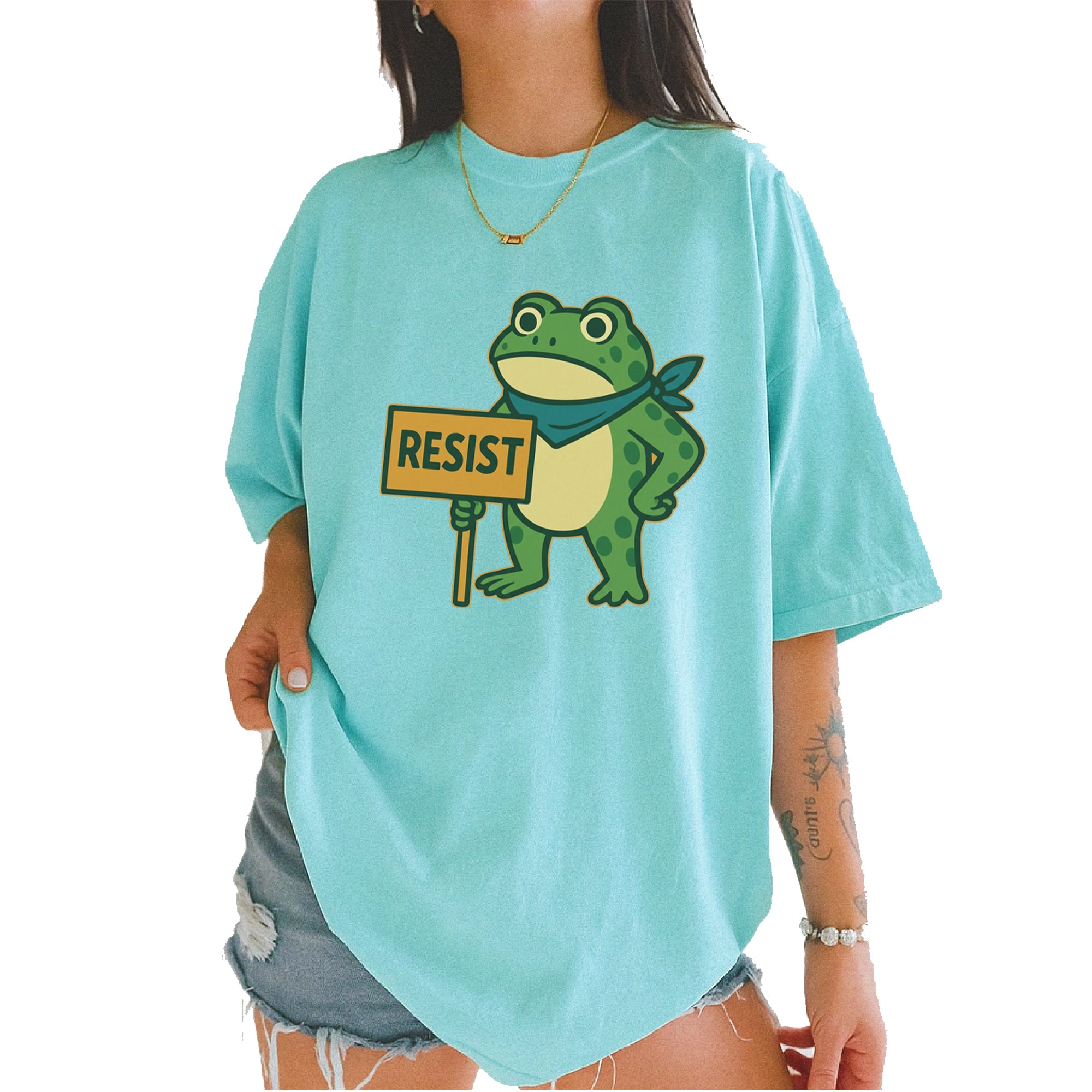 Cute but committed, this protest frog stands firm with sign in hand, bringing big energy from the streets of Portland to your wardrobe – a viral meme turned symbol of peaceful defiance.. Whether you're marching IRL or just resisting in spirit, this bold cartoon design mixes protest art with meme culture for a look that's both playful and powerful. Ribbiting Resistance..