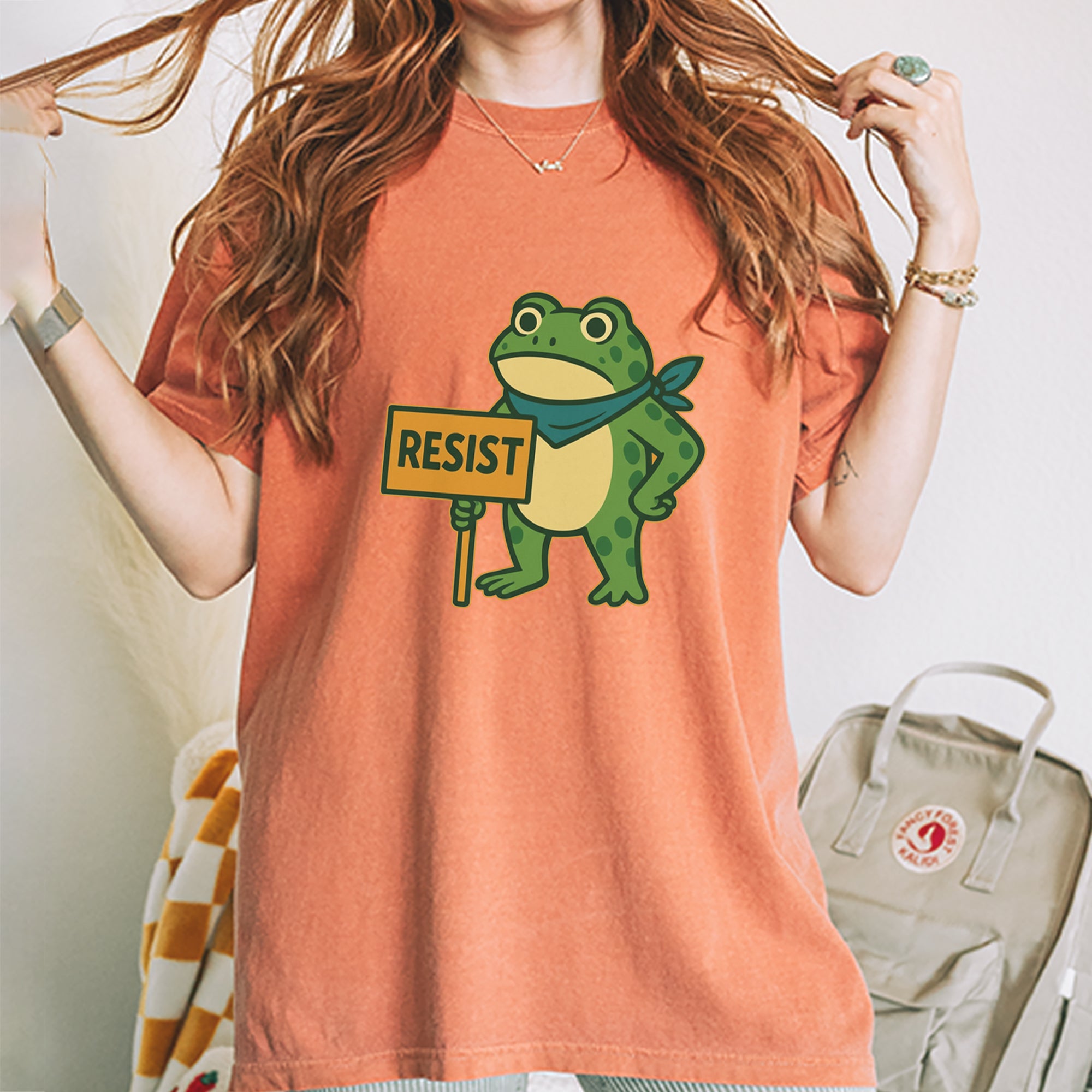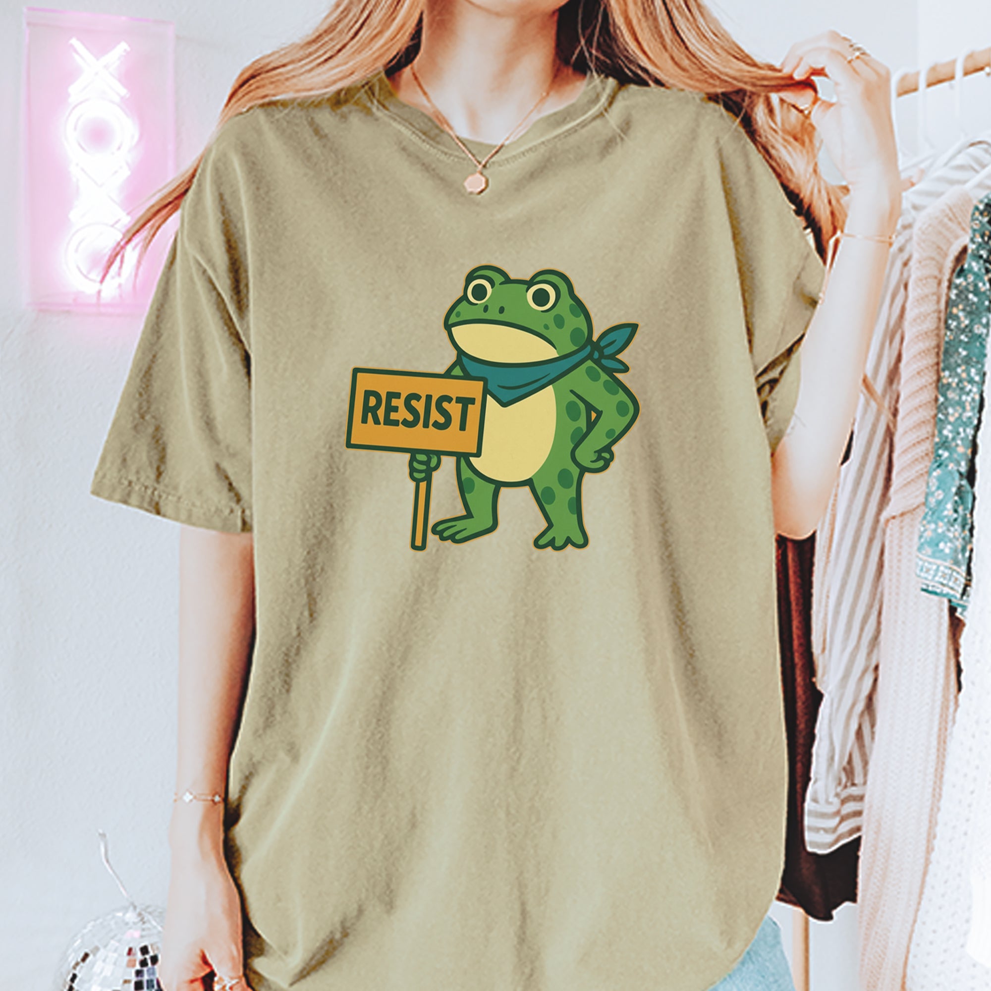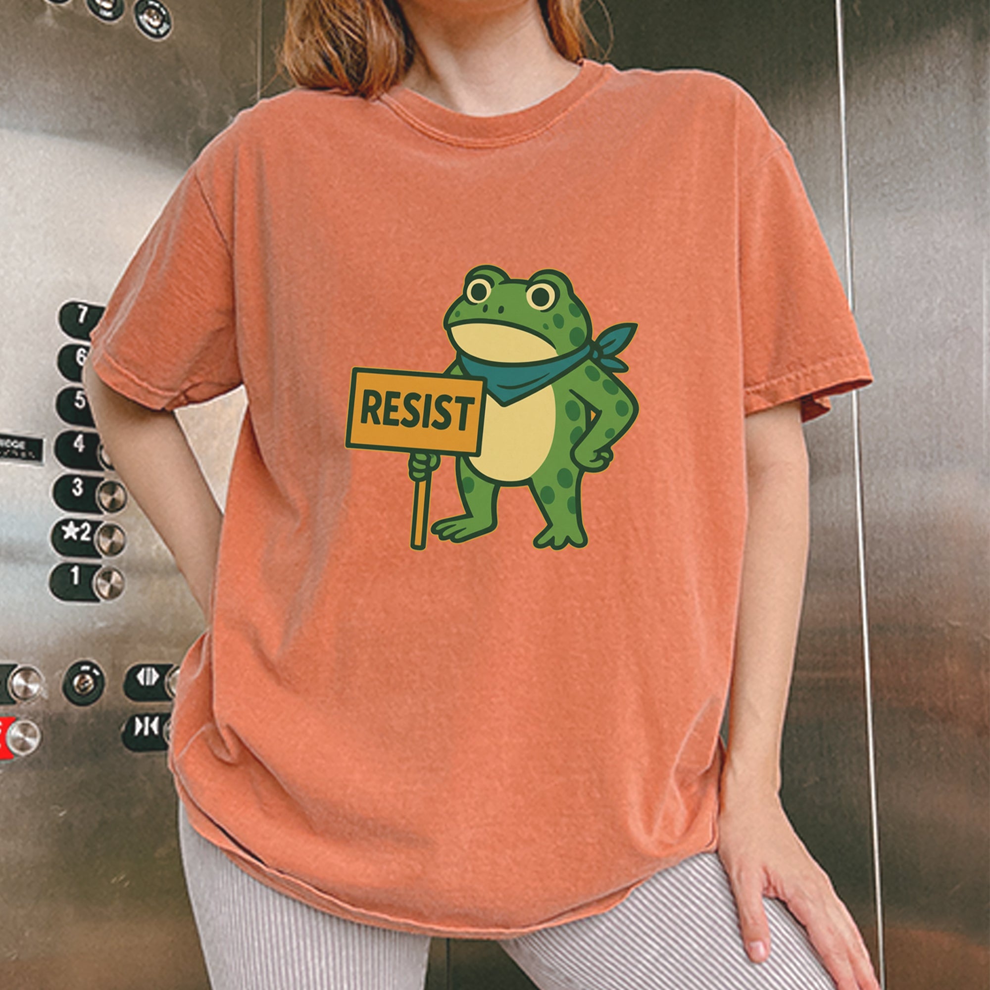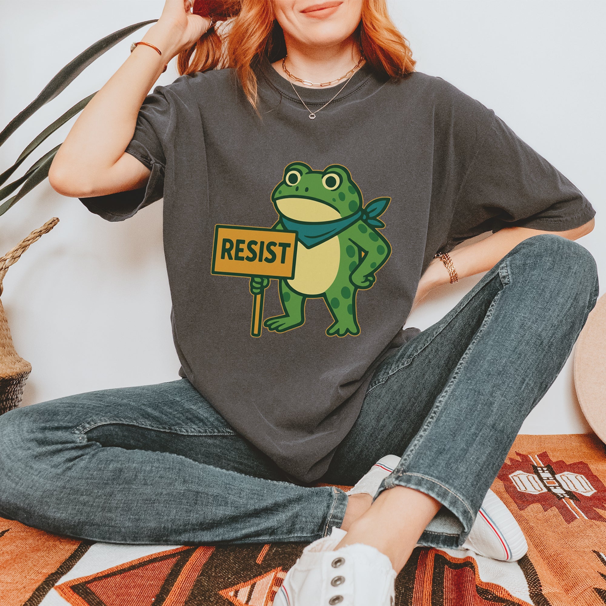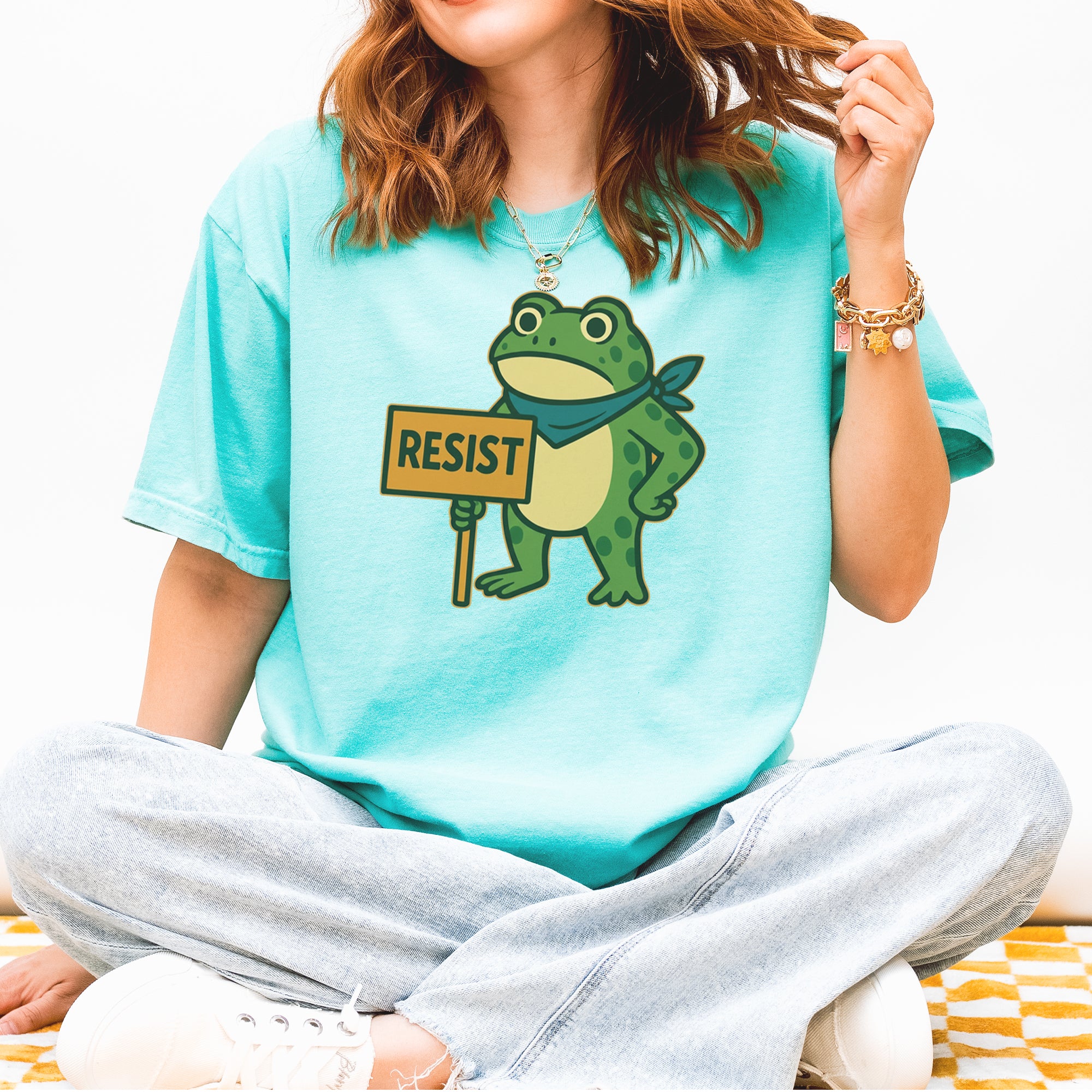 Cute but committed, this protest frog stands firm with sign in hand, bringing big energy from the streets of Portland to your wardrobe – a viral meme turned symbol of peaceful defiance.. Whether you're marching IRL or just resisting in spirit, this bold cartoon design mixes protest art with meme culture for a look that's both playful and powerful. Ribbiting Resistance..