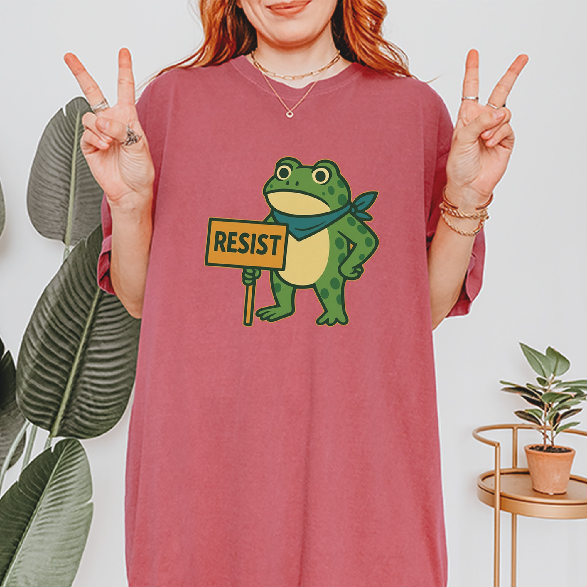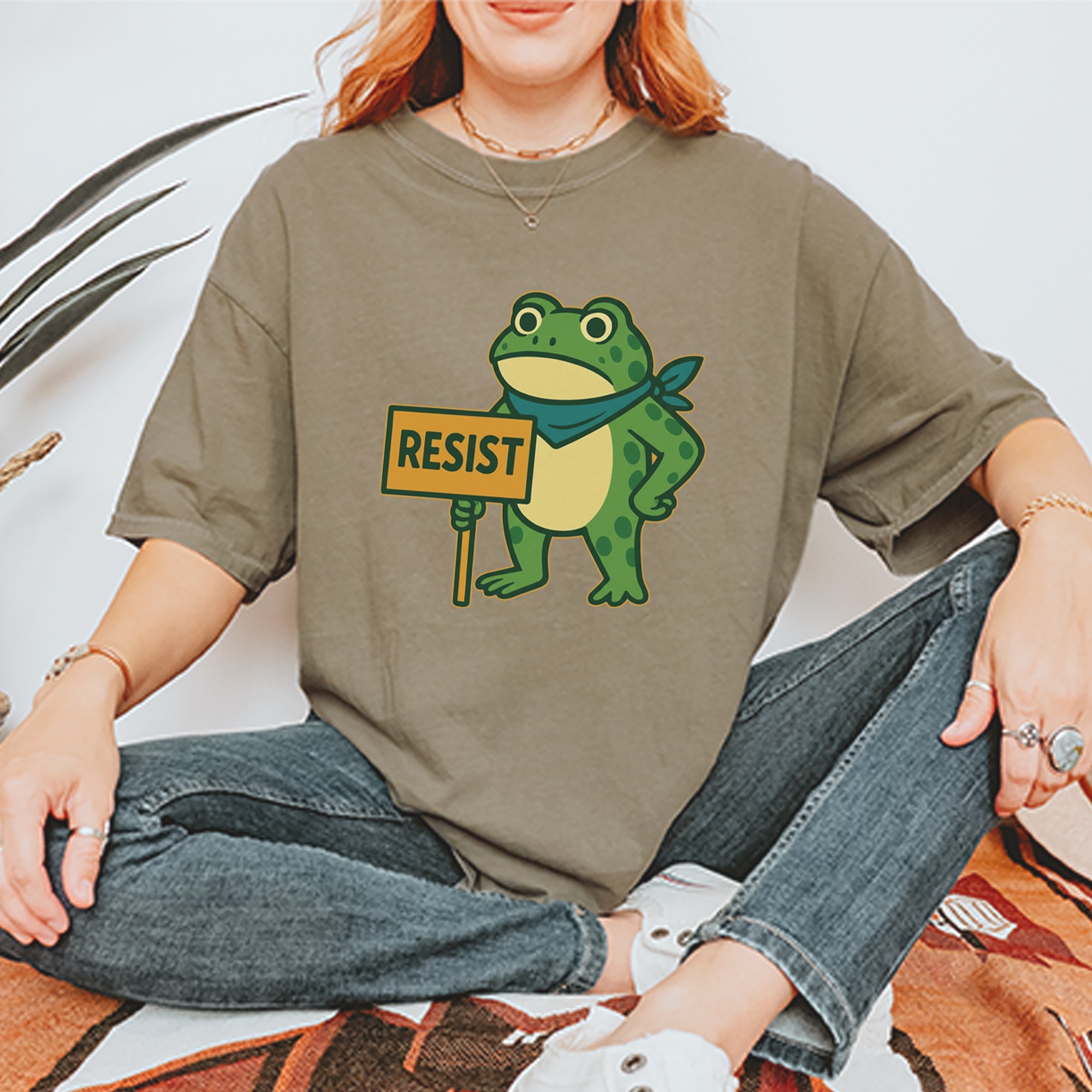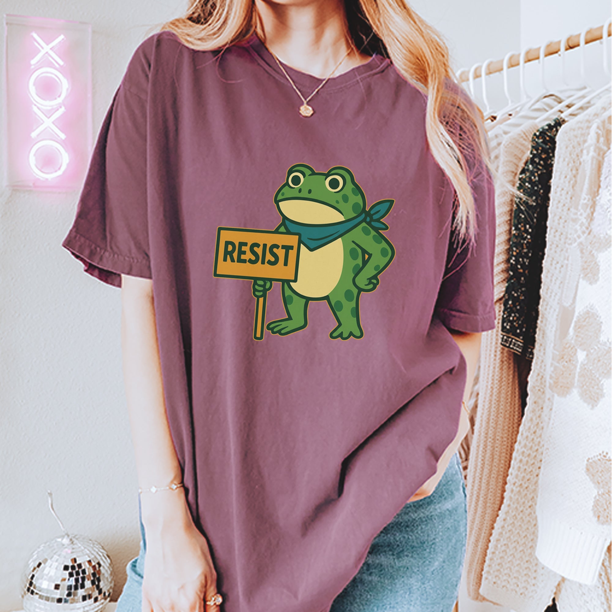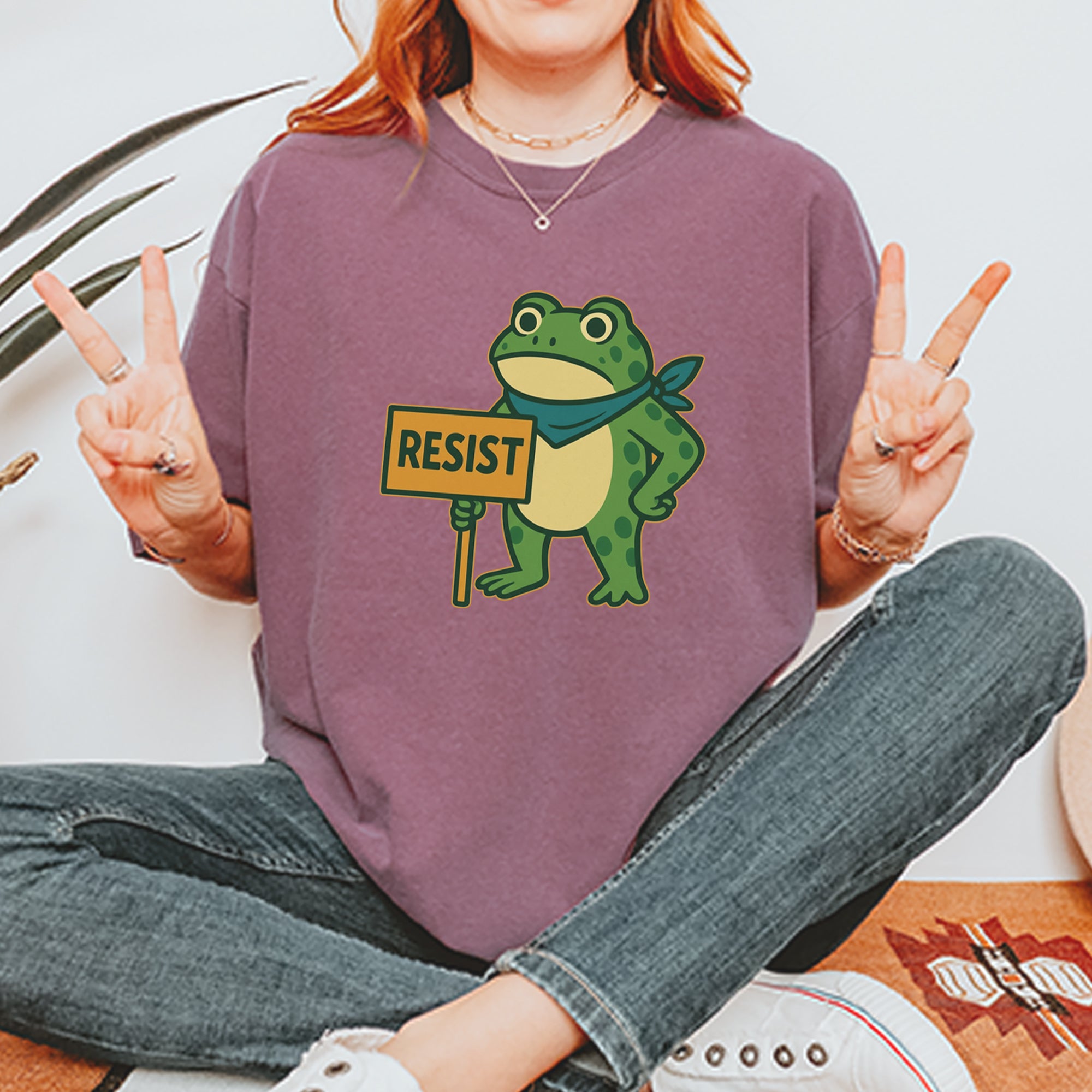 Cute but committed, this protest frog stands firm with sign in hand, bringing big energy from the streets of Portland to your wardrobe – a viral meme turned symbol of peaceful defiance.. Whether you're marching IRL or just resisting in spirit, this bold cartoon design mixes protest art with meme culture for a look that's both playful and powerful. Ribbiting Resistance..