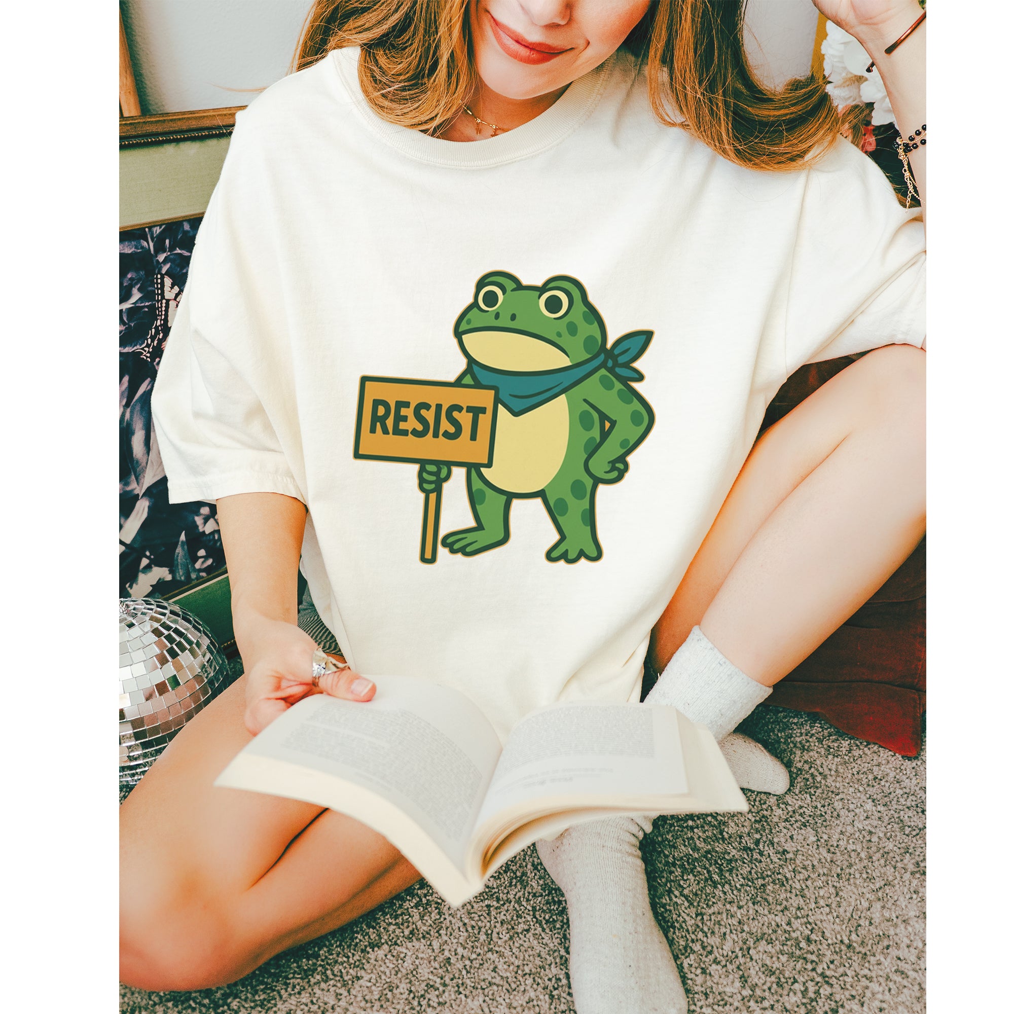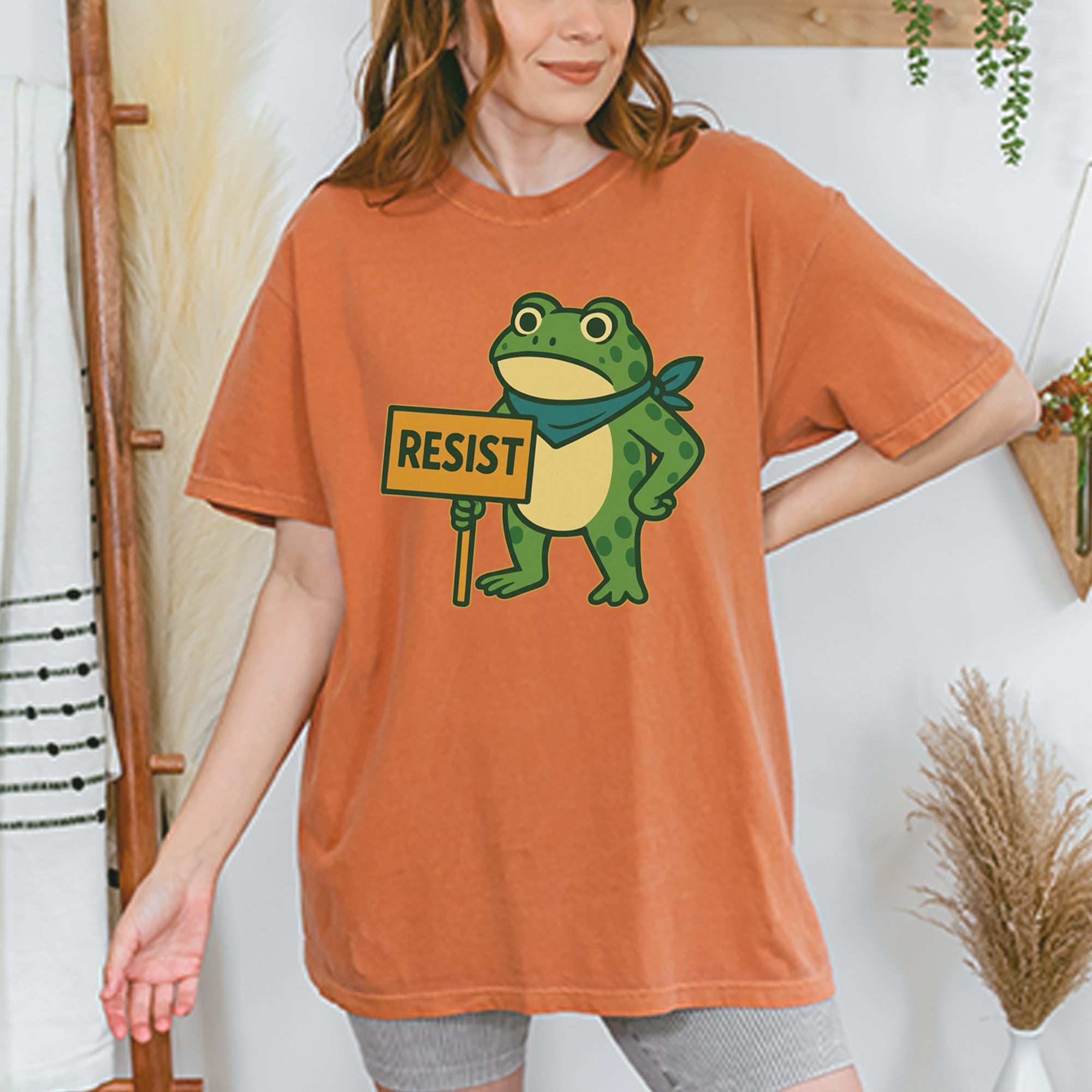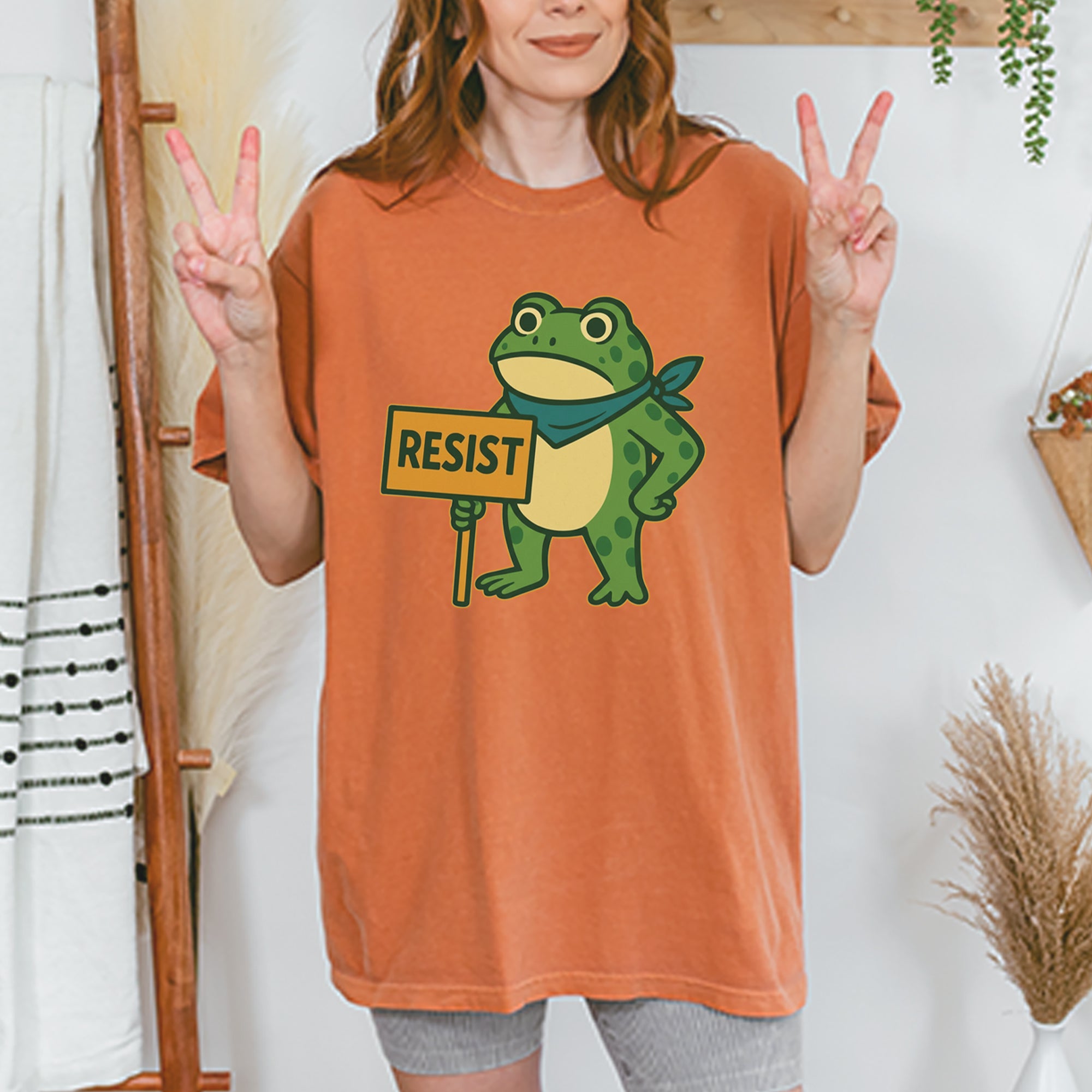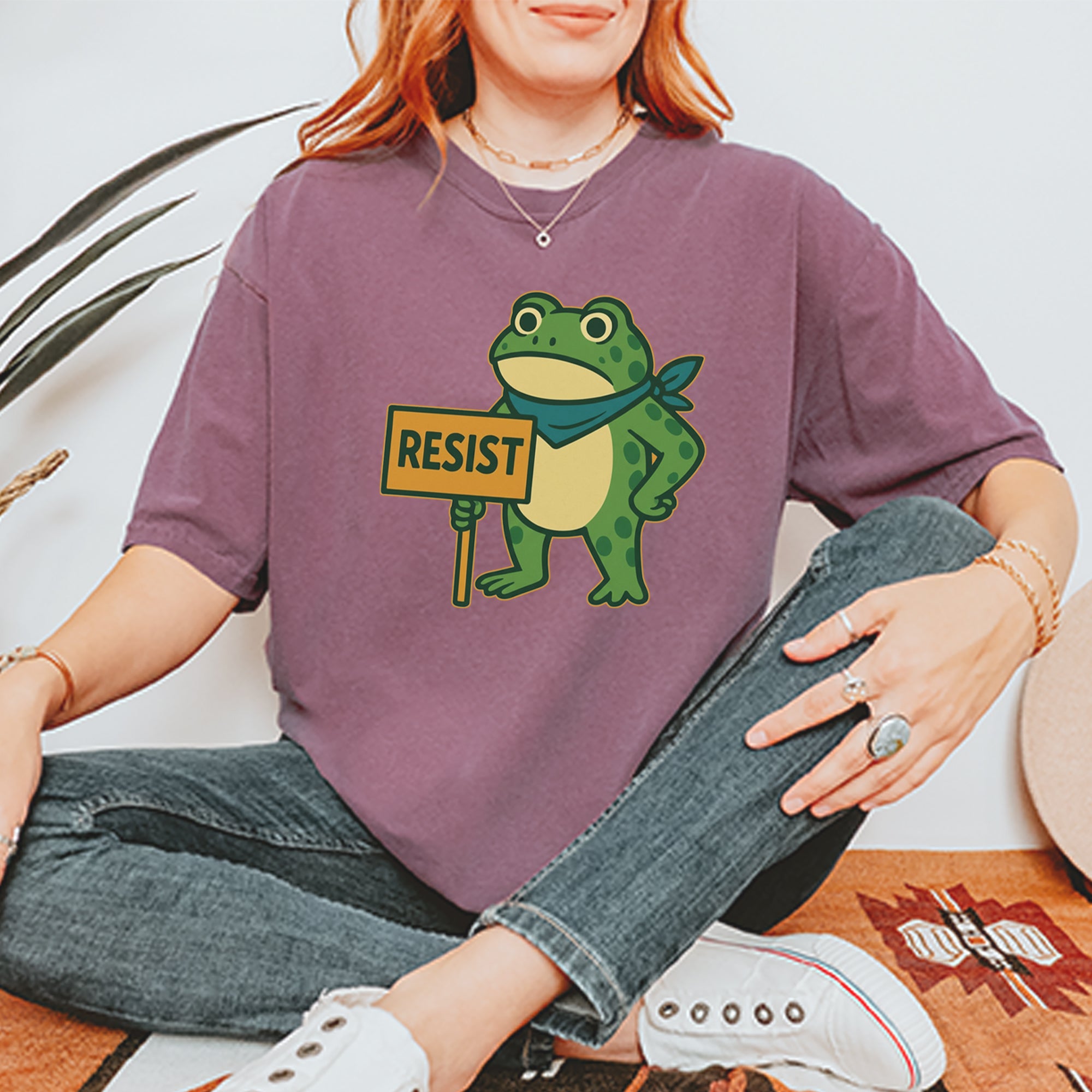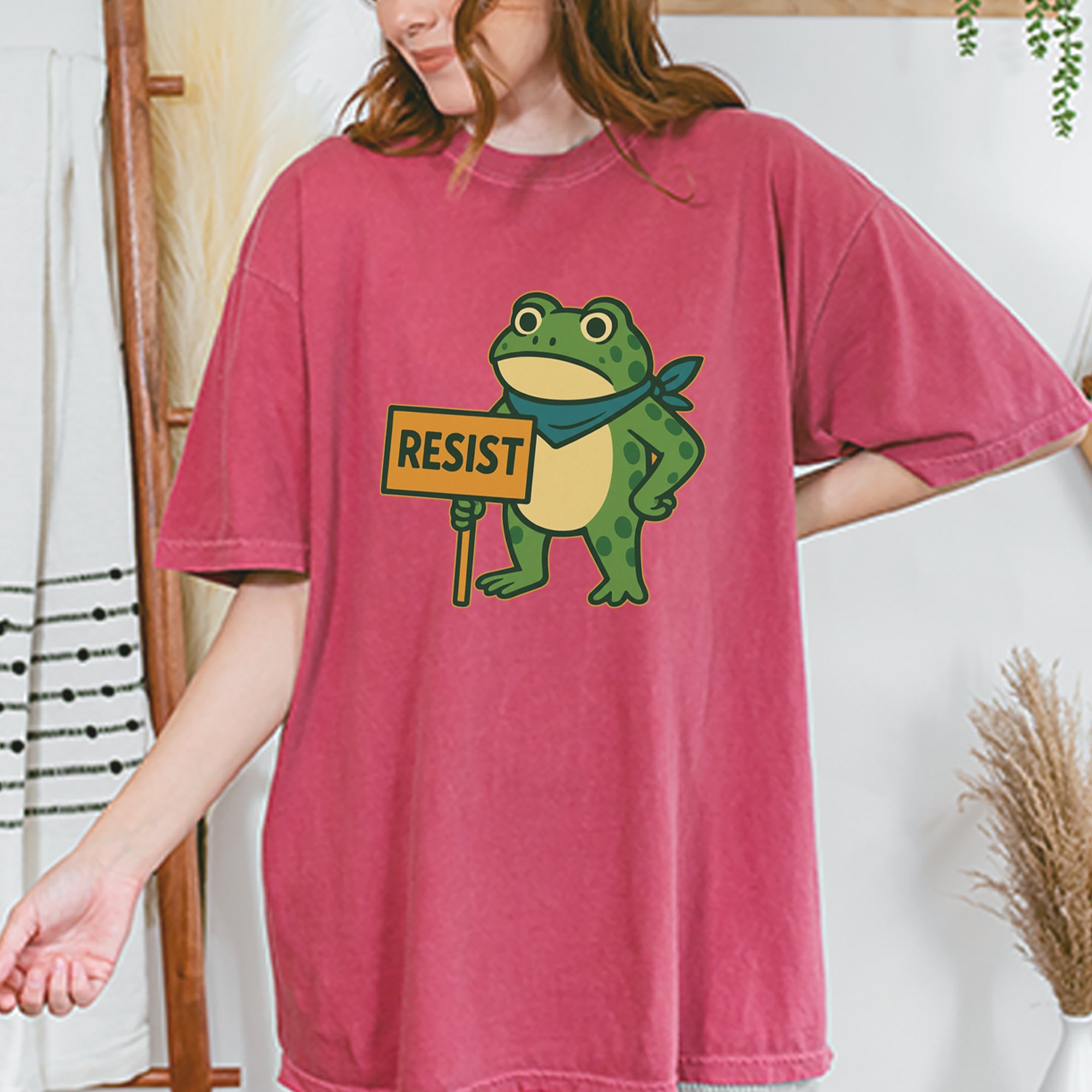 Cute but committed, this protest frog stands firm with sign in hand, bringing big energy from the streets of Portland to your wardrobe – a viral meme turned symbol of peaceful defiance.. Whether you're marching IRL or just resisting in spirit, this bold cartoon design mixes protest art with meme culture for a look that's both playful and powerful. Ribbiting Resistance..