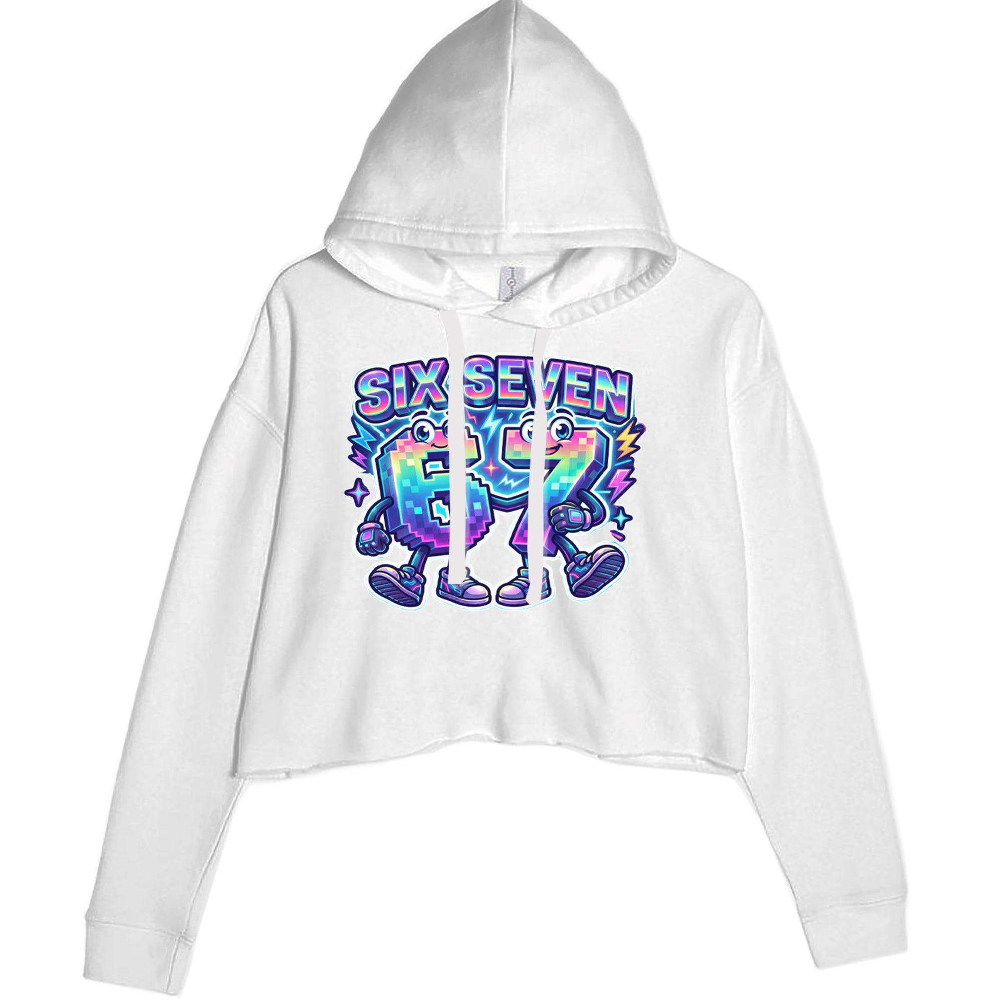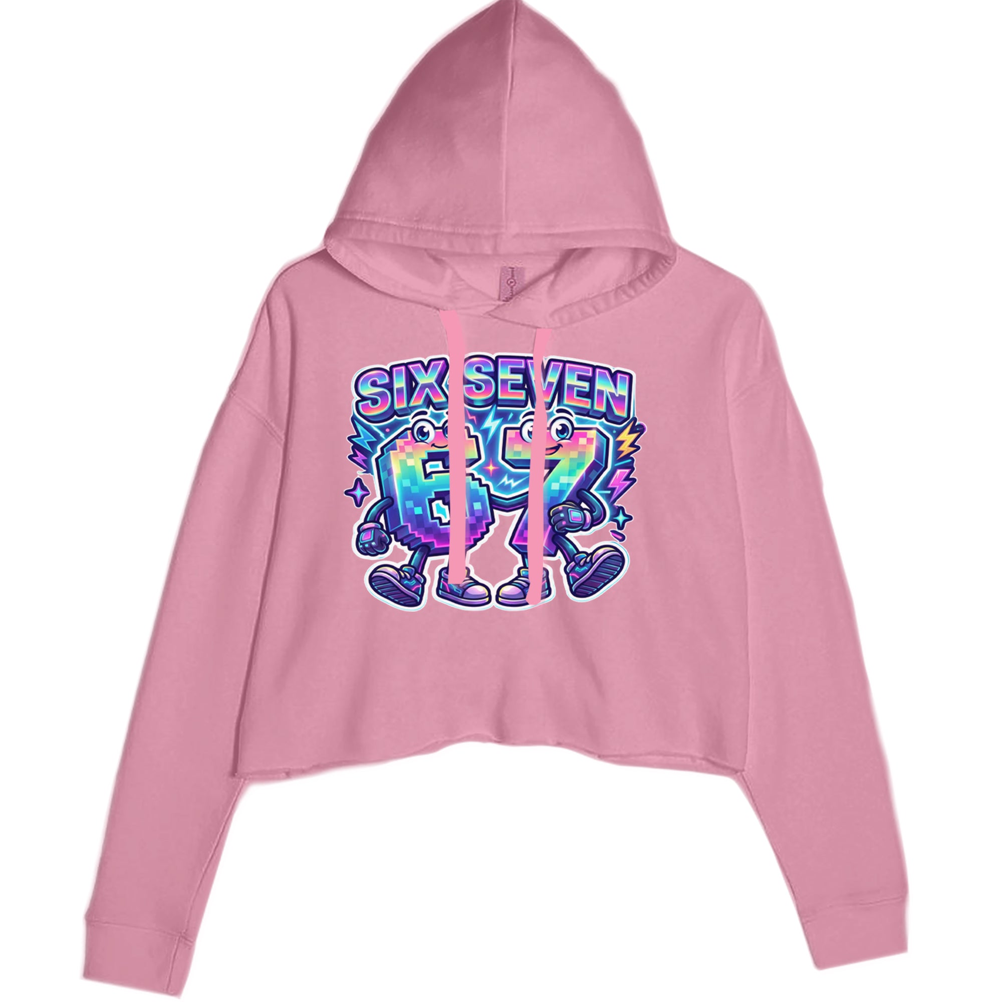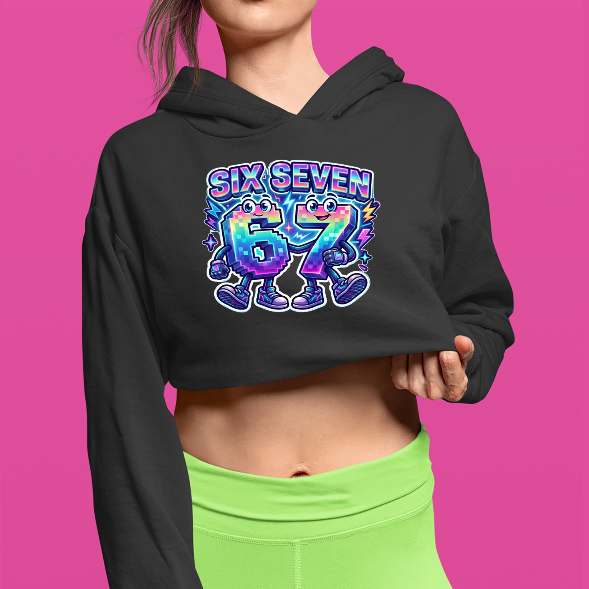 Colorful pixel 6 and 7 characters celebrate the viral Six Seven 67 meme, inspired by the TikTok brainrot number trend. Perfect for anyone who randomly blurts out six seven for no reason at all. Fun pick for Gen Alpha kids, meme lovers, hoop fans, and creators who live on reels and shorts. Bright neon rainbow style makes this 67 meme art pop in videos, streams, and everyday fit pics.