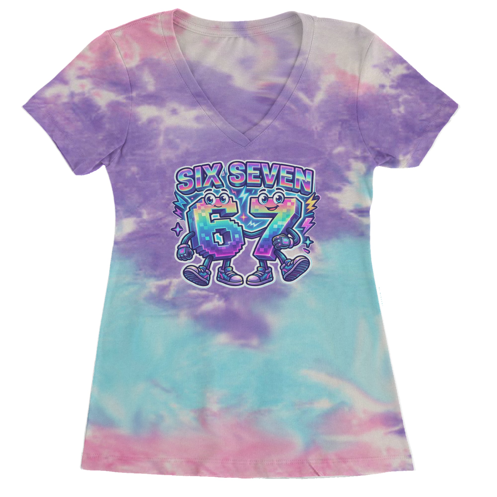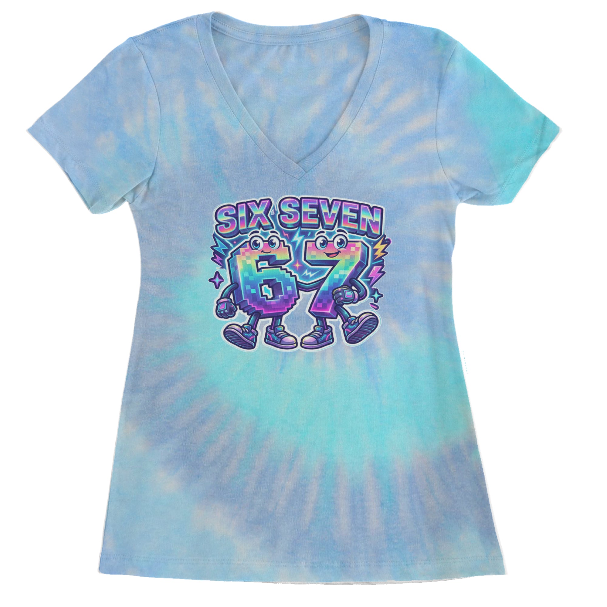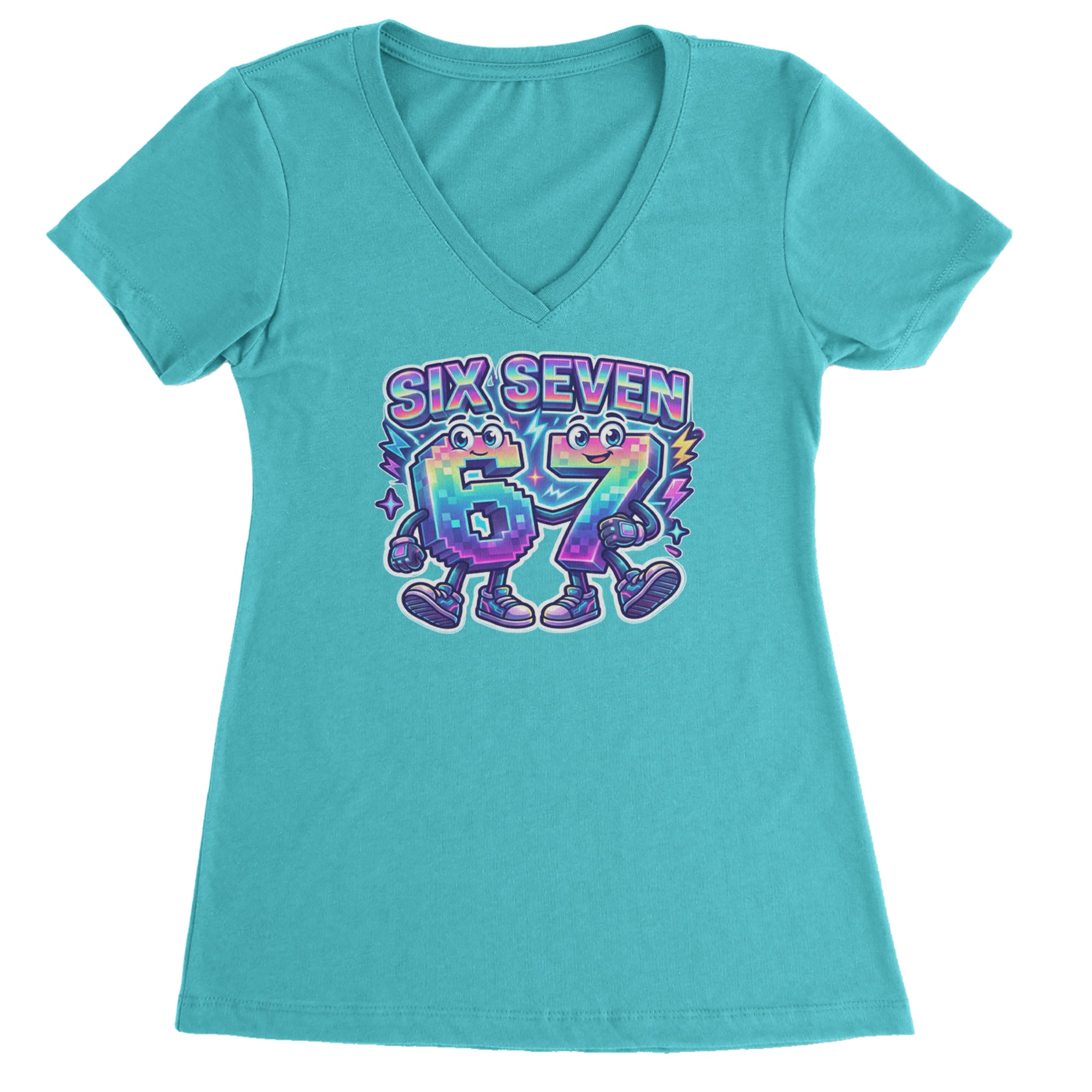 Colorful pixel 6 and 7 characters celebrate the viral Six Seven 67 meme, inspired by the TikTok brainrot number trend. Perfect for anyone who randomly blurts out six seven for no reason at all. Fun pick for Gen Alpha kids, meme lovers, hoop fans, and creators who live on reels and shorts. Bright neon rainbow style makes this 67 meme art pop in videos, streams, and everyday fit pics.