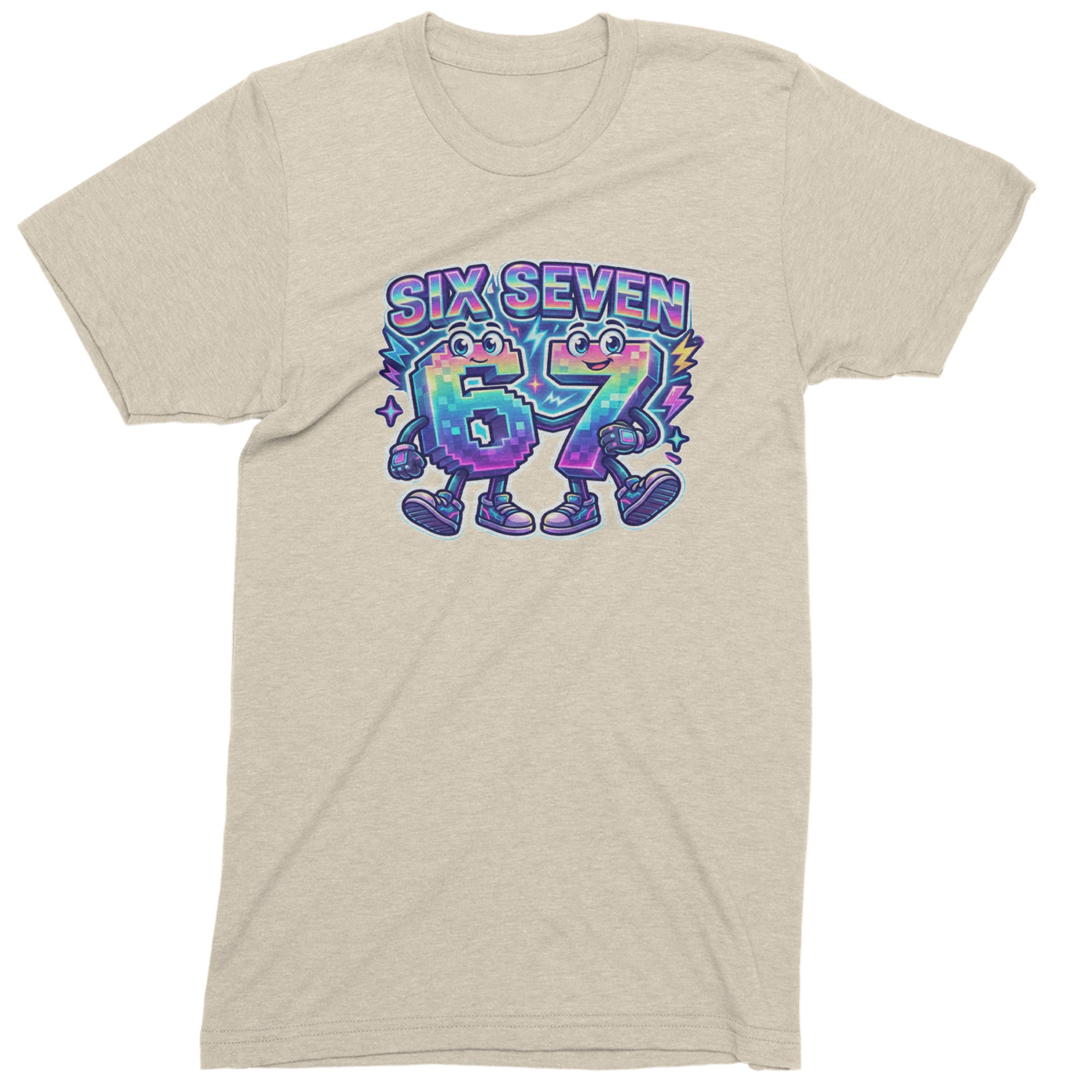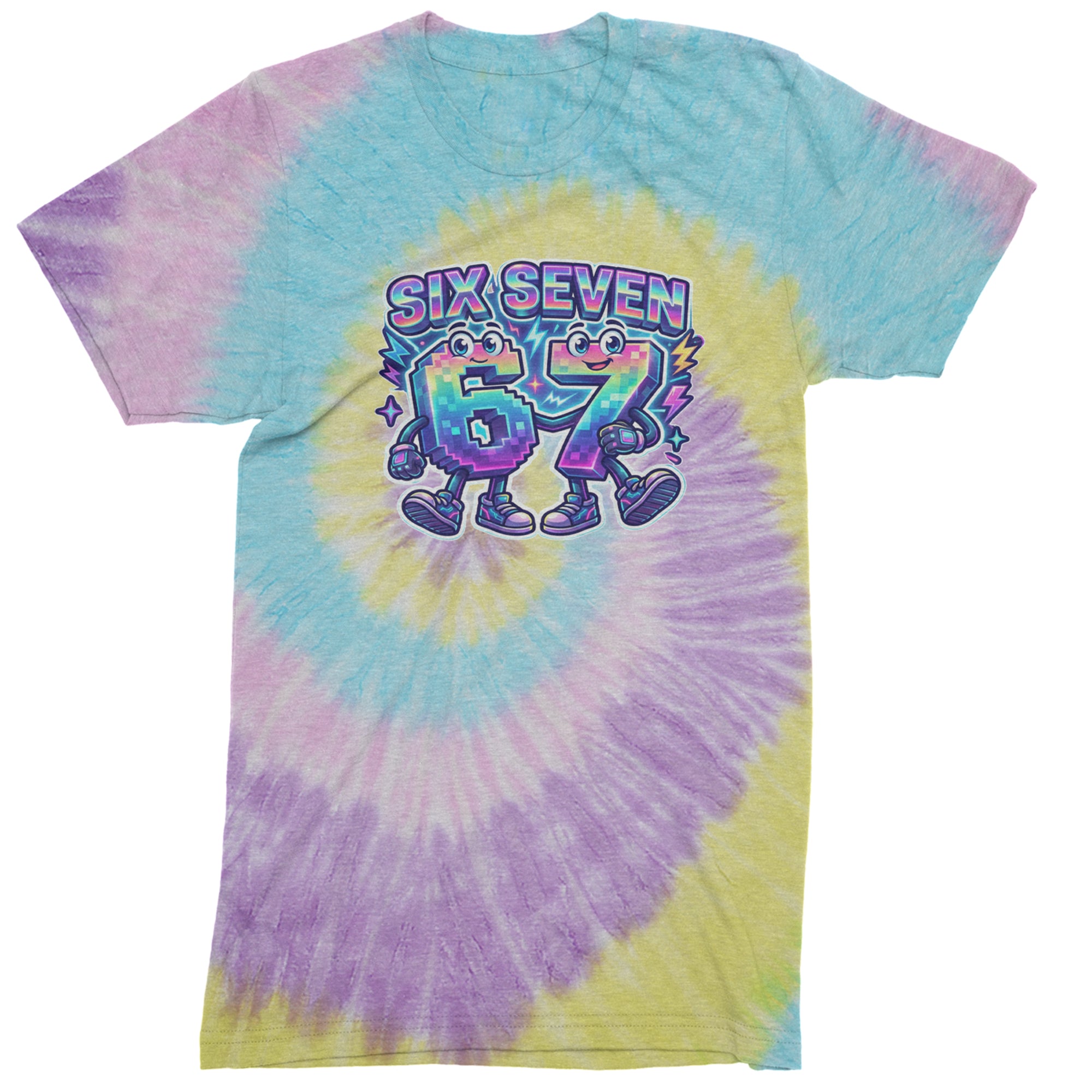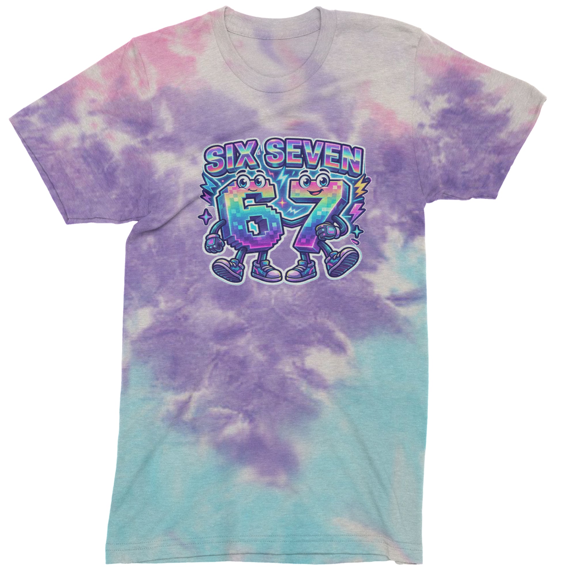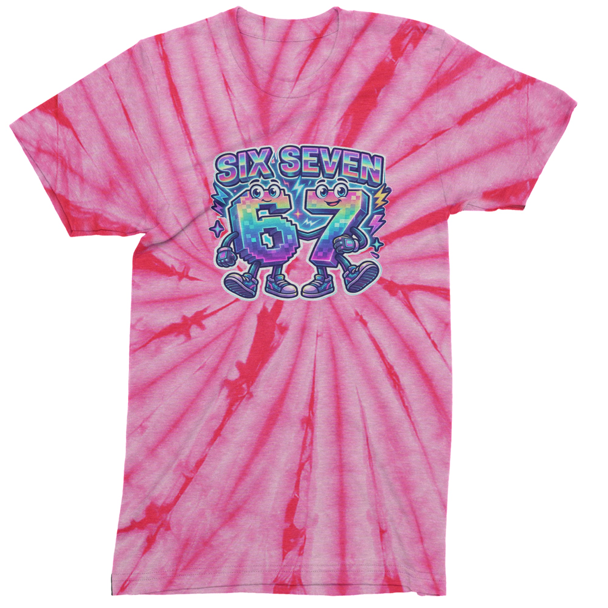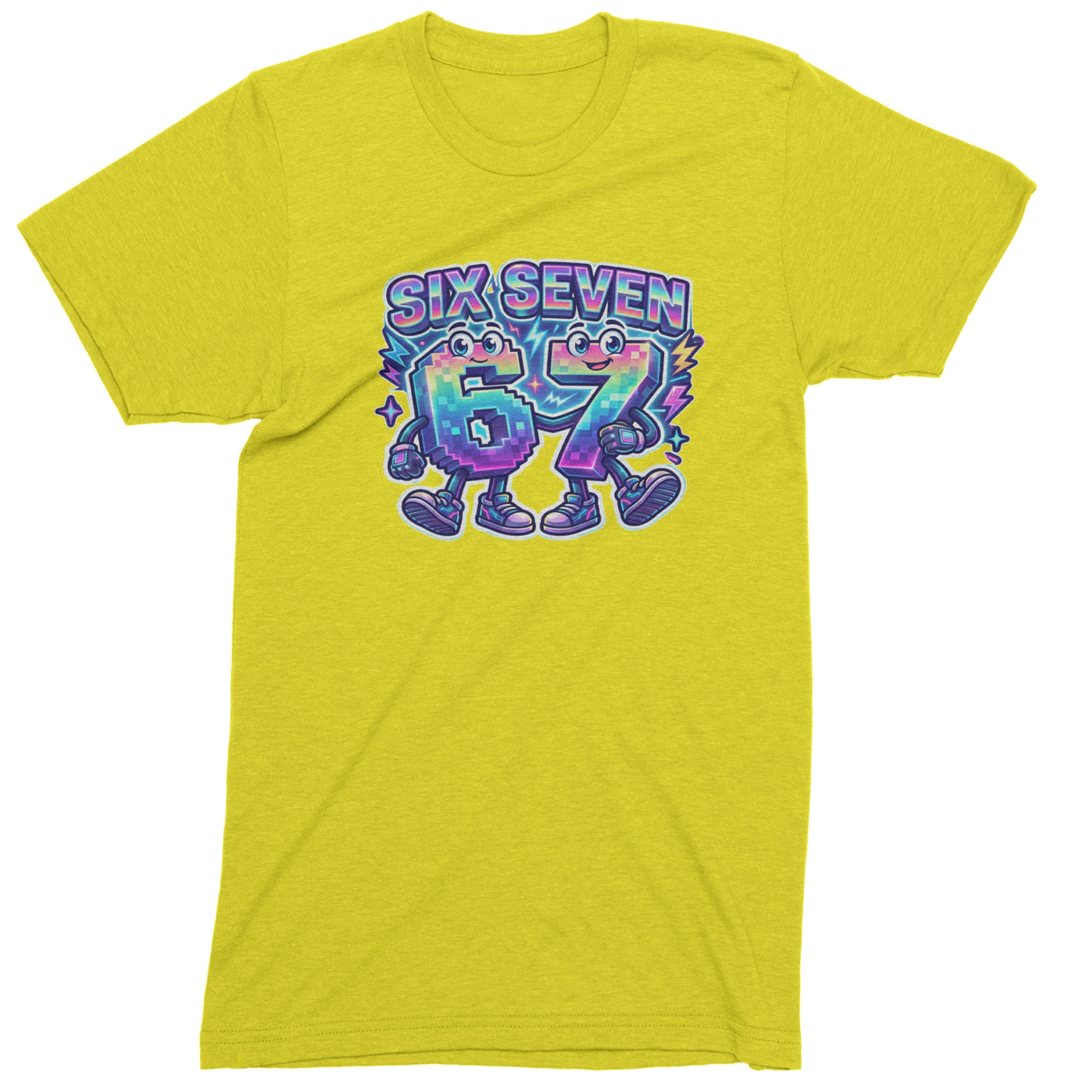 Colorful pixel 6 and 7 characters celebrate the viral Six Seven 67 meme, inspired by the TikTok brainrot number trend. Perfect for anyone who randomly blurts out six seven for no reason at all.. Fun pick for Gen Alpha kids, meme lovers, hoop fans, and creators who live on reels and shorts. Bright neon rainbow style makes this 67 meme art pop in videos, streams, and everyday fit pics..