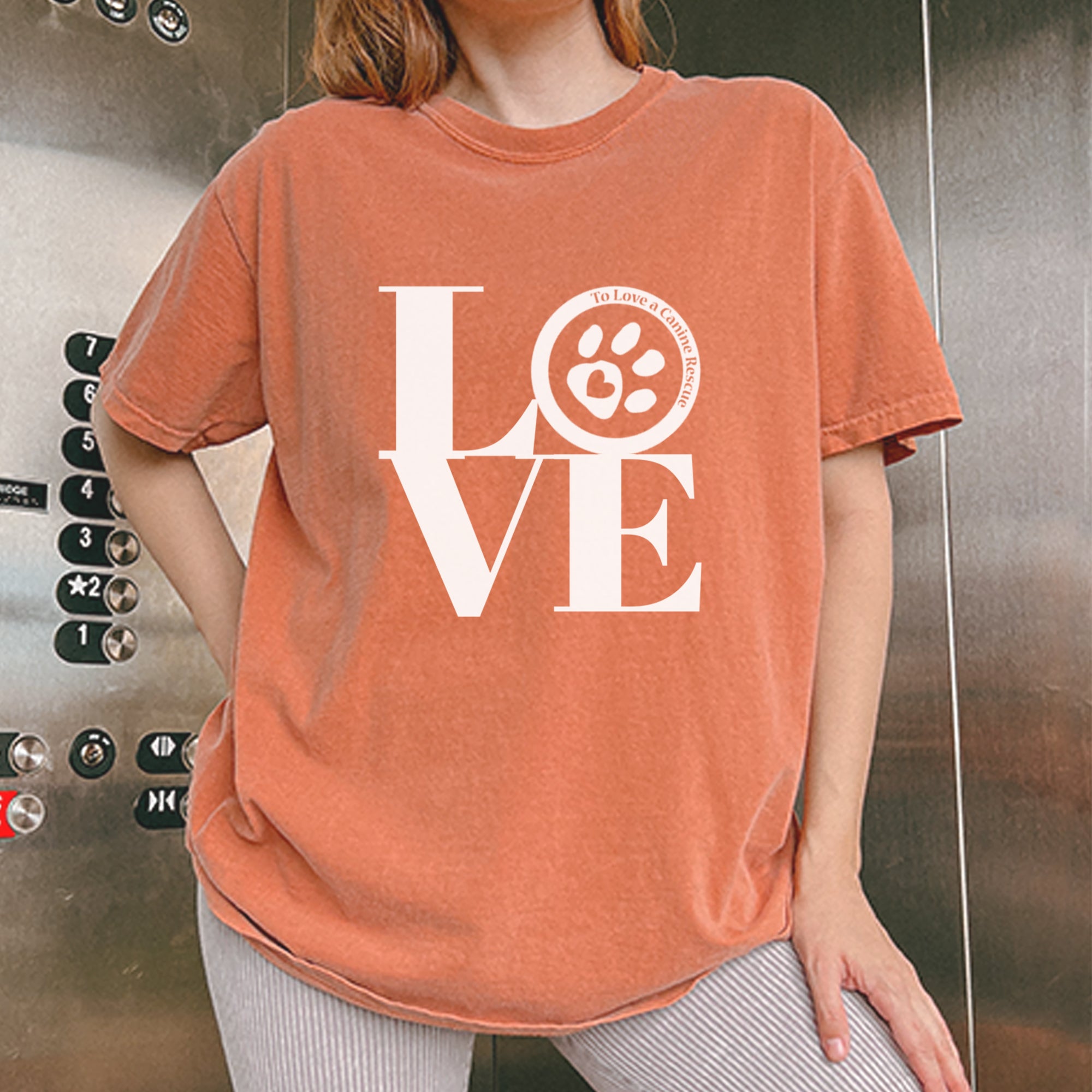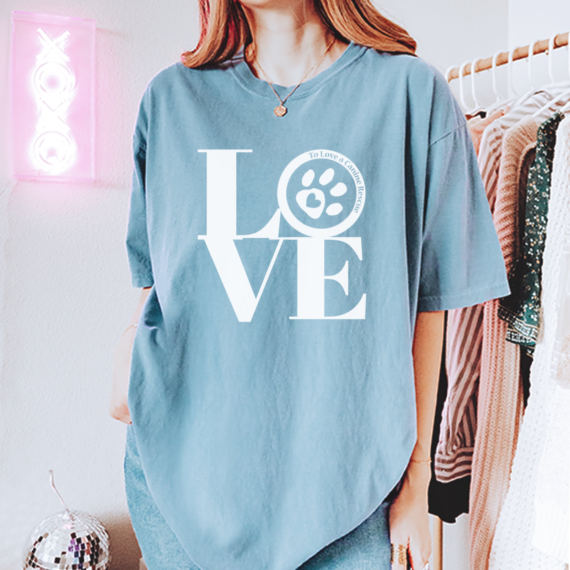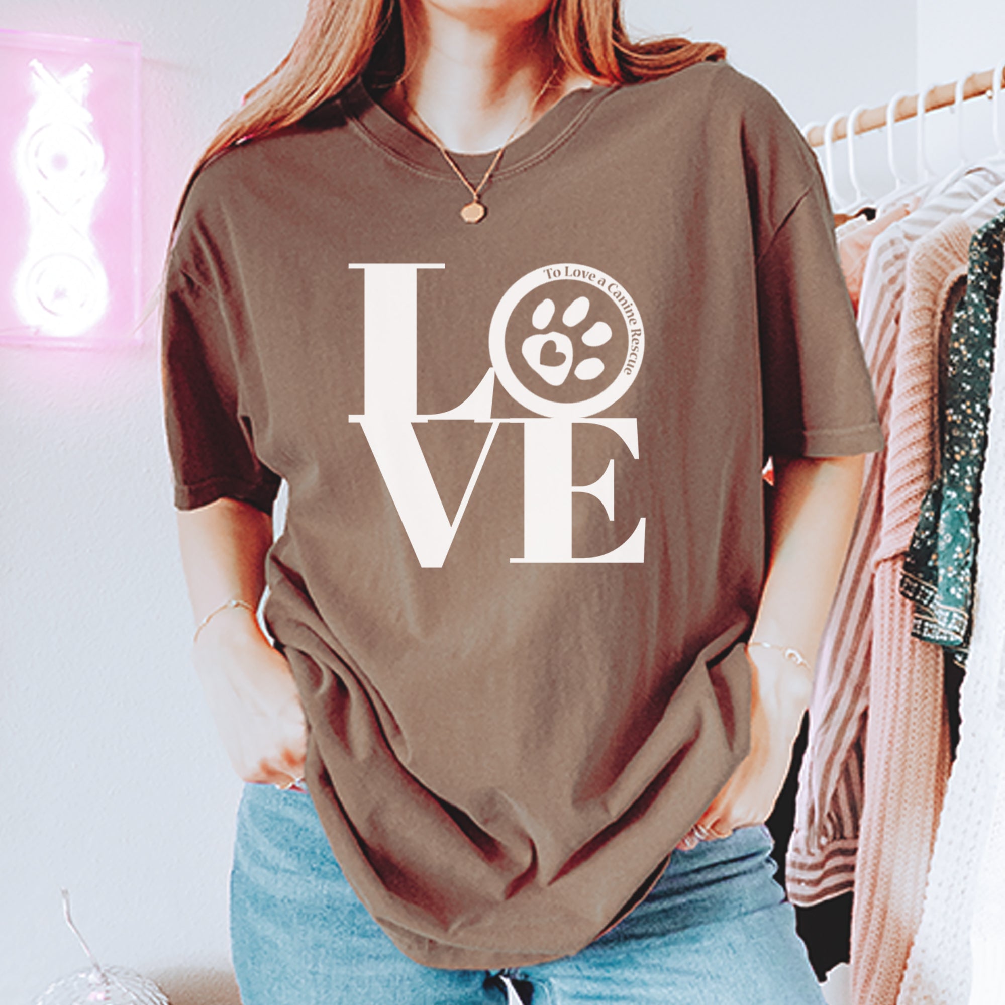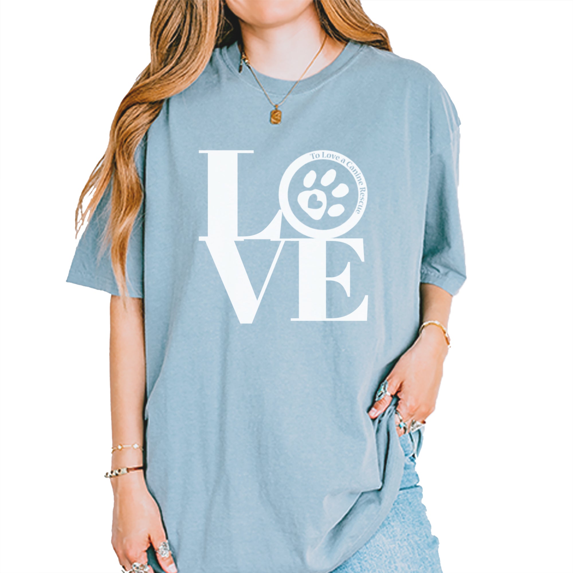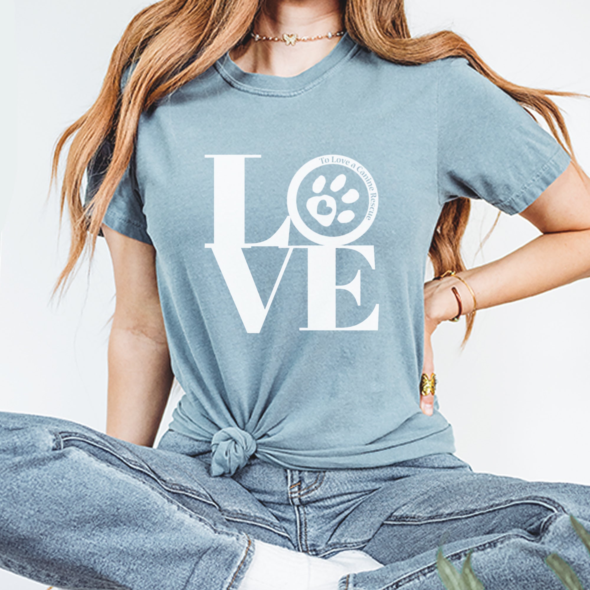 This is a front and back design, and all proceeds go to benefit TLC Dog Rescue, just outside the Philadelphia area. Learn how you can rescue a dog by visiting them at tlcrescuepa.com.