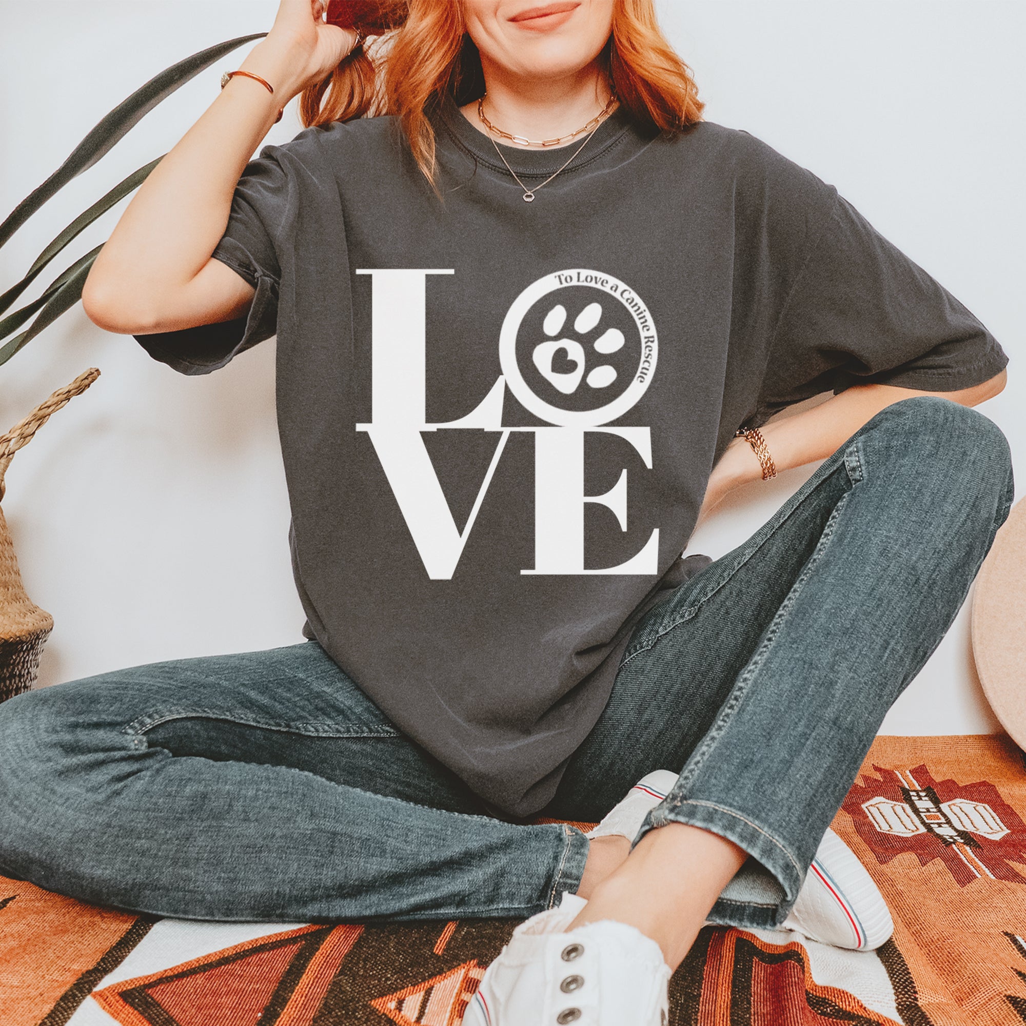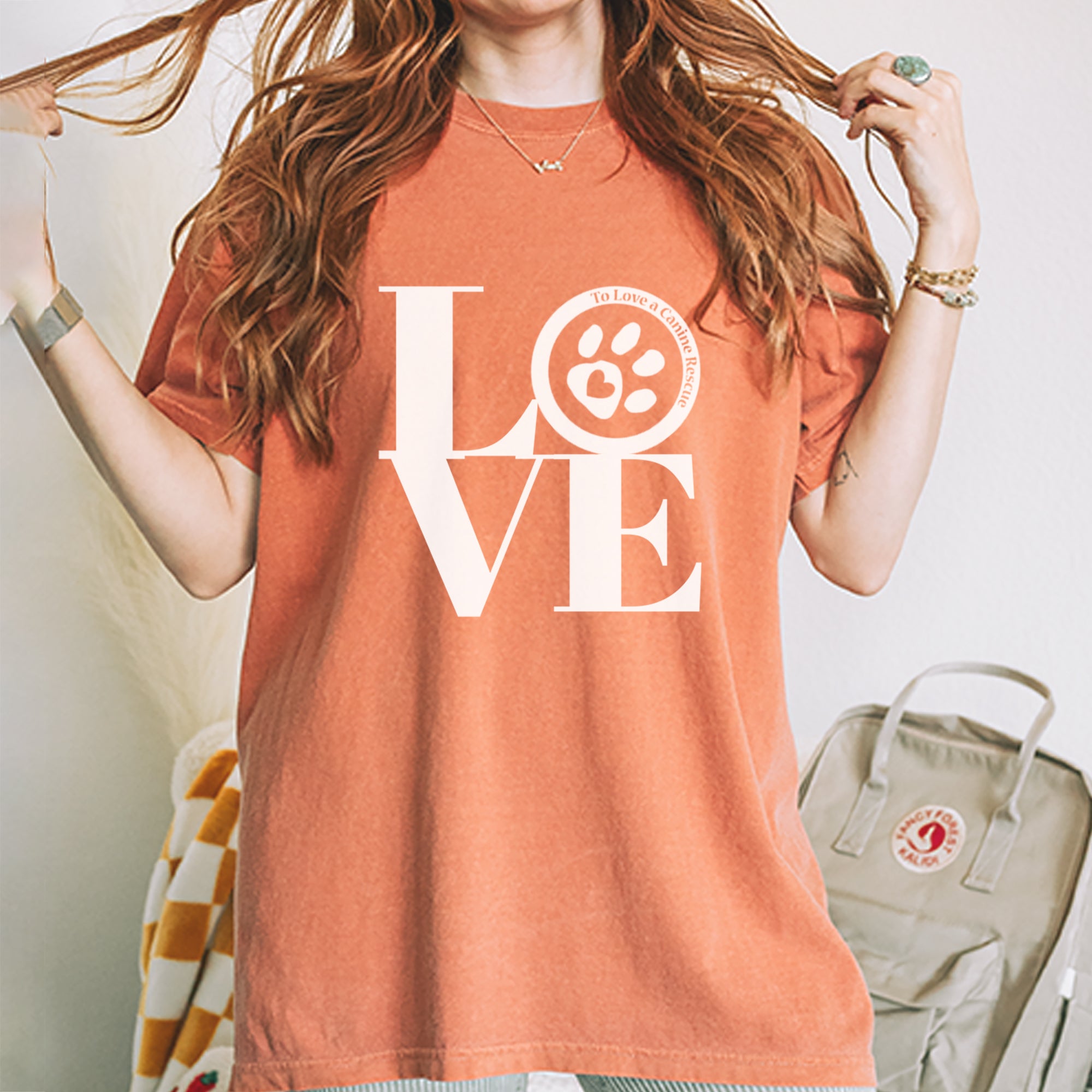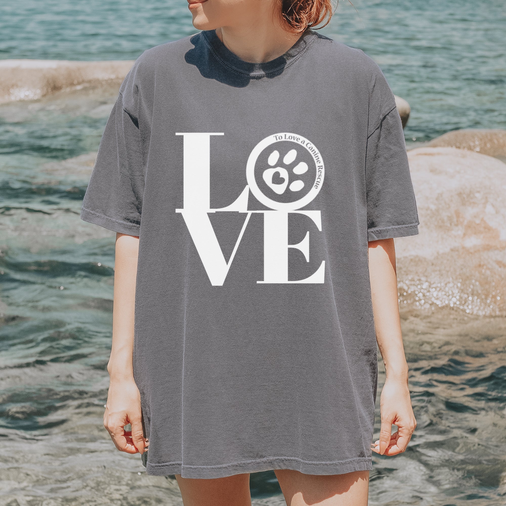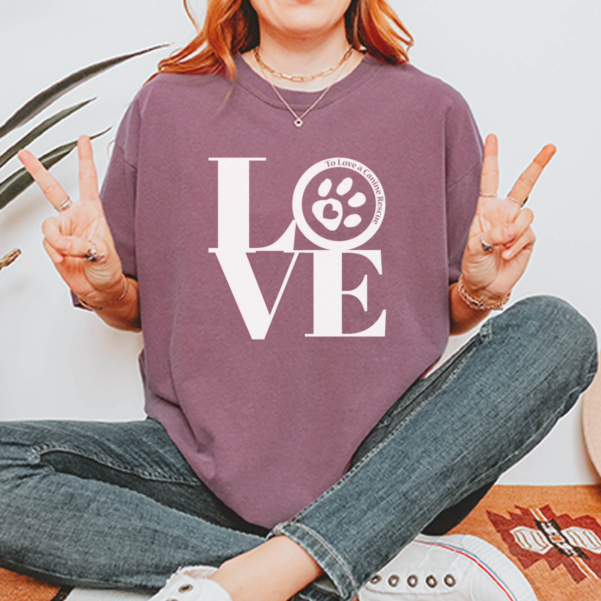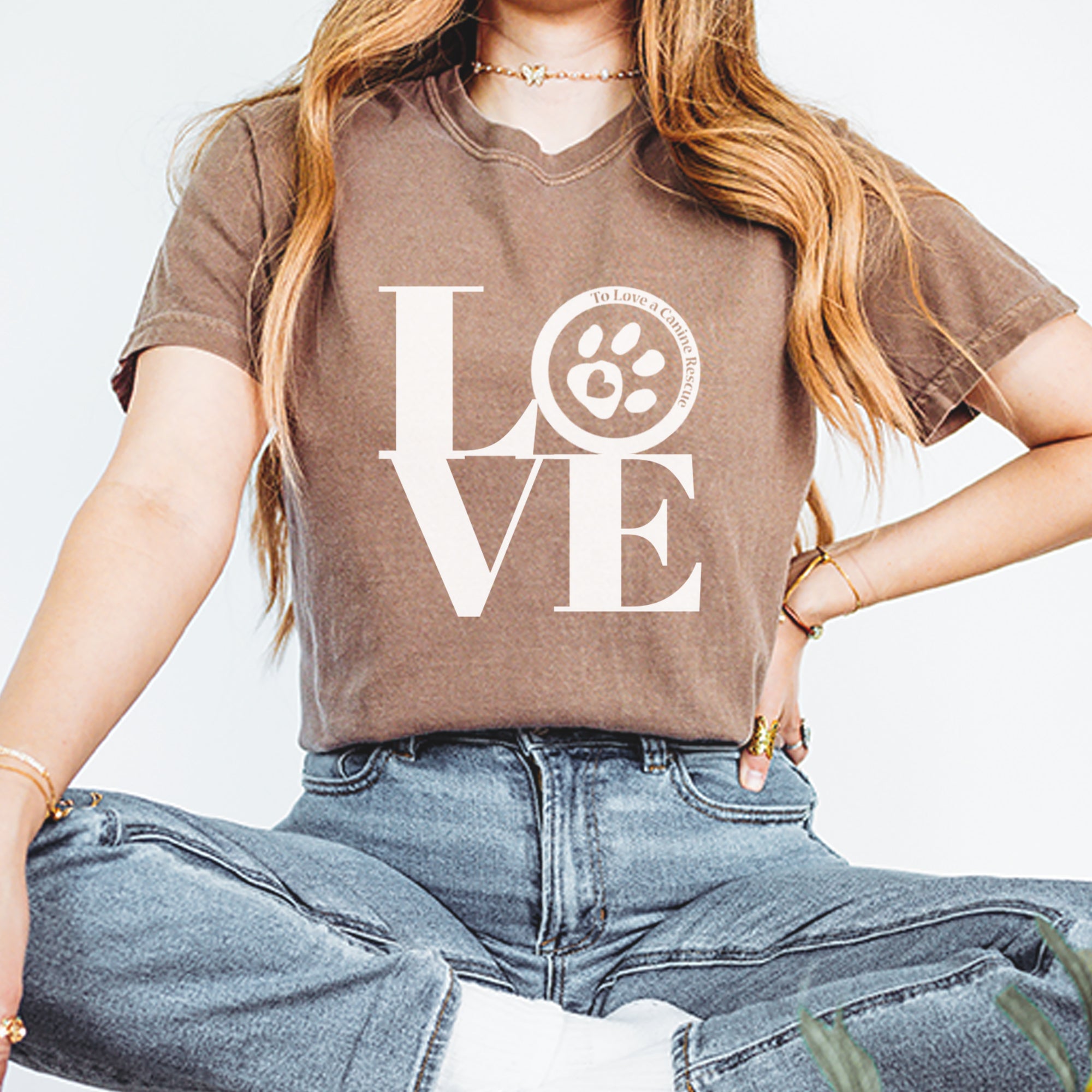 This is a front and back design, and all proceeds go to benefit TLC Dog Rescue, just outside the Philadelphia area. Learn how you can rescue a dog by visiting them at tlcrescuepa.com.