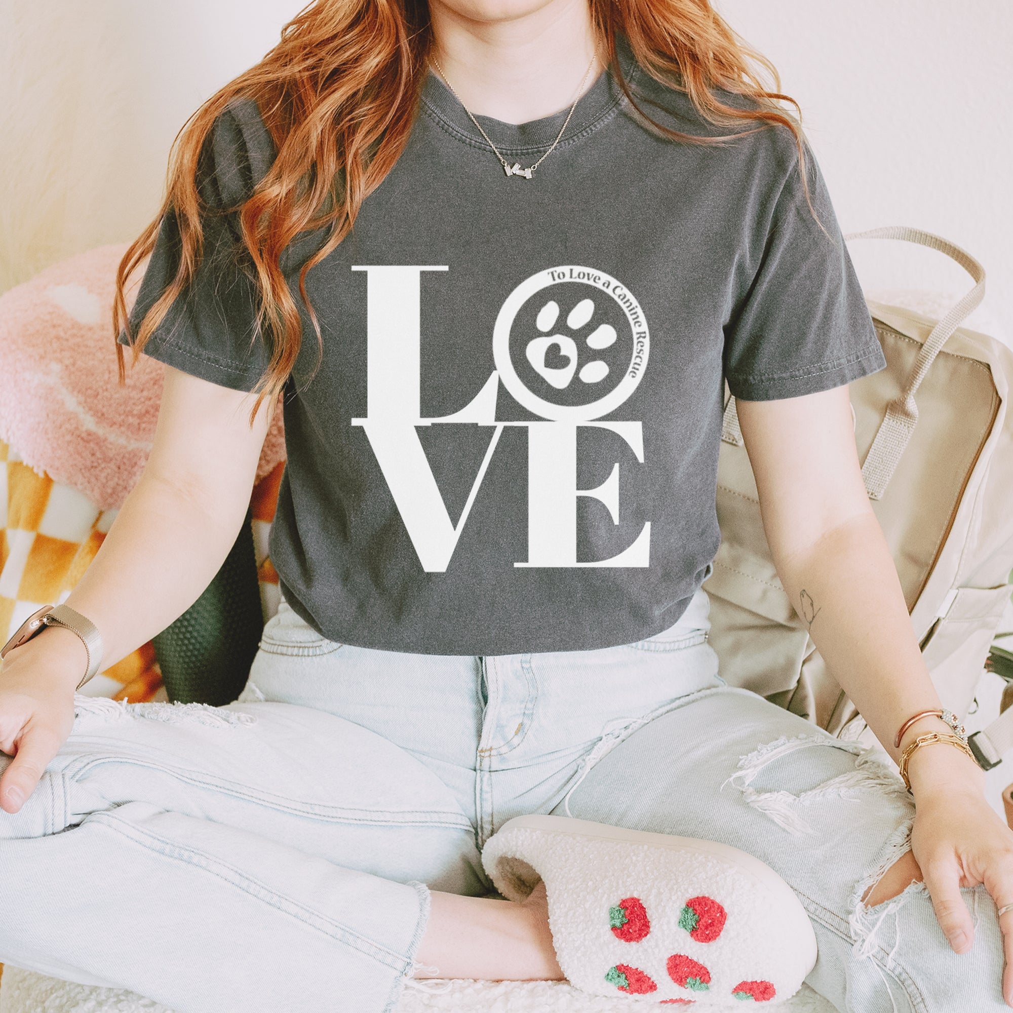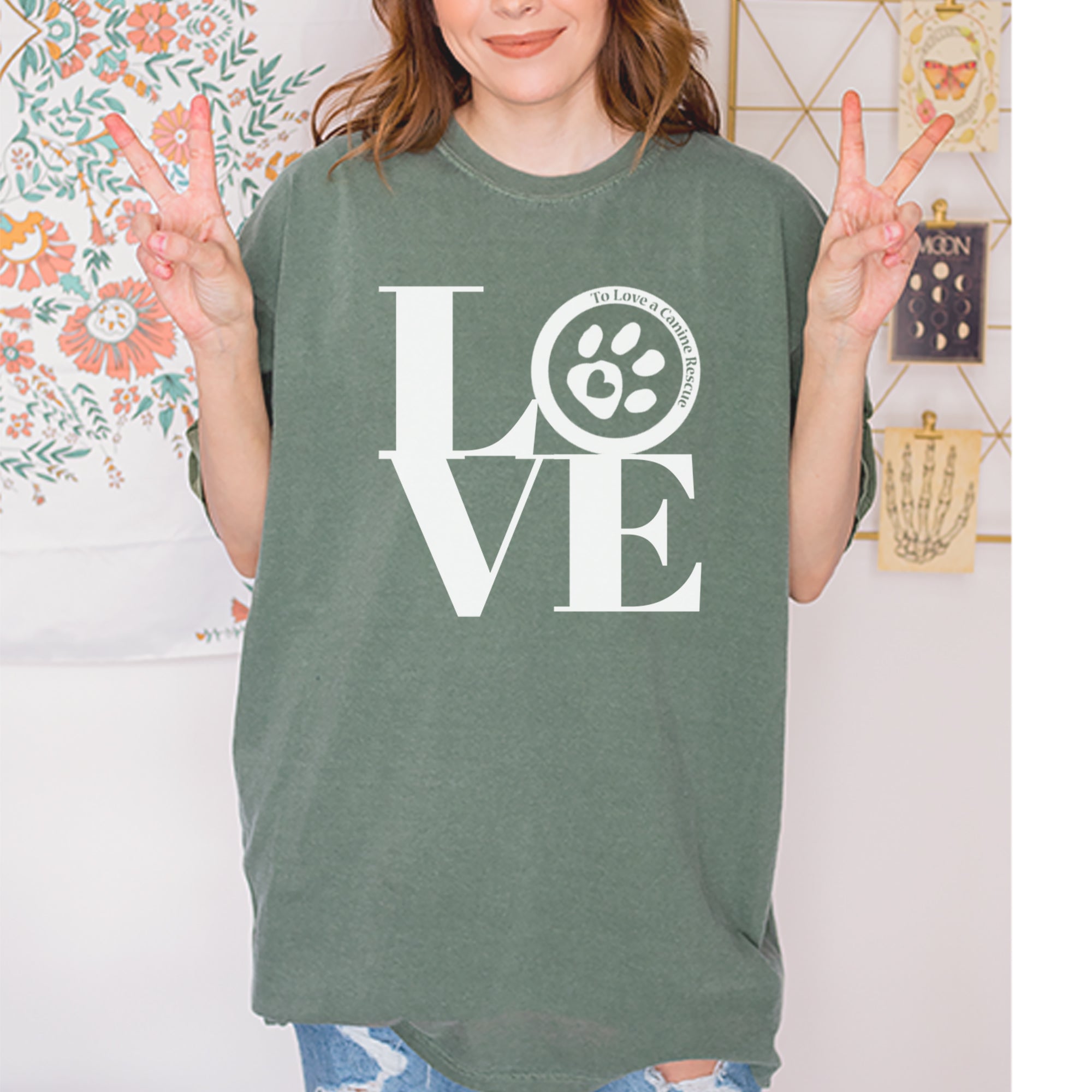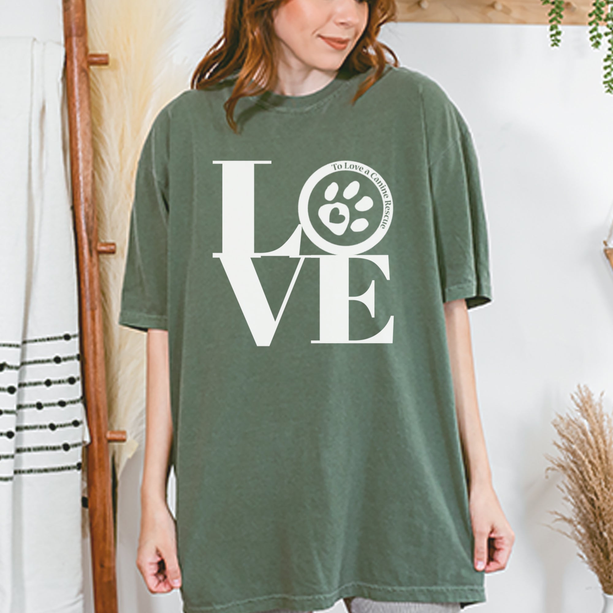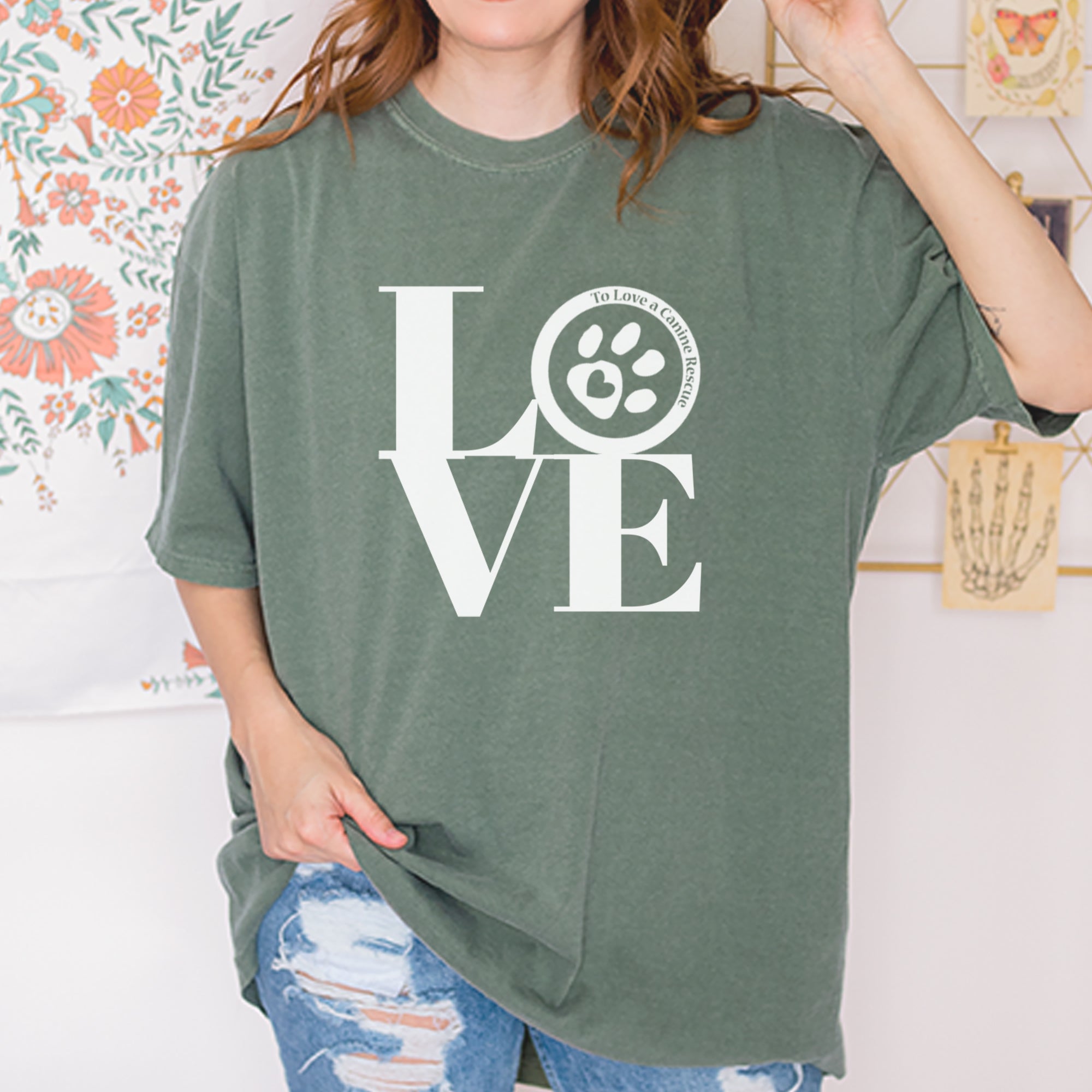 This is a front and back design, and all proceeds go to benefit TLC Dog Rescue, just outside the Philadelphia area. Learn how you can rescue a dog by visiting them at tlcrescuepa.com.