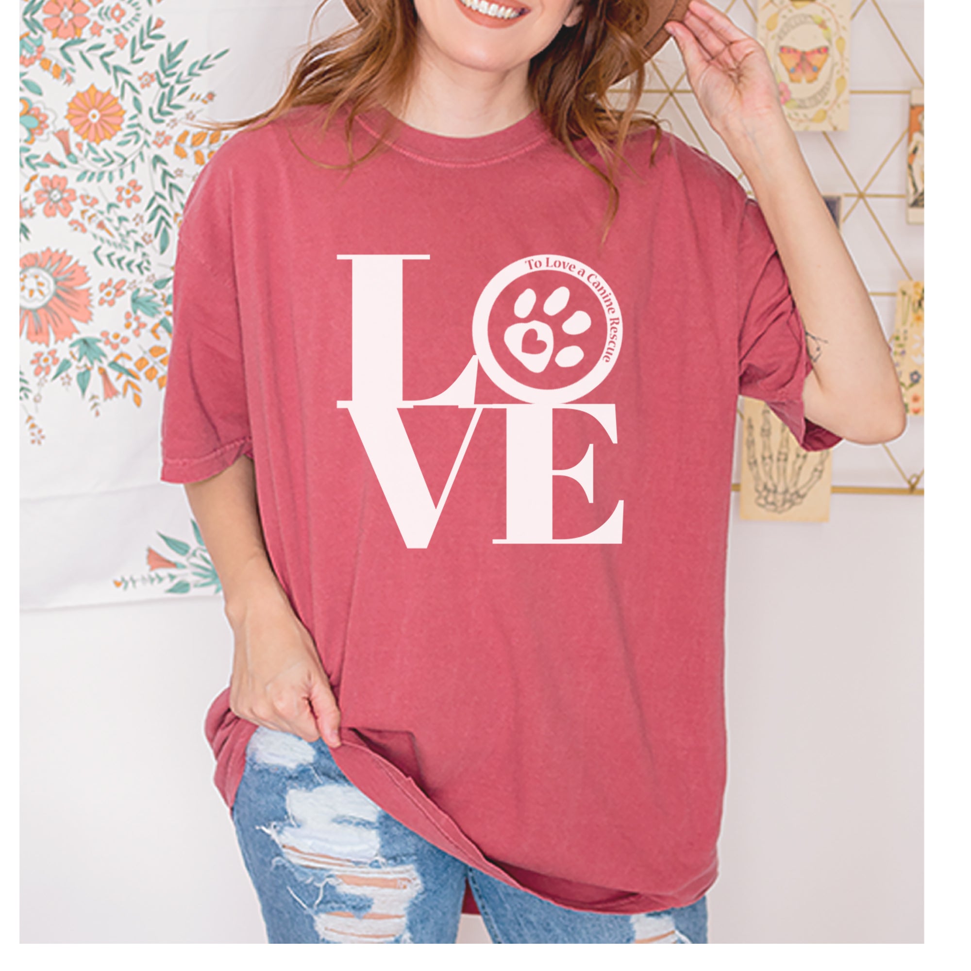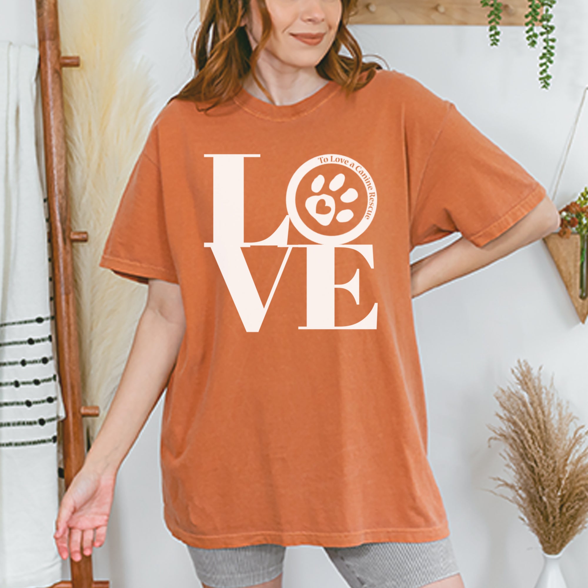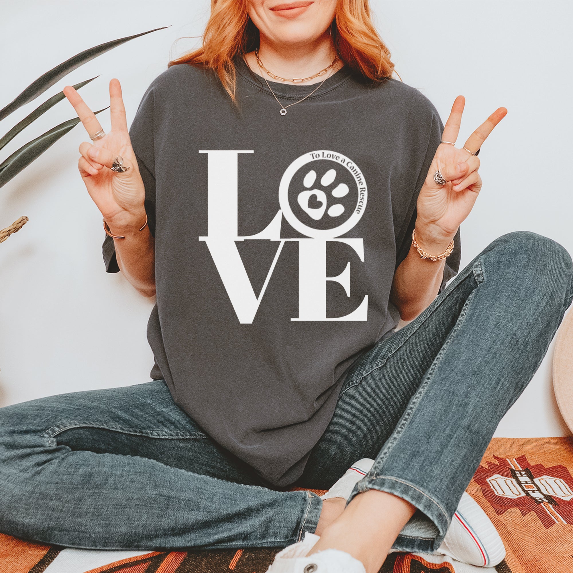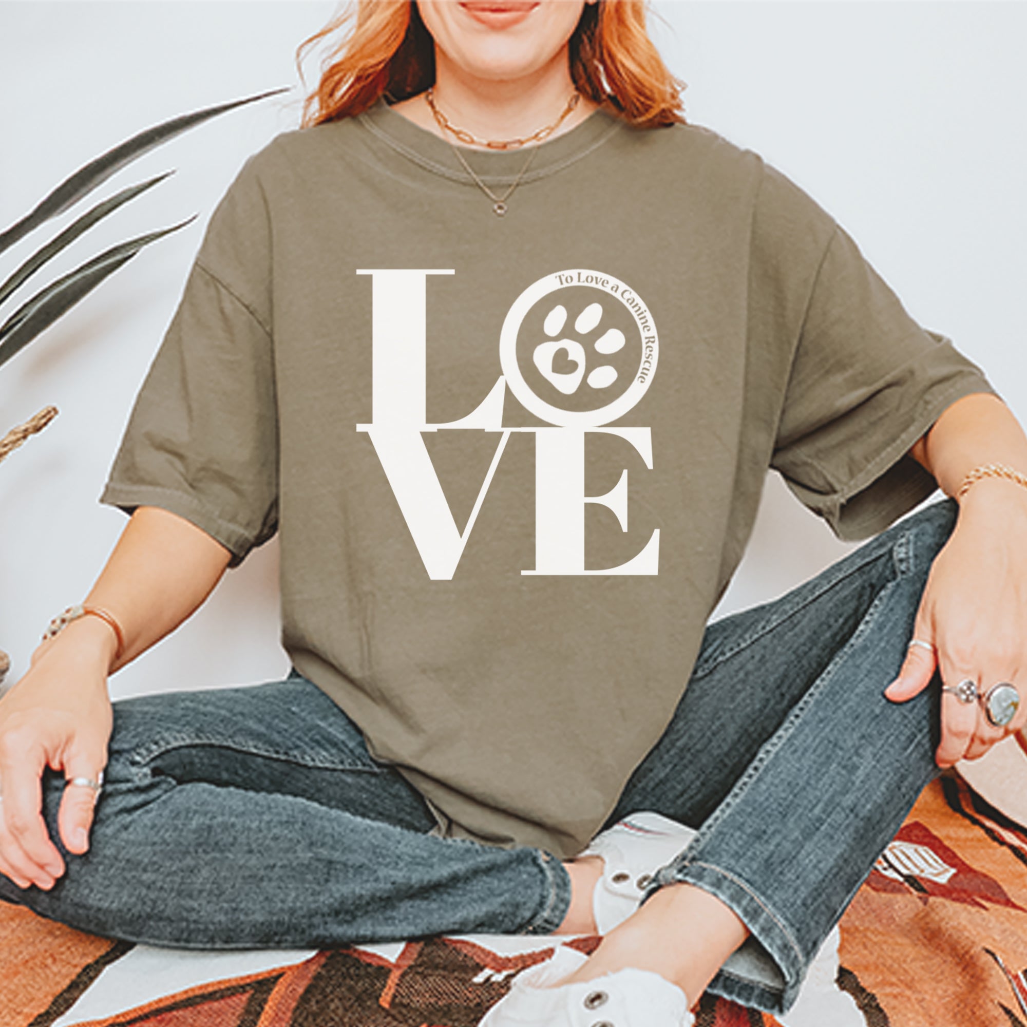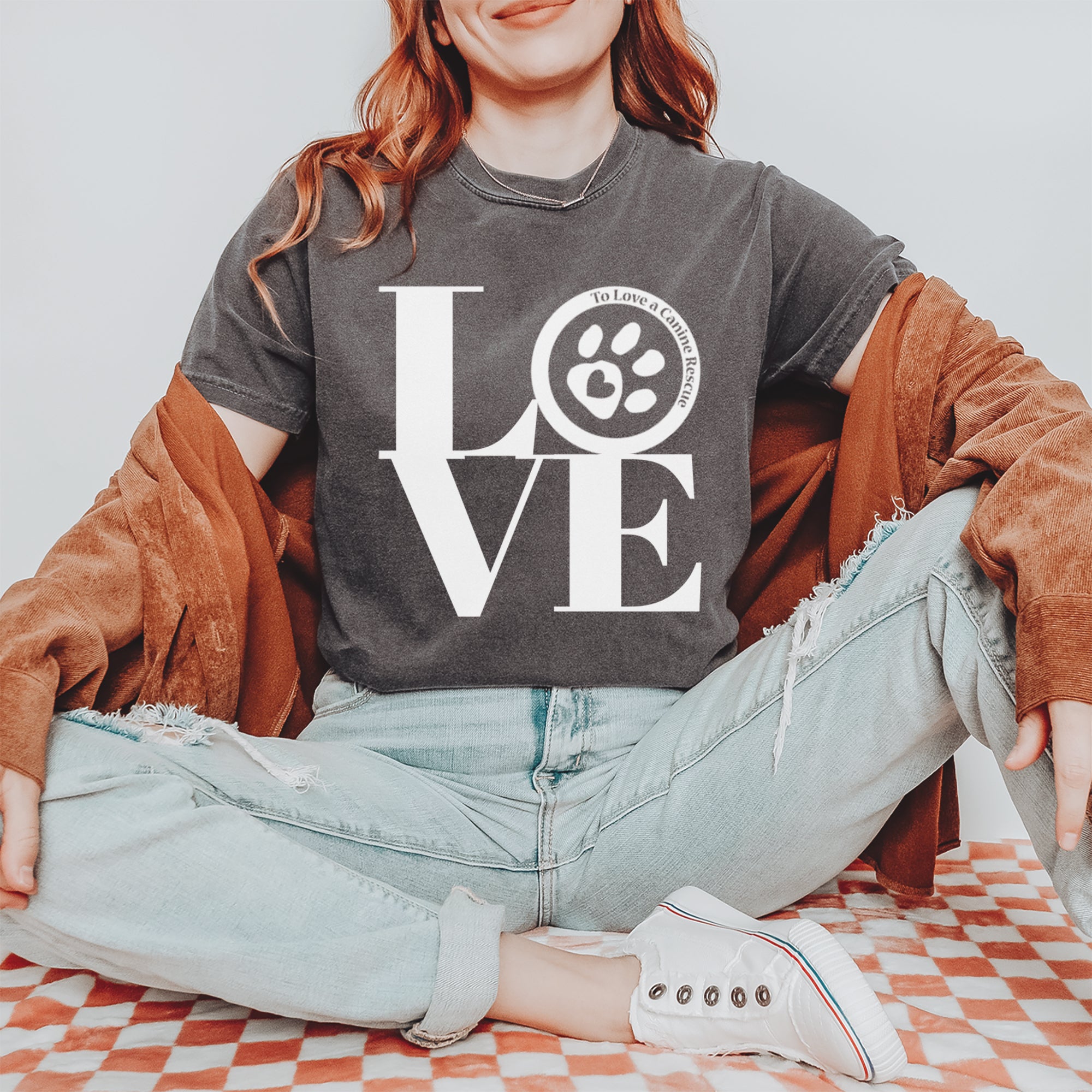 This is a front and back design, and all proceeds go to benefit TLC Dog Rescue, just outside the Philadelphia area. Learn how you can rescue a dog by visiting them at tlcrescuepa.com.
