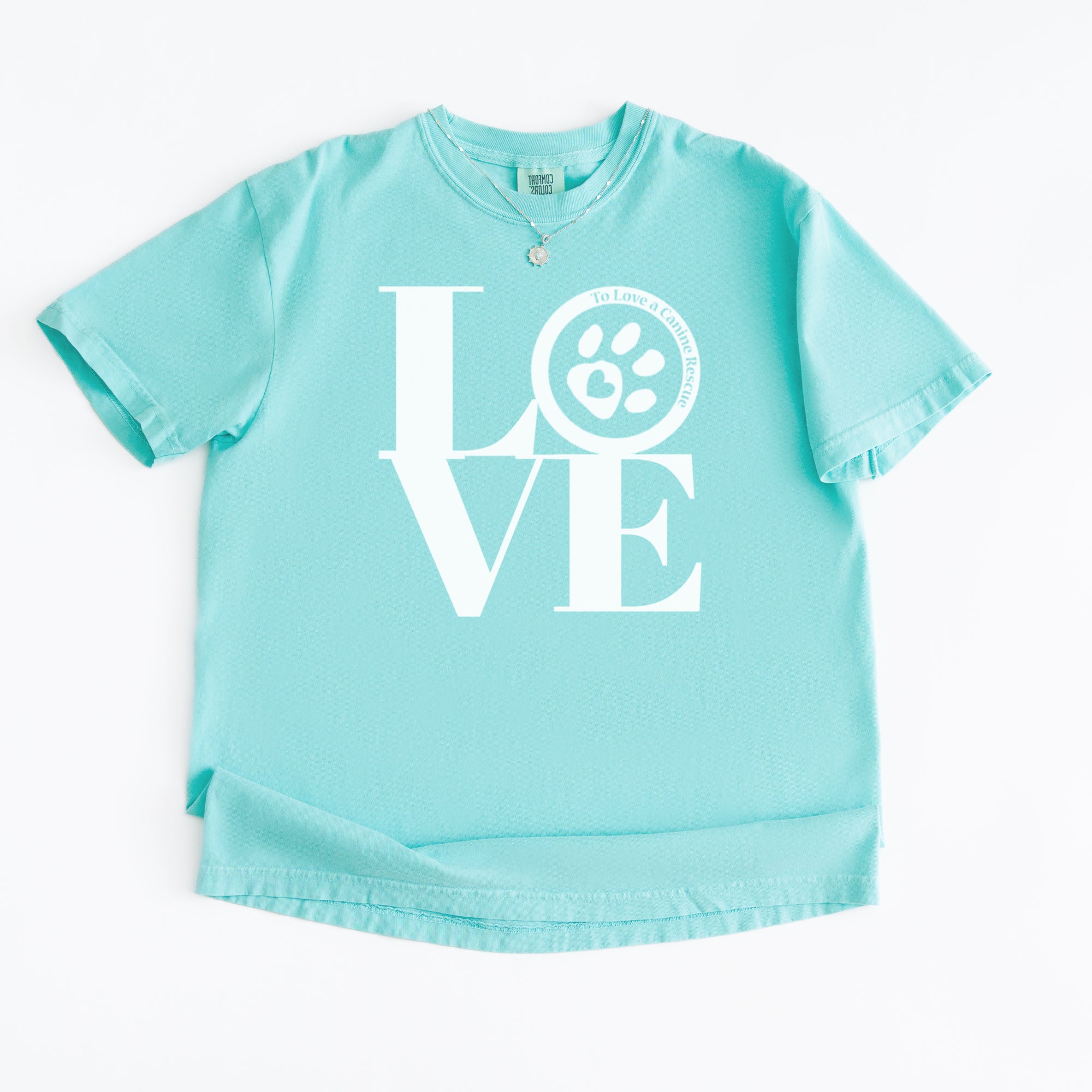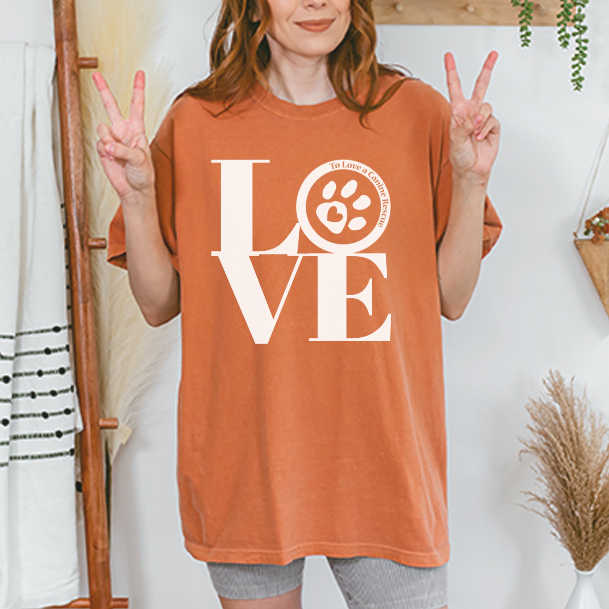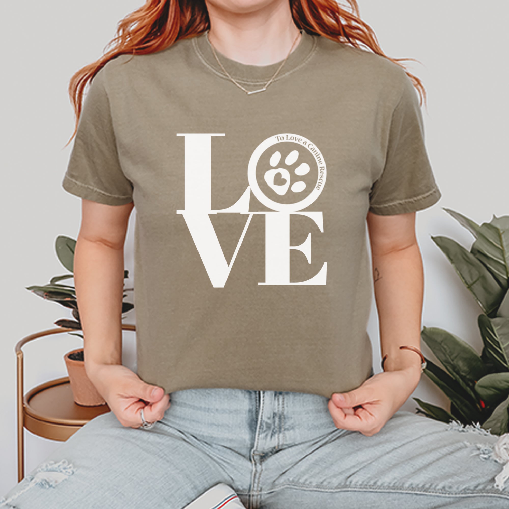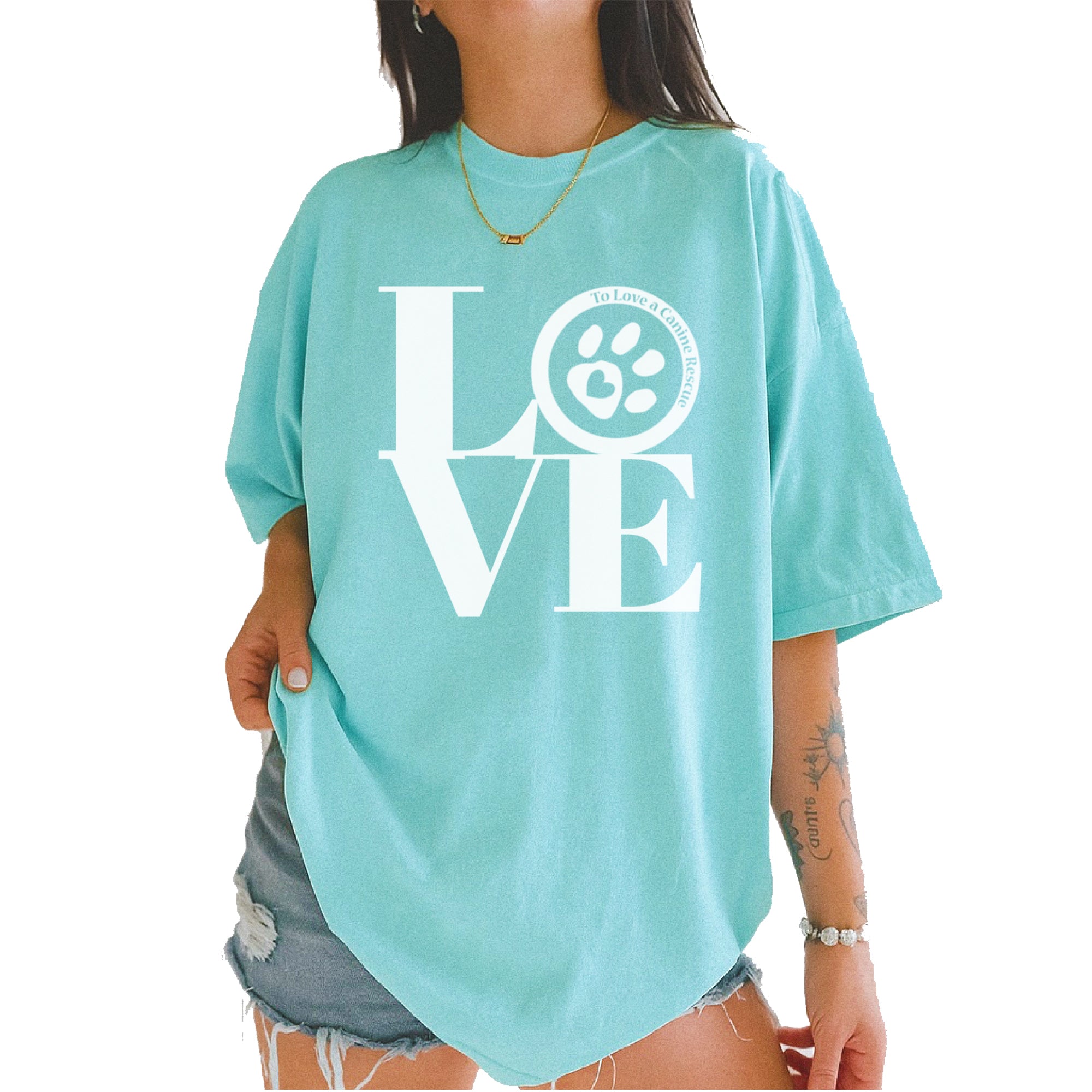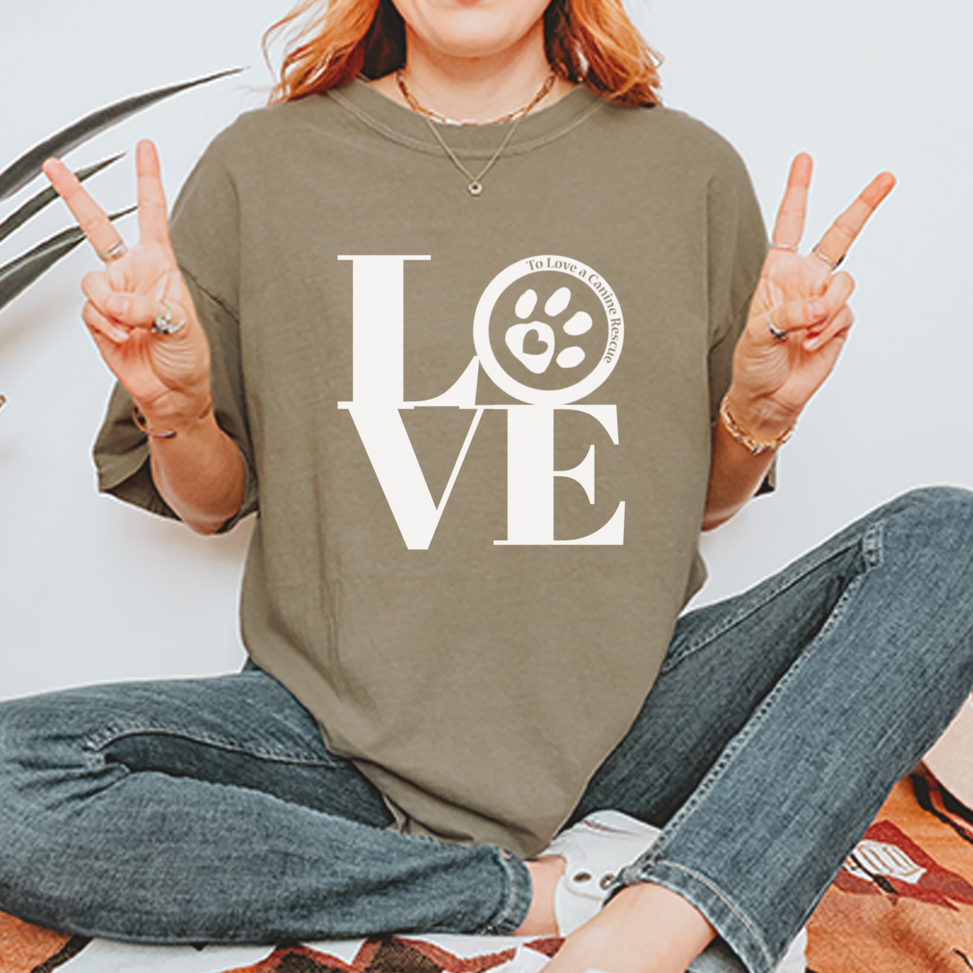 This is a front and back design, and all proceeds go to benefit TLC Dog Rescue, just outside the Philadelphia area. Learn how you can rescue a dog by visiting them at tlcrescuepa.com.