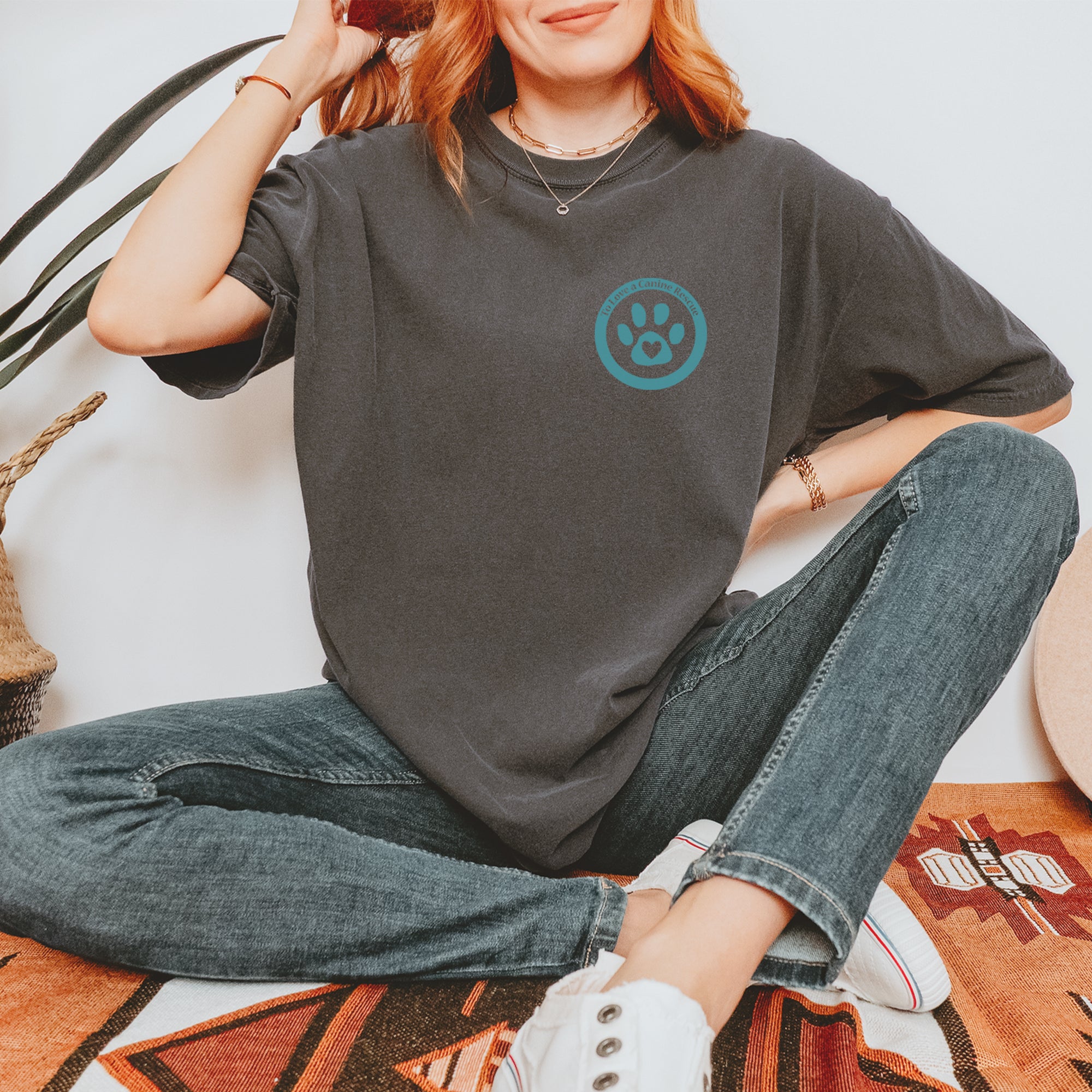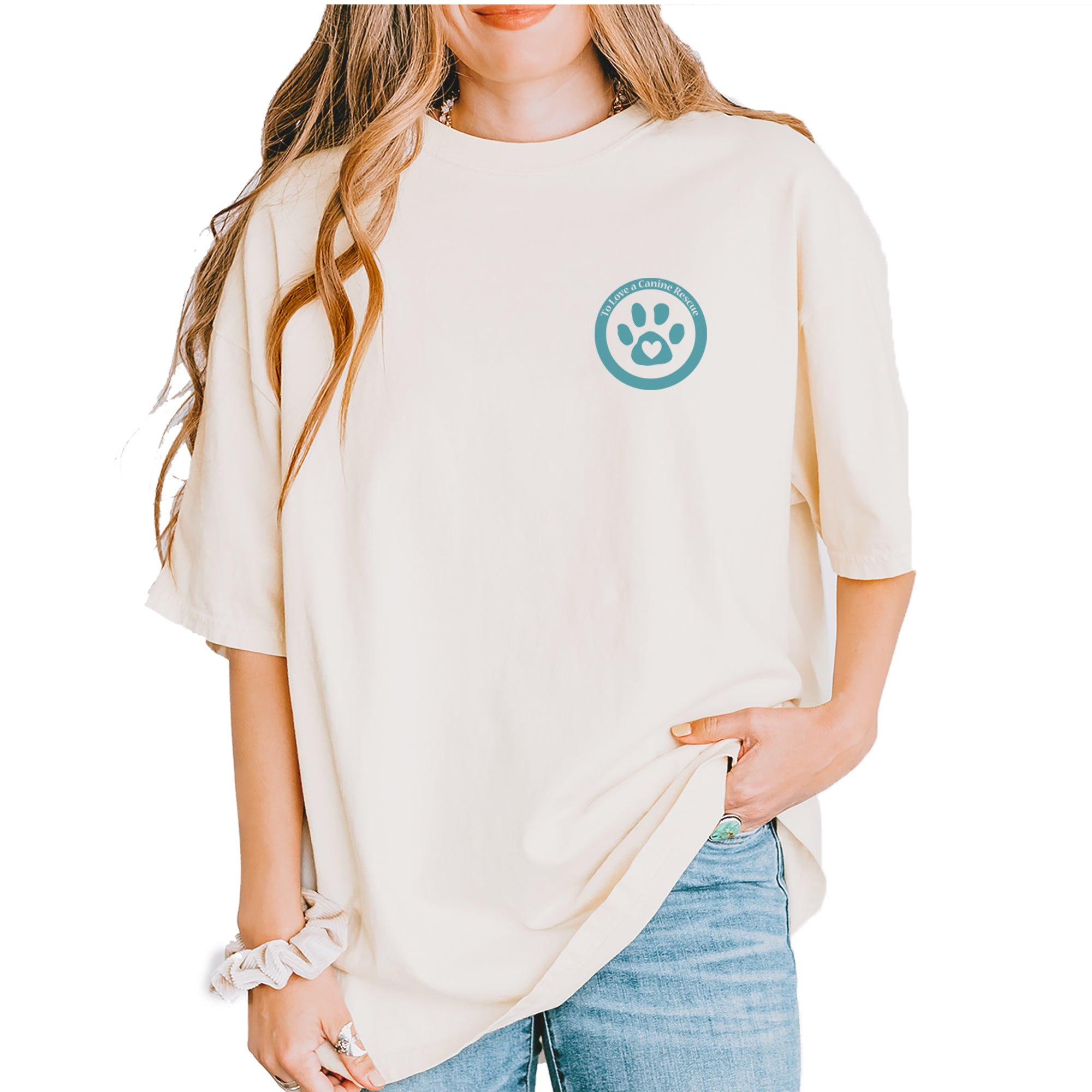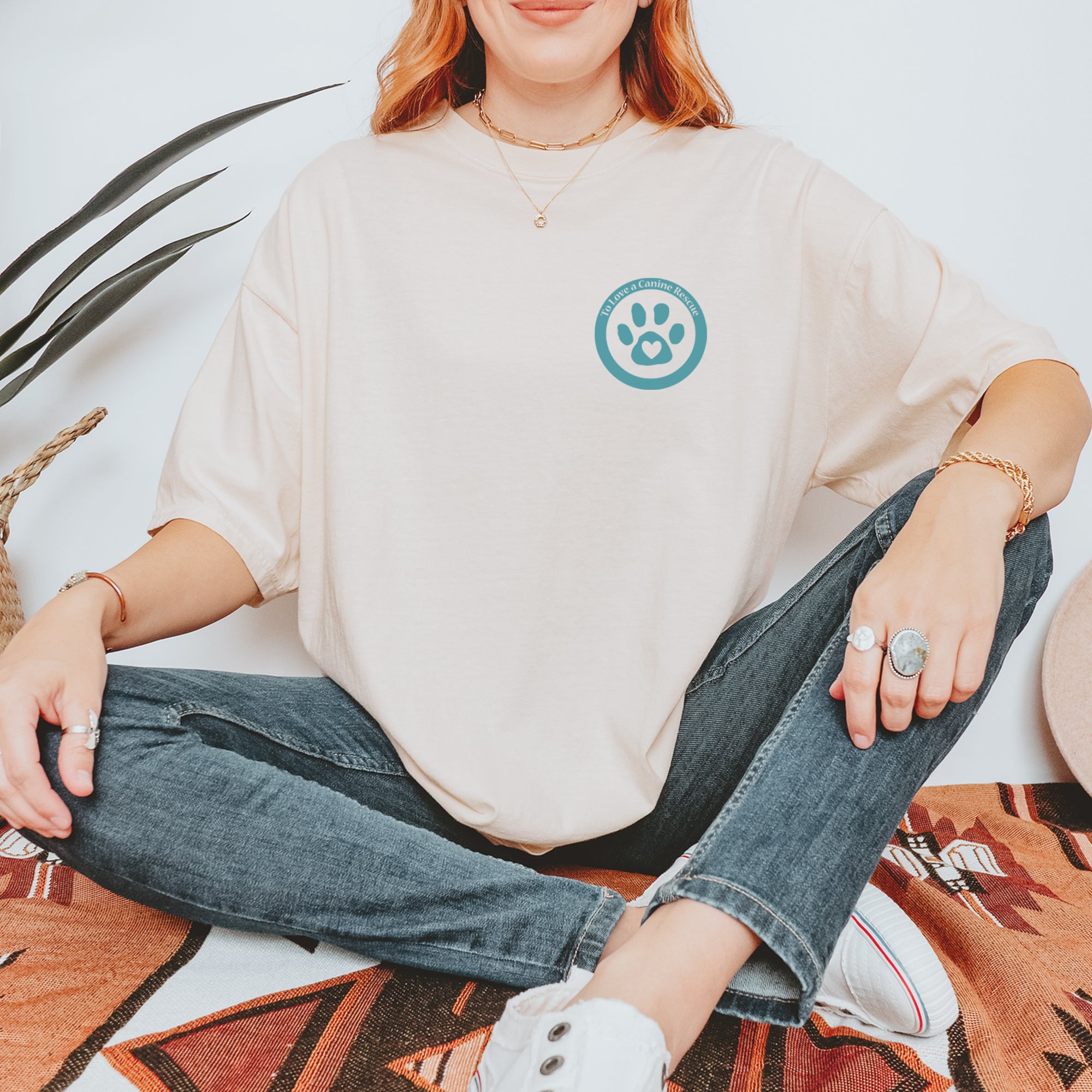 This is a front and back design, and all proceeds go to benefit TLC Dog Rescue, just outside the Philadelphia area. Learn how you can rescue a dog by visiting them at tlcrescuepa.com.
